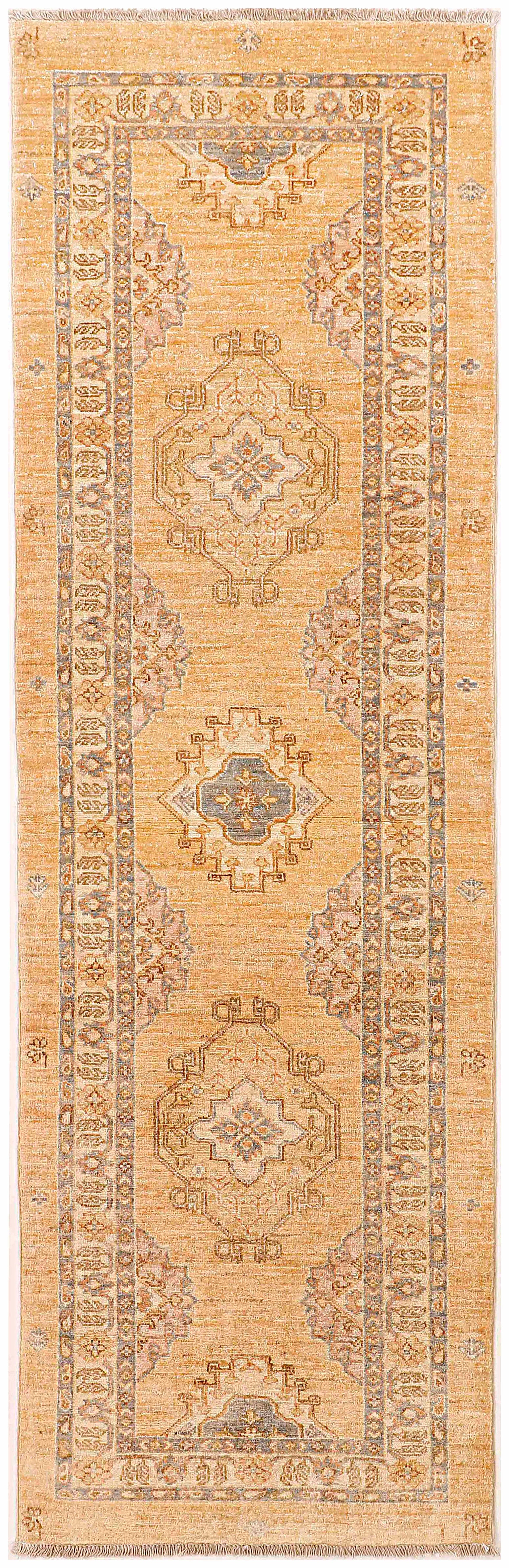 Chobi rugs first emerged in Northern Afghanistan during the 1990s as a more refined expression of the region’s long-established weaving traditions. This Afghan Chobi rug takes its name from the Farsi word chob, meaning wood, which reflects the soft, timber-toned colour palette these rugs are known for. Each piece is woven entirely by hand, with skill passed down through generations of Afghan artisans.