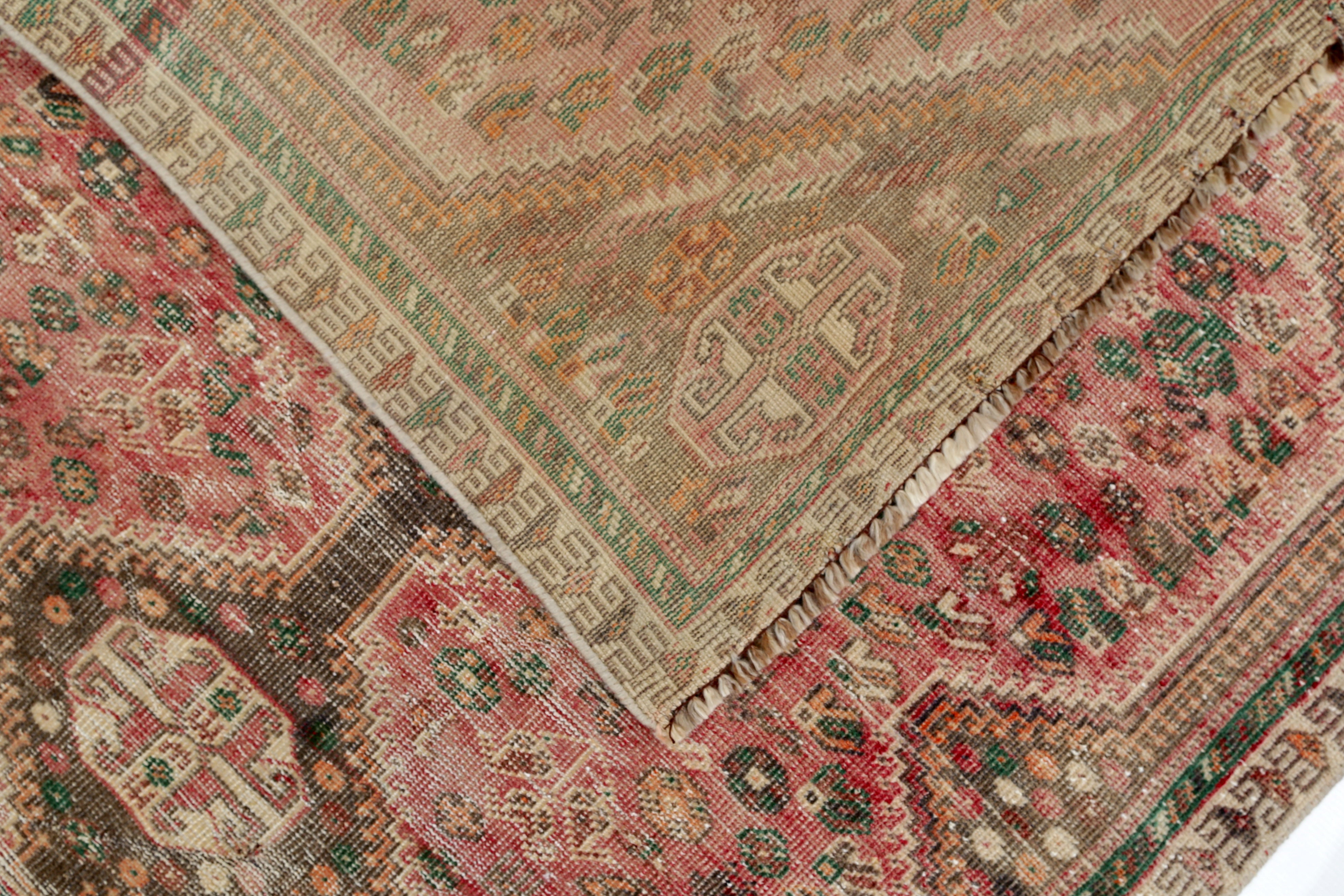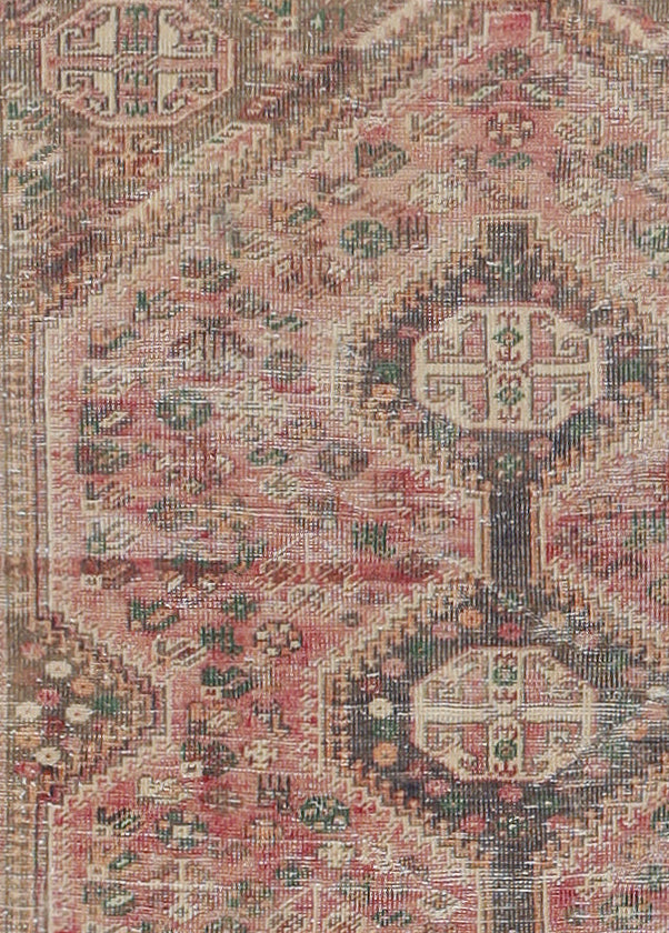 Qashqai weavers work entirely from memory, passing down patterns through generations but interpreting them personally. Each rug becomes a unique expression of its weaver. Designs typically feature a central medallion, often a bold diamond, surrounded by fields densely packed with tribal motifs: birds, animals, flowers, geometric symbols. You'll see traditional Persian patterns like the Herati fish motif or paisley boteh adapted through a tribal lens, sometimes even Turkmen gul medallions reflecting the weavers' Turkic heritage.