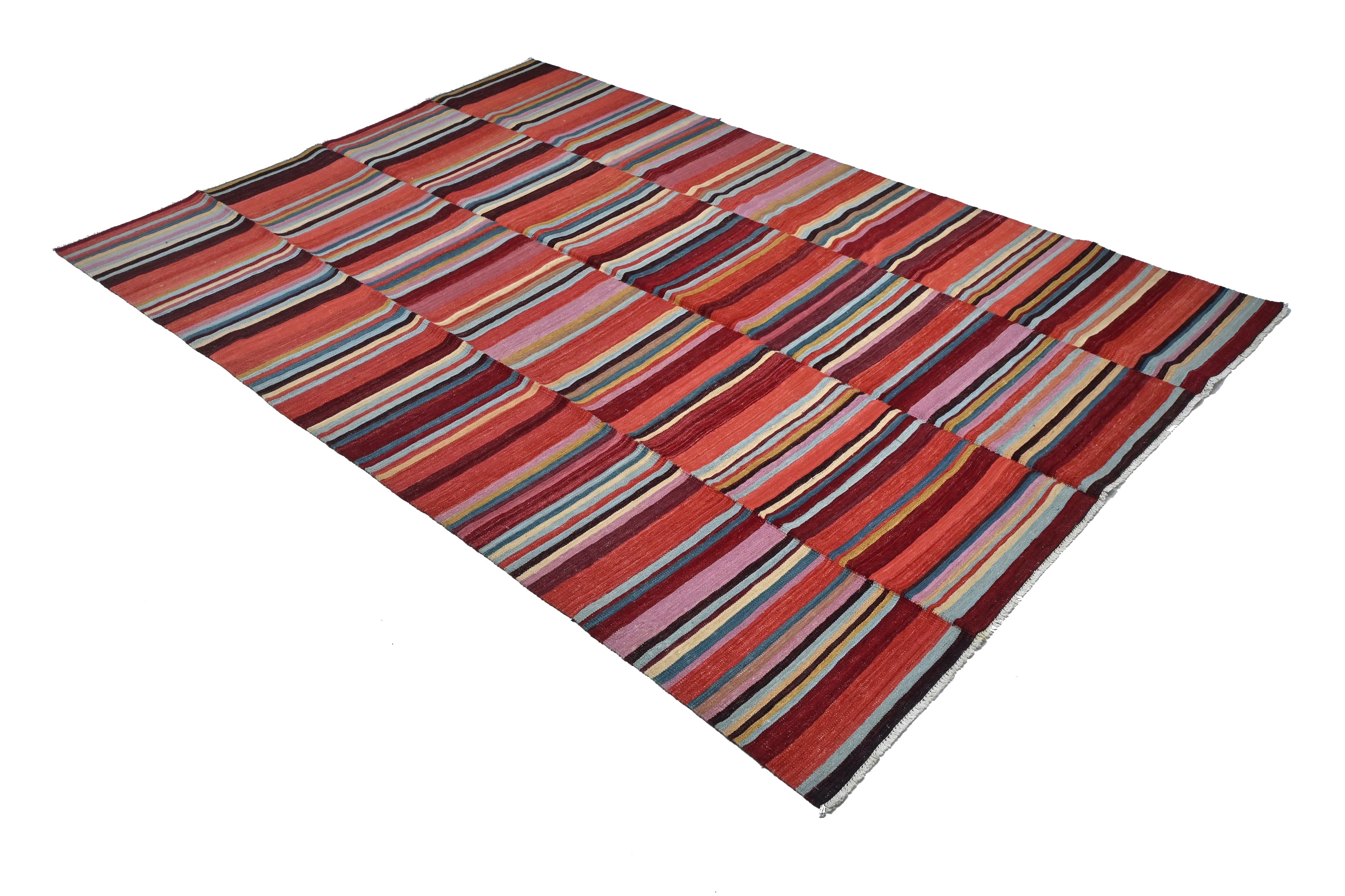 This handmade wool kilim comes from Maimana, a provincial capital in northern Afghanistan known for producing some of the country's most distinctive flatweave rugs. The weaving tradition in this region dates back centuries, with each kilim woven on horizontal ground looms using local wool and age-old techniques passed down through generations.