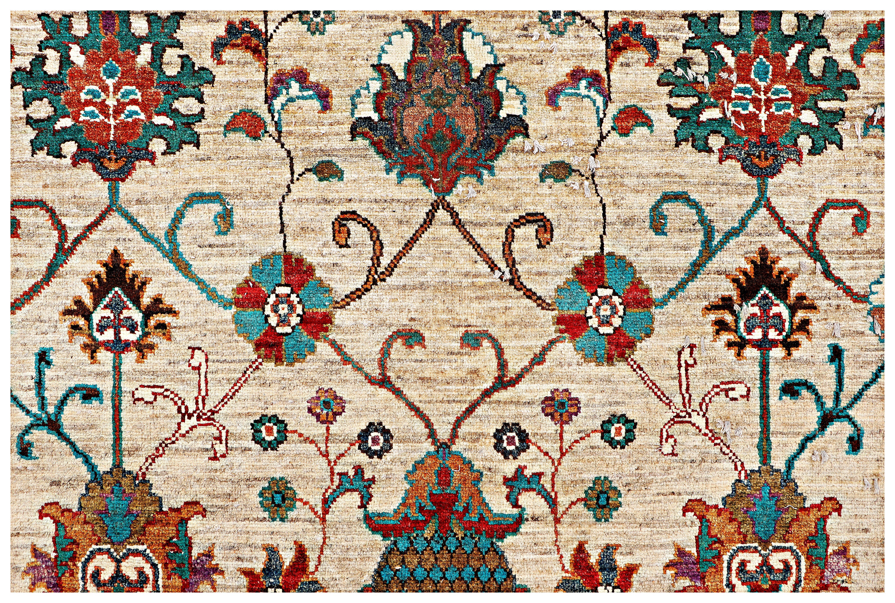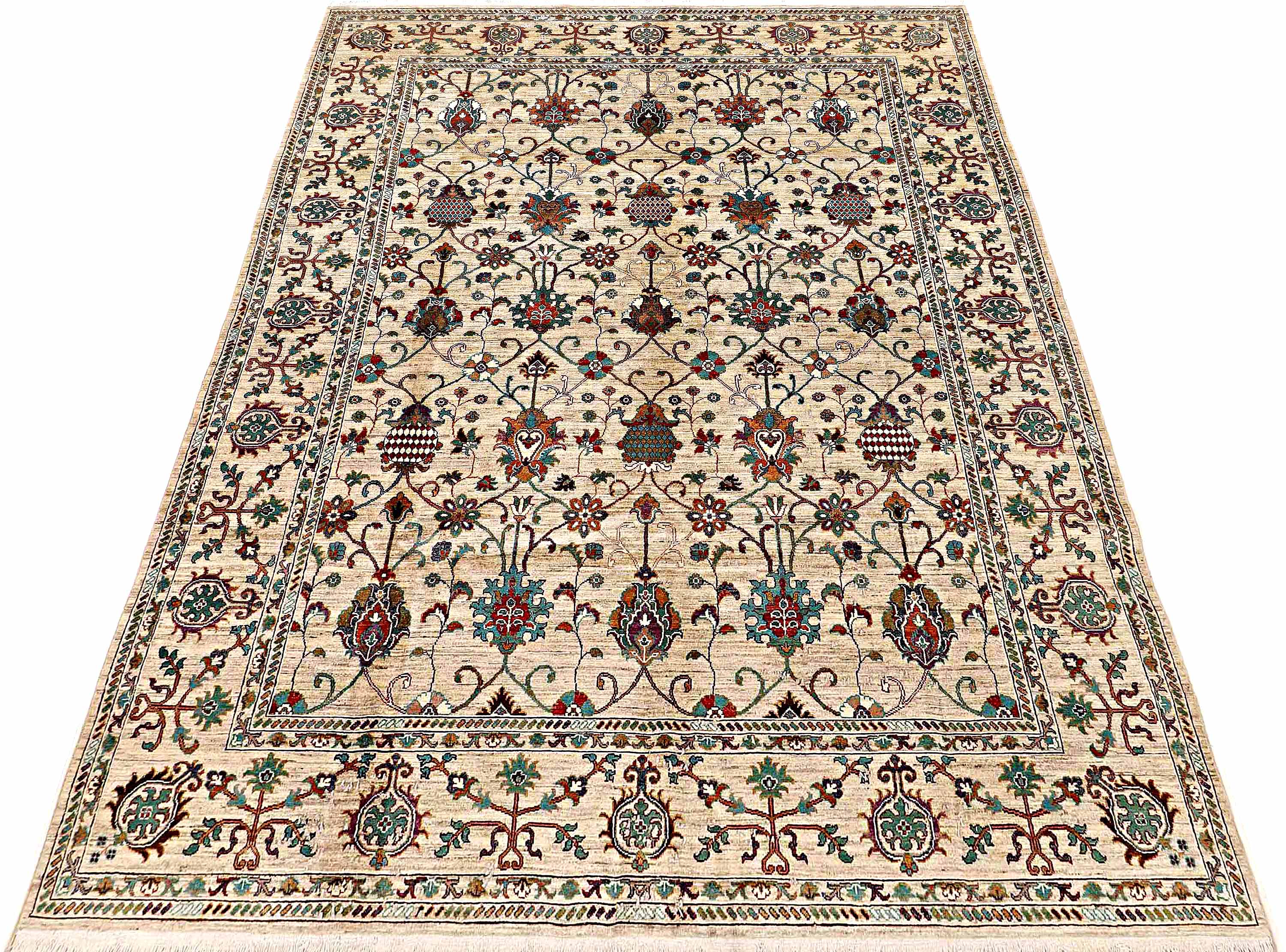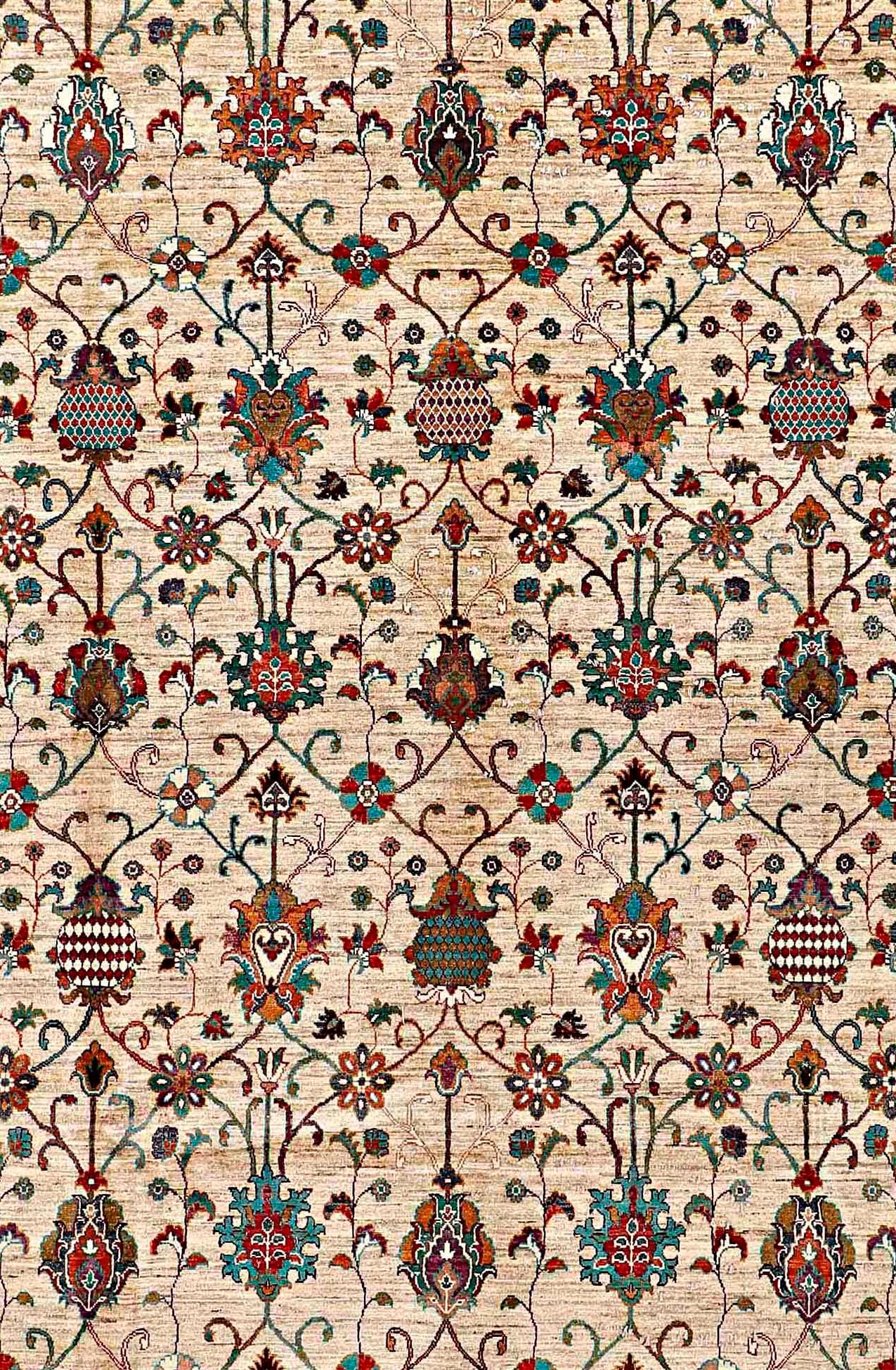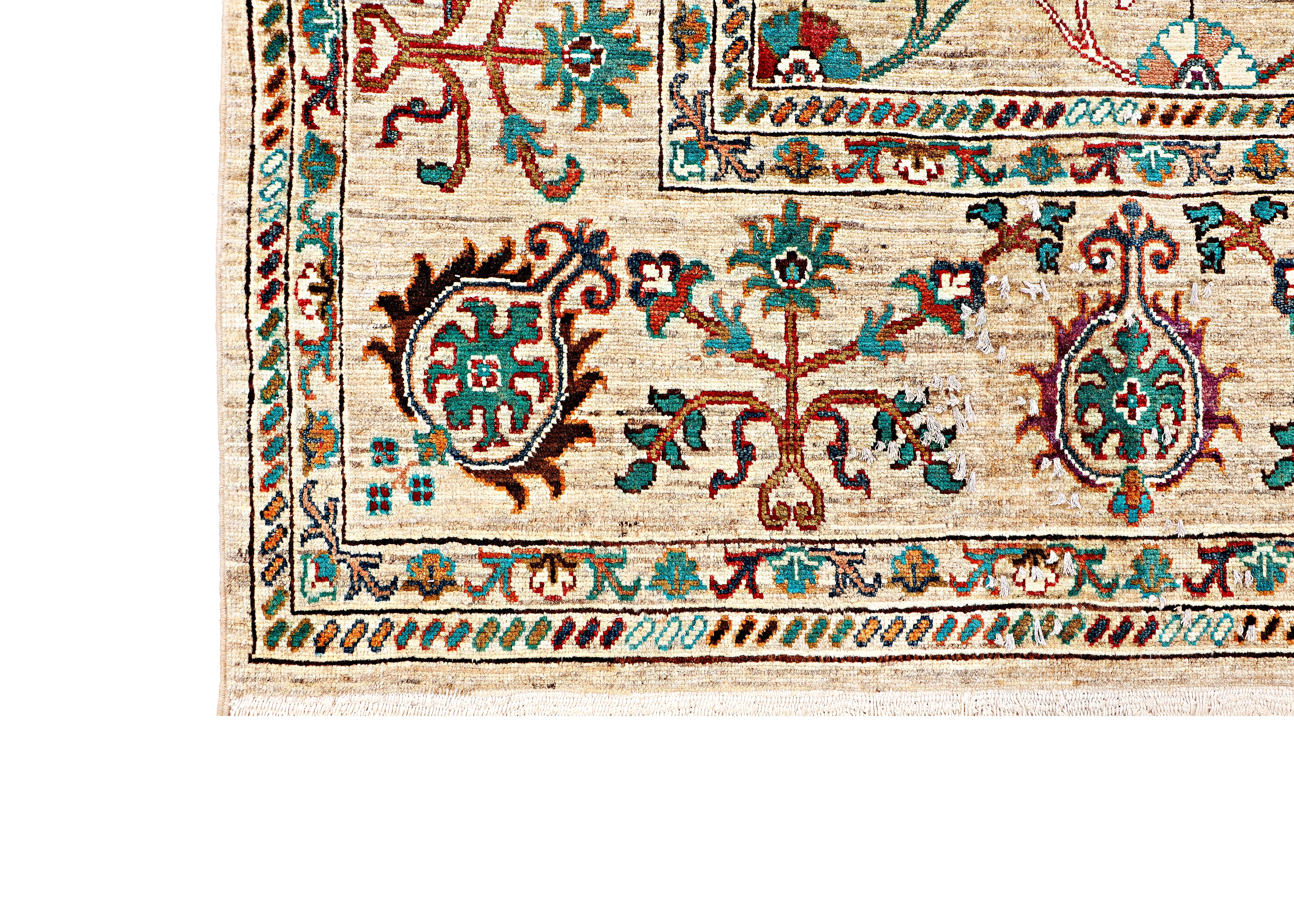 Chobi rugs first emerged in Northern Afghanistan during the 1990s as a more refined expression of the region’s long-established weaving traditions. This Afghan Chobi rug takes its name from the Farsi word chob, meaning wood, which reflects the soft, timber-toned colour palette these rugs are known for. Each piece is woven entirely by hand, with skill passed down through generations of Afghan artisans.