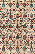 This rug has been woven with a tightly packed knot structure, giving it a fine, durable finish and allowing for greater detail in the design. The wool is hand-spun using traditional methods and selected for its quality, softness, and natural strength. It holds onto its lanolin, which gives the rug a silky sheen and that smooth, velvety feel underfoot.