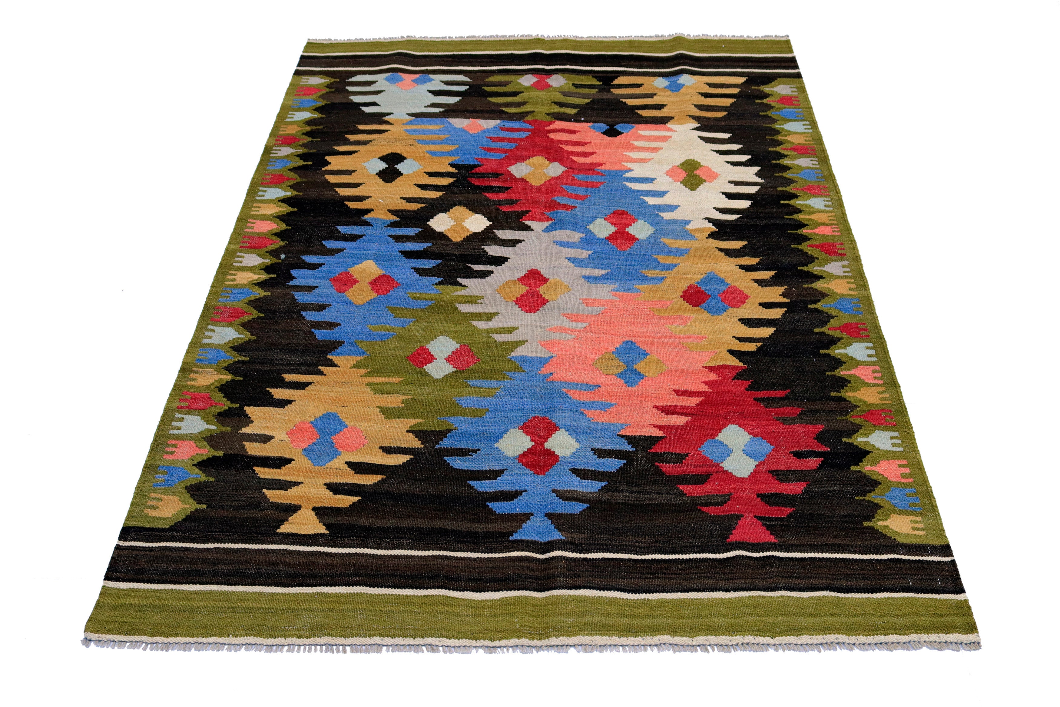 This handmade wool kilim comes from Maimana, a provincial capital in northern Afghanistan known for producing some of the country's most distinctive flatweave rugs. The weaving tradition in this region dates back centuries, with each kilim woven on horizontal ground looms using local wool and age-old techniques passed down through generations.