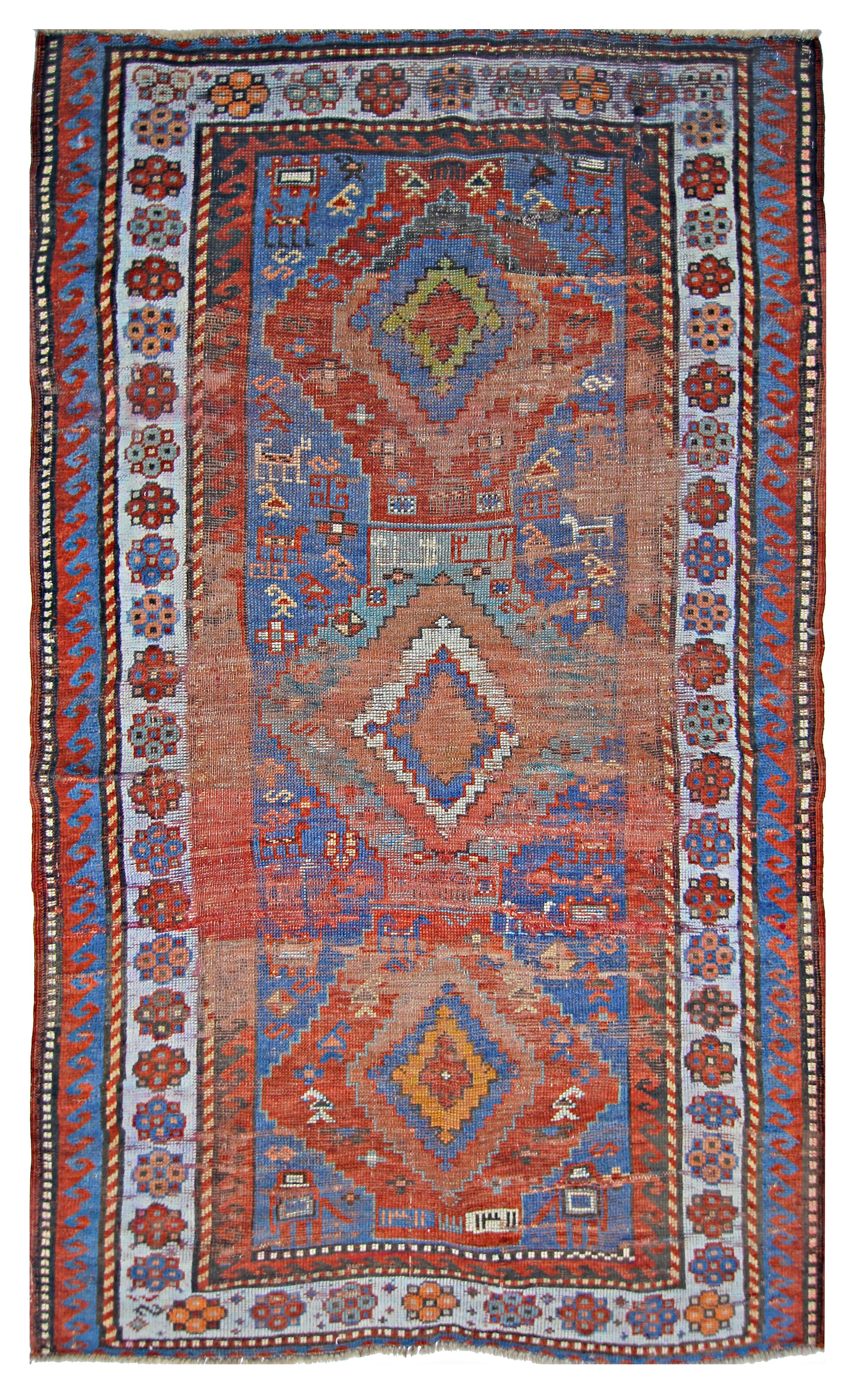 The most incredibly unique Vintage Caucasian Rug with this special colourway that is hard to come by.