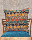 Afghan Maimana kilim cushions feature traditional flat-weave construction with bold geometric patterns in bright and earthy tones.