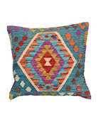 Afghan Maimana kilim cushions feature traditional flat-weave construction with bold geometric patterns in bright and earthy tones.