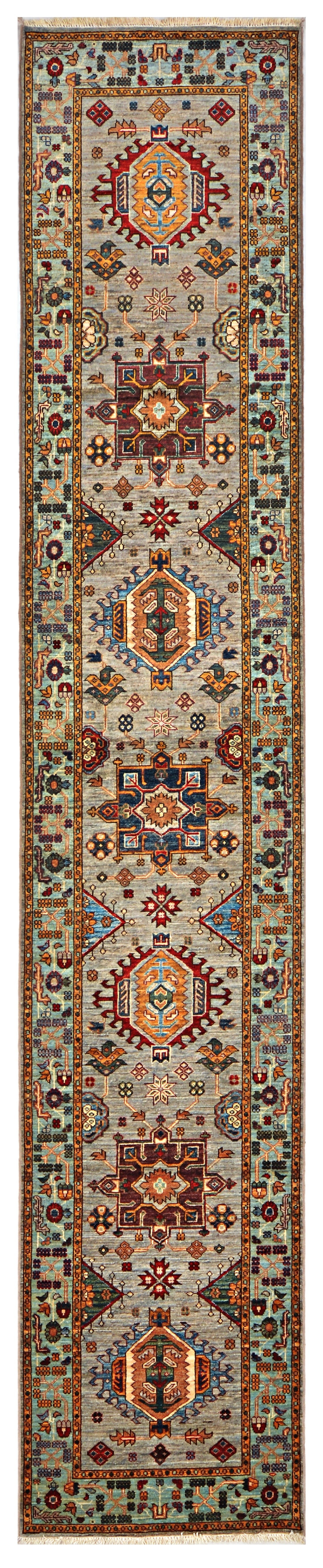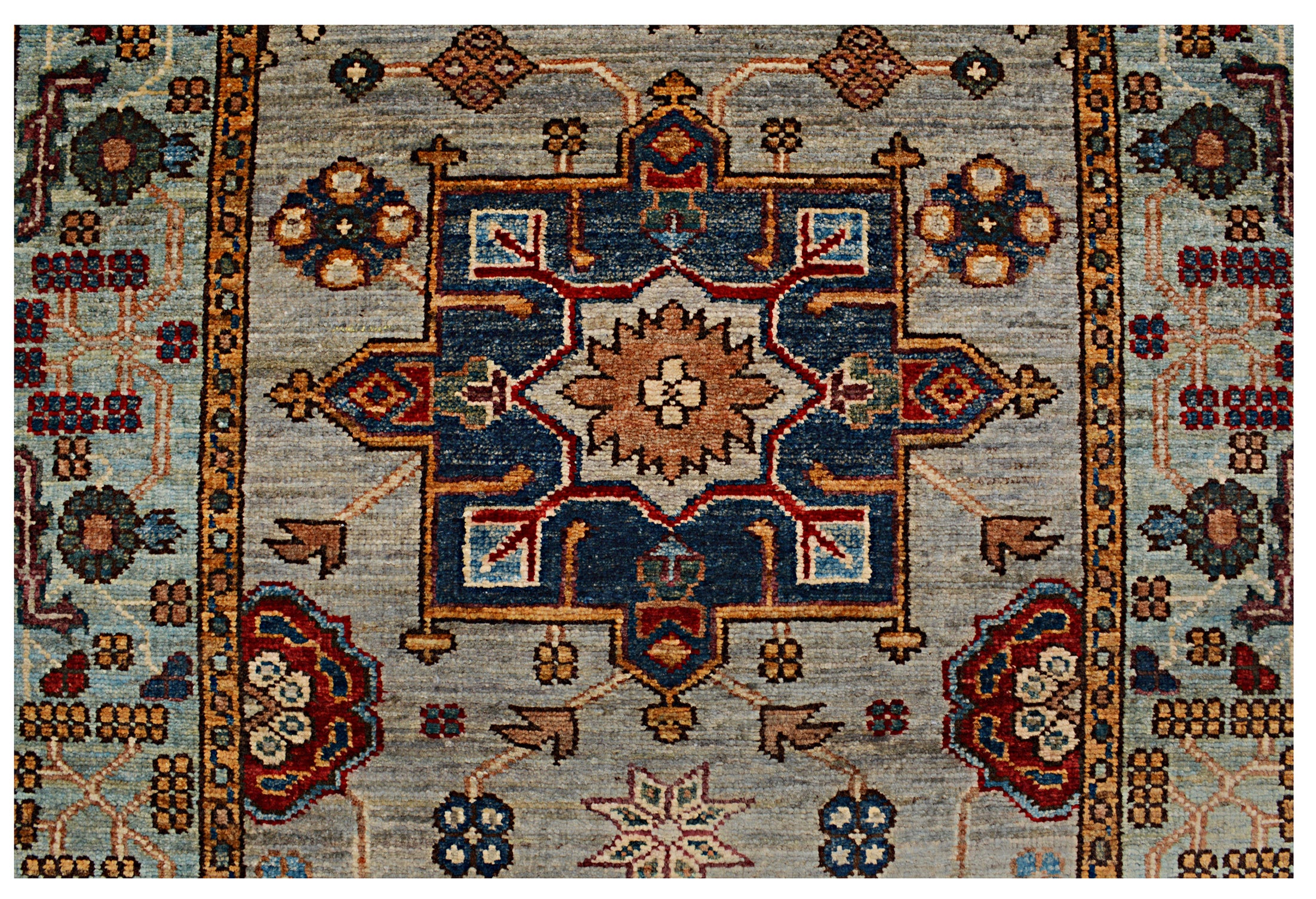 A Super Kazakh rug is a masterpiece of craftsmanship, woven by talented Hazara weavers who carry forward a rich tradition of artistry and skill. Known for their bold geometric patterns and striking colour combinations, these rugs draw inspiration from traditional Caucasian designs, featuring intricate motifs such as medallions, rosettes, and tribal symbols that reflect centuries of cultural heritage. Handwoven from high-quality wool with a dense weave, Super Kazakh rugs are not only visually stunning but also exceptionally durable, perfect for high-traffic areas or as statement pieces in your home.