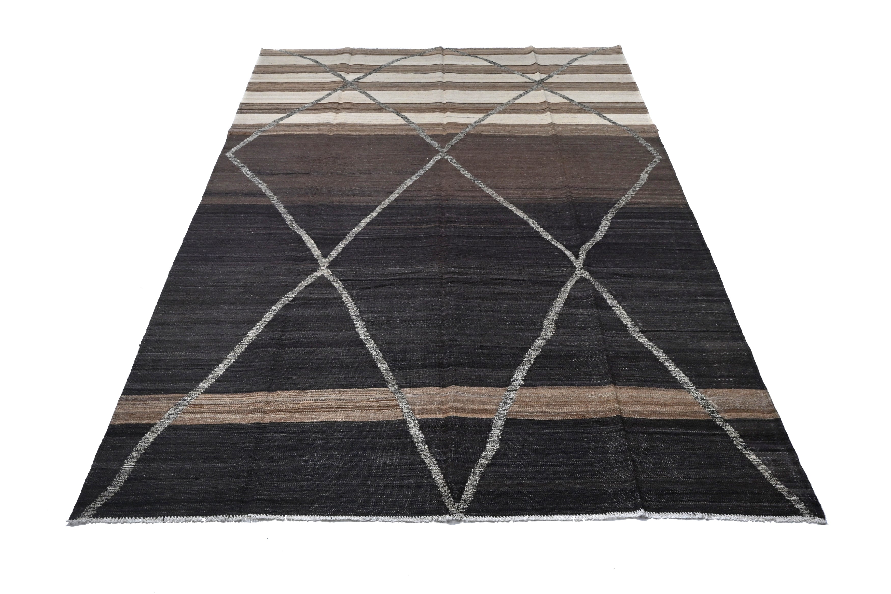 This handmade wool kilim comes from Maimana, a provincial capital in northern Afghanistan known for producing some of the country's most distinctive flatweave rugs. The weaving tradition in this region dates back centuries, with each kilim woven on horizontal ground looms using local wool and age-old techniques passed down through generations.