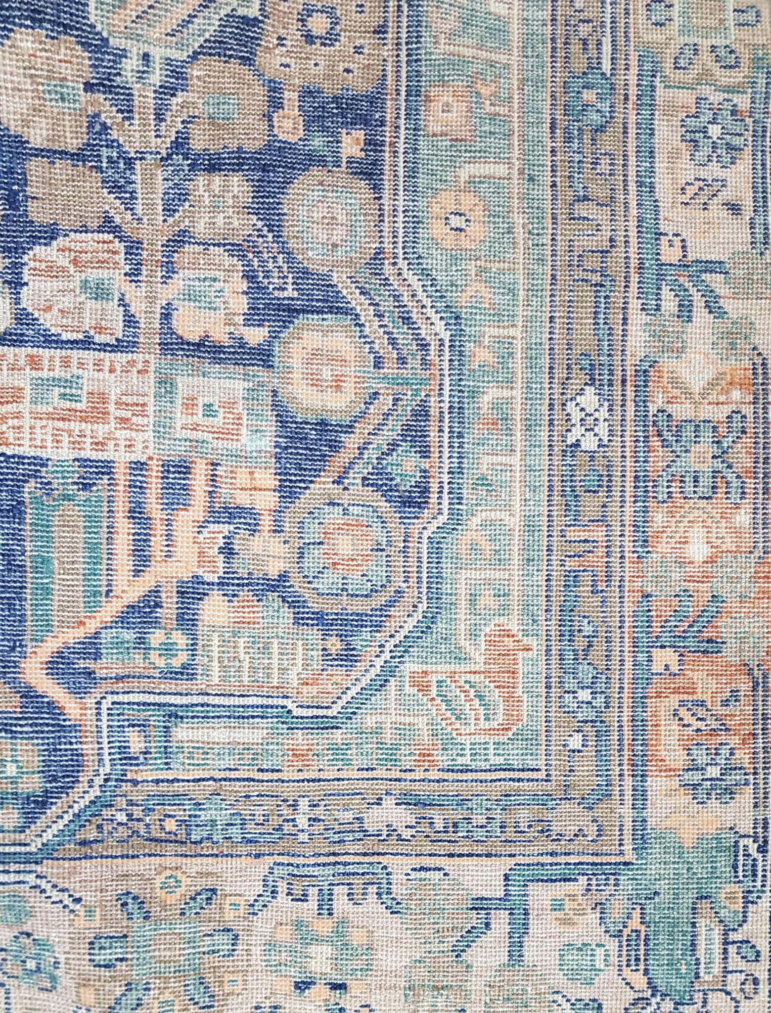 This rug has a low, almost flat pile. This intentional look makes the rug almost vintage or antique.