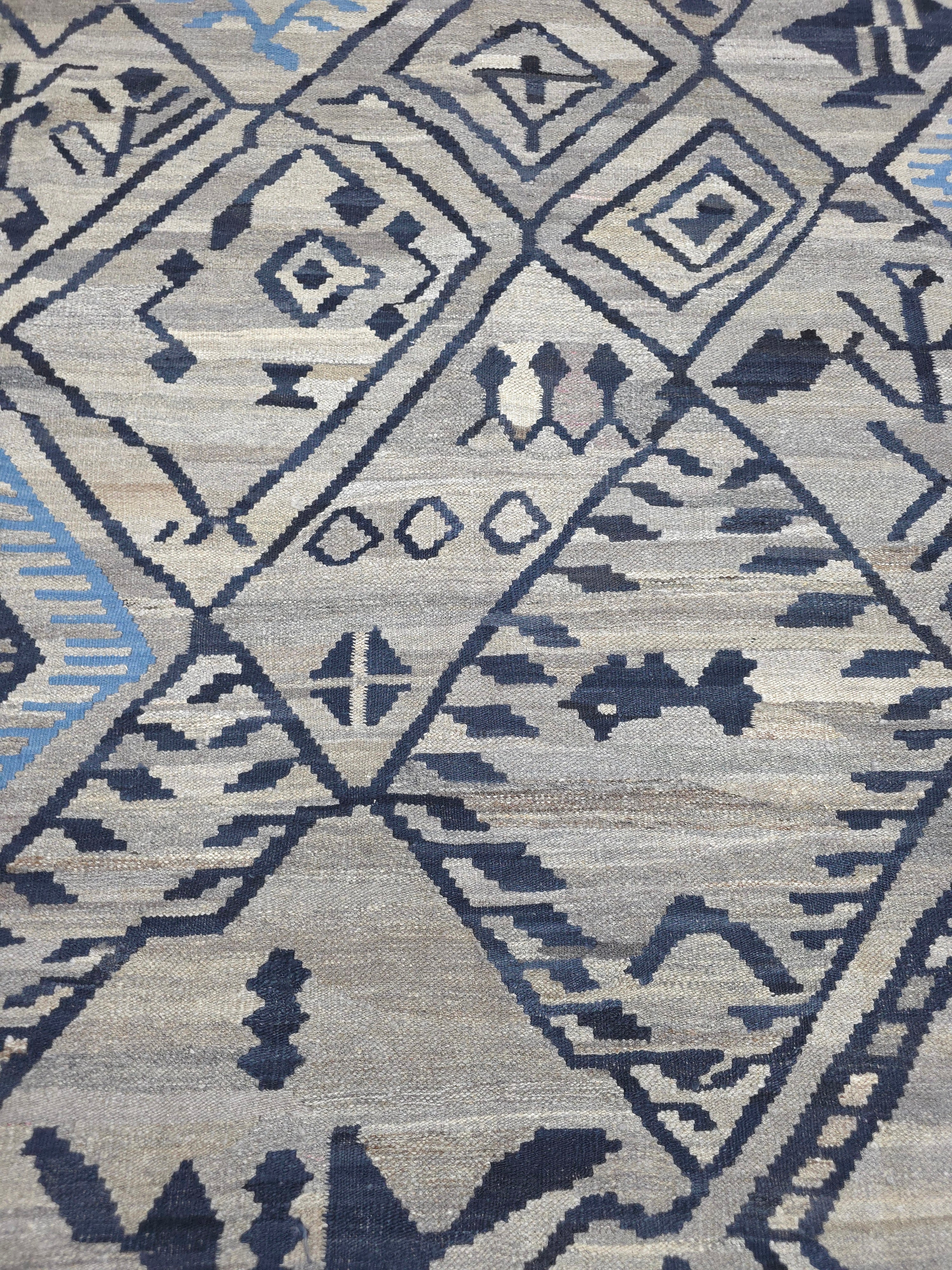 Maimana kilims are celebrated for their tightly woven construction, geometric tribal designs, and bold, earthy colour palettes. Their patterns are often rooted in the nomadic traditions of the region, reflecting a mix of Turkmen, Uzbek, and Pashtun influences.