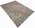 This handmade wool kilim comes from Maimana, a provincial capital in northern Afghanistan known for producing some of the country's most distinctive flatweave rugs. The weaving tradition in this region dates back centuries, with each kilim woven on horizontal ground looms using local wool and age-old techniques passed down through generations.