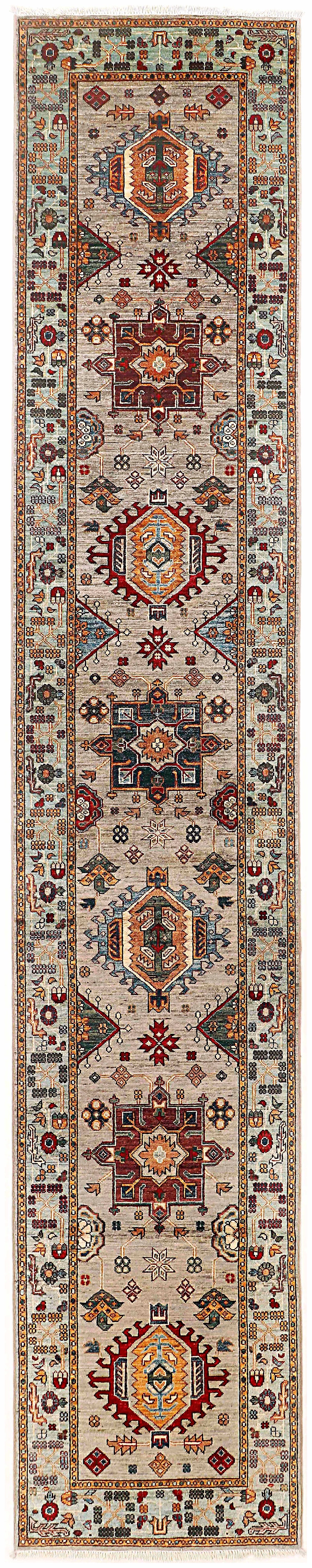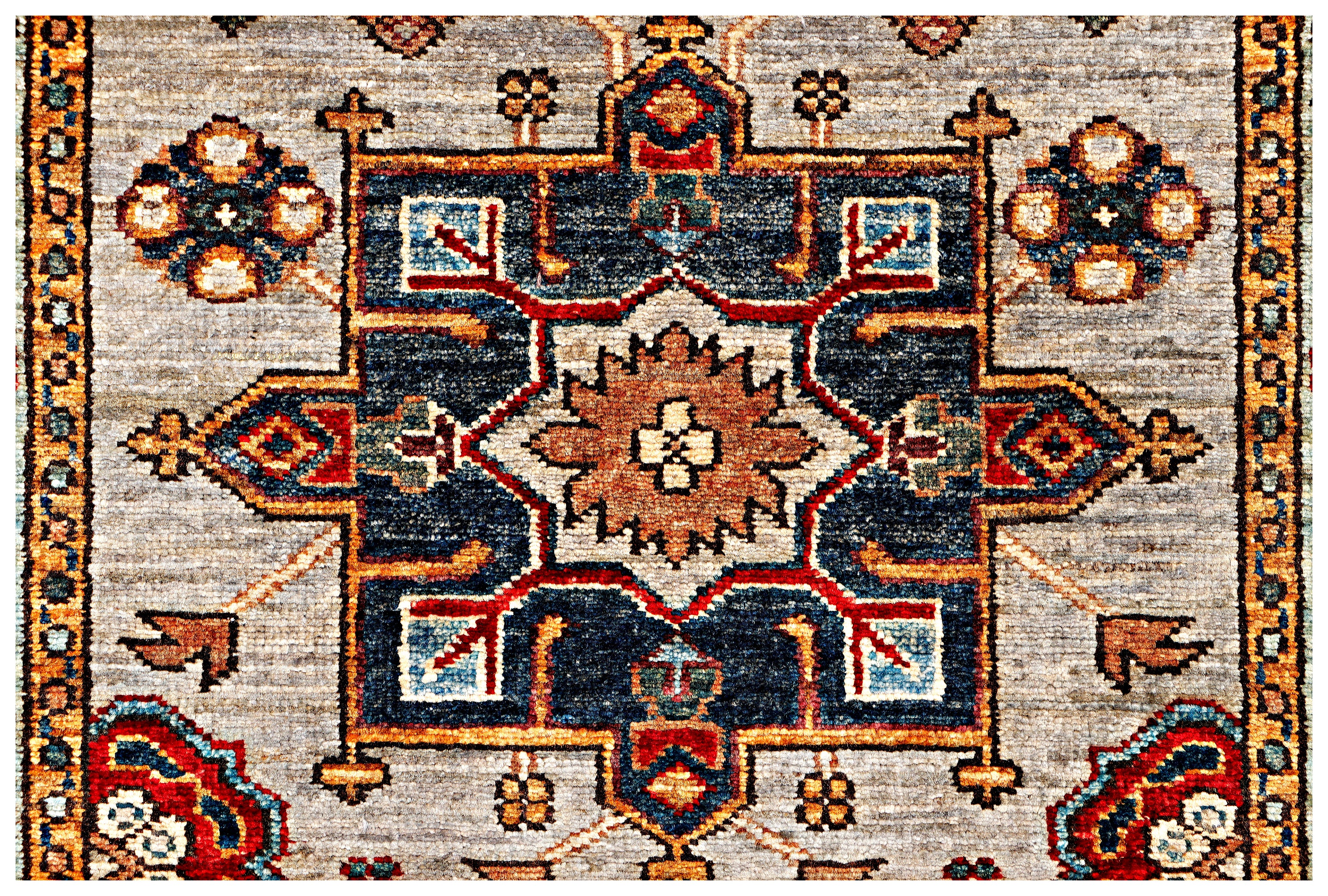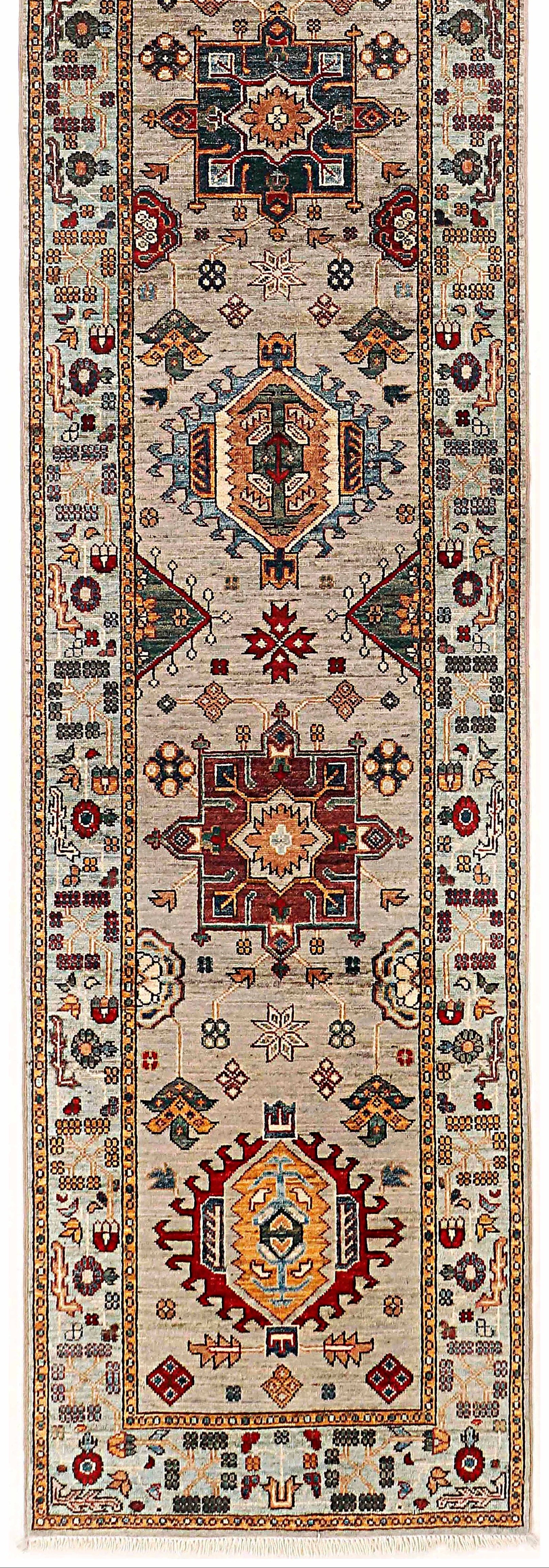 Super Kazakh rugs are hand-knotted in Afghanistan by weavers who've inherited techniques that trace back centuries to the Caucasus mountains. The "super" refers to the higher knot density that allows for sharper, more intricate designs than standard Kazakh rugs.