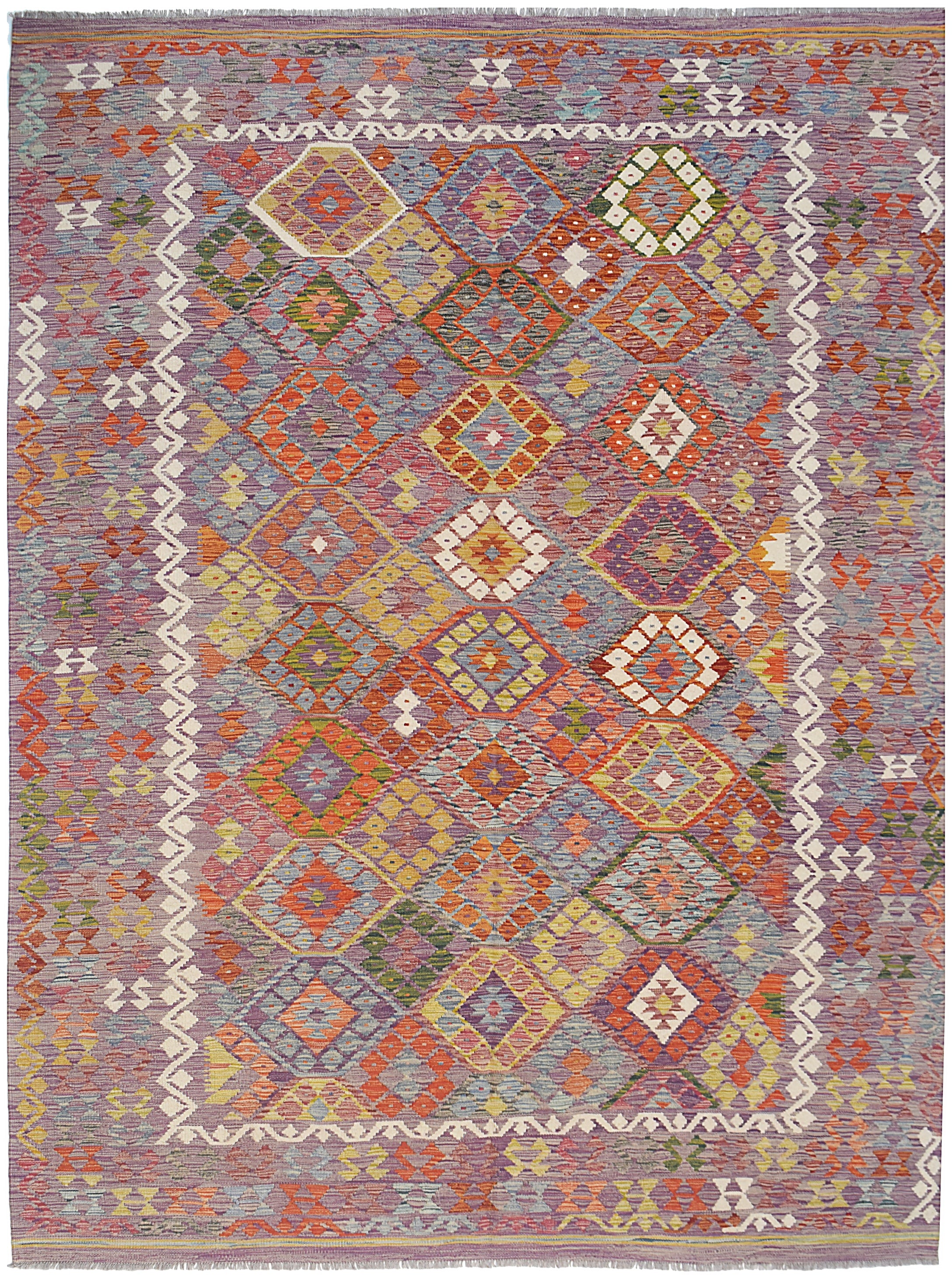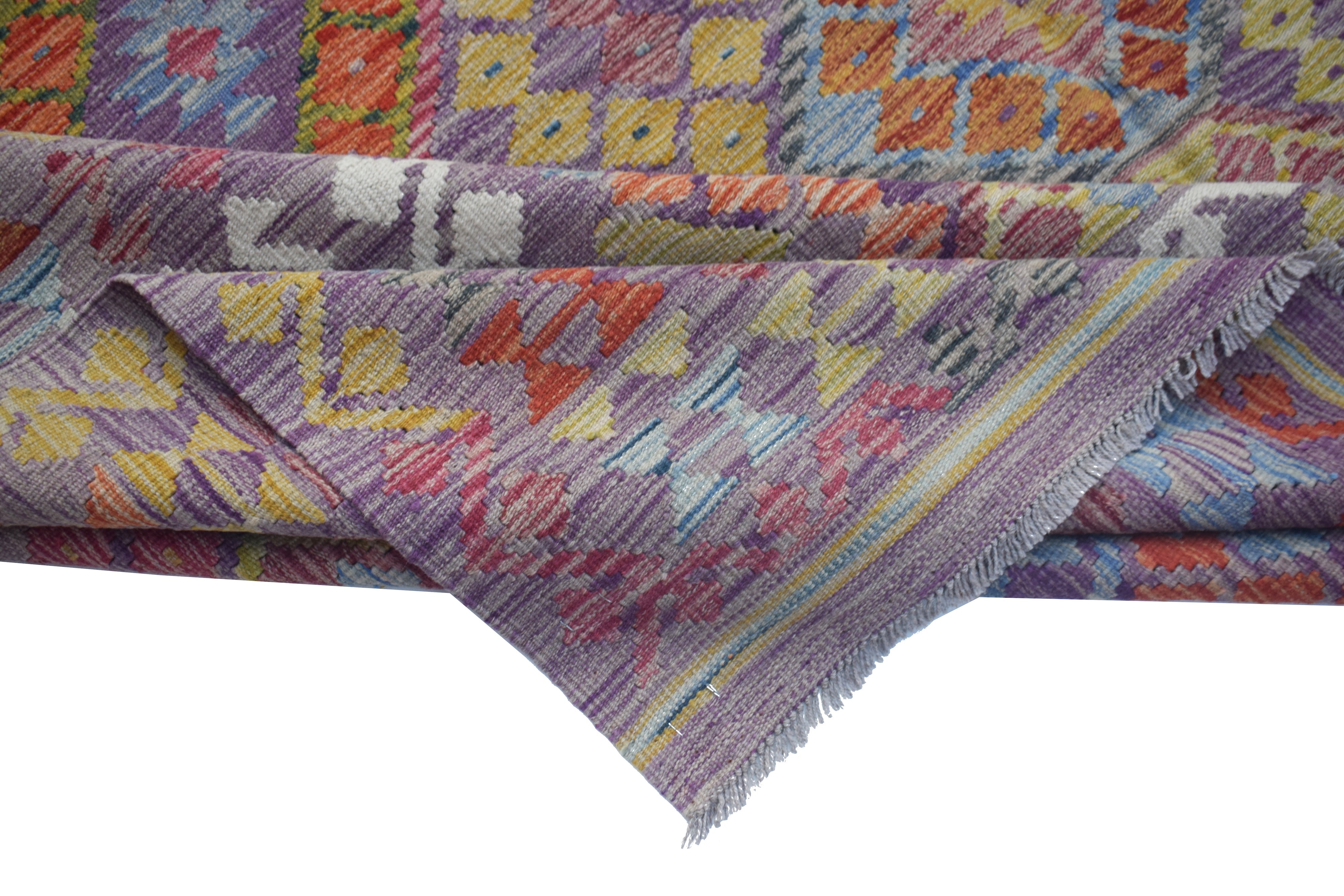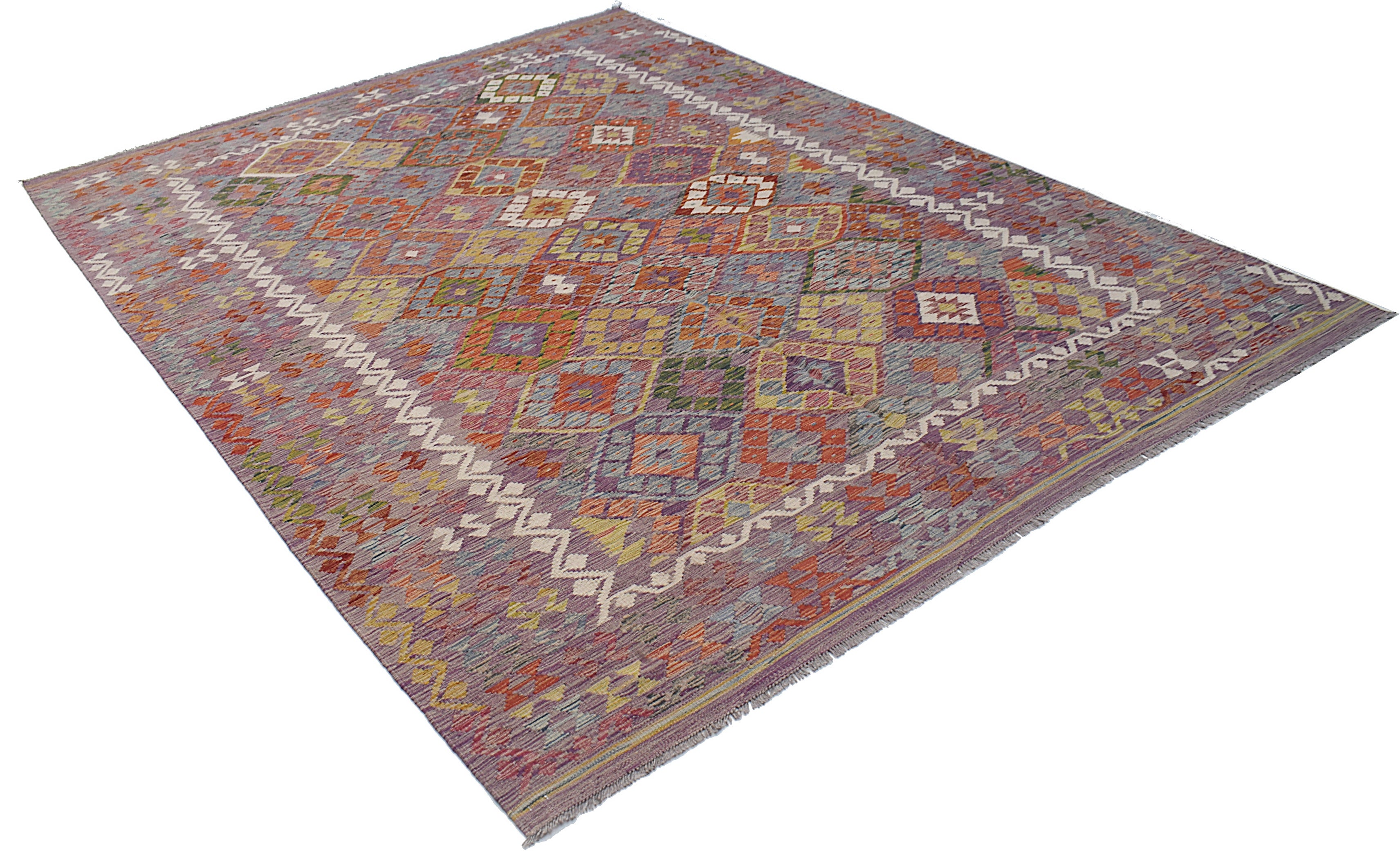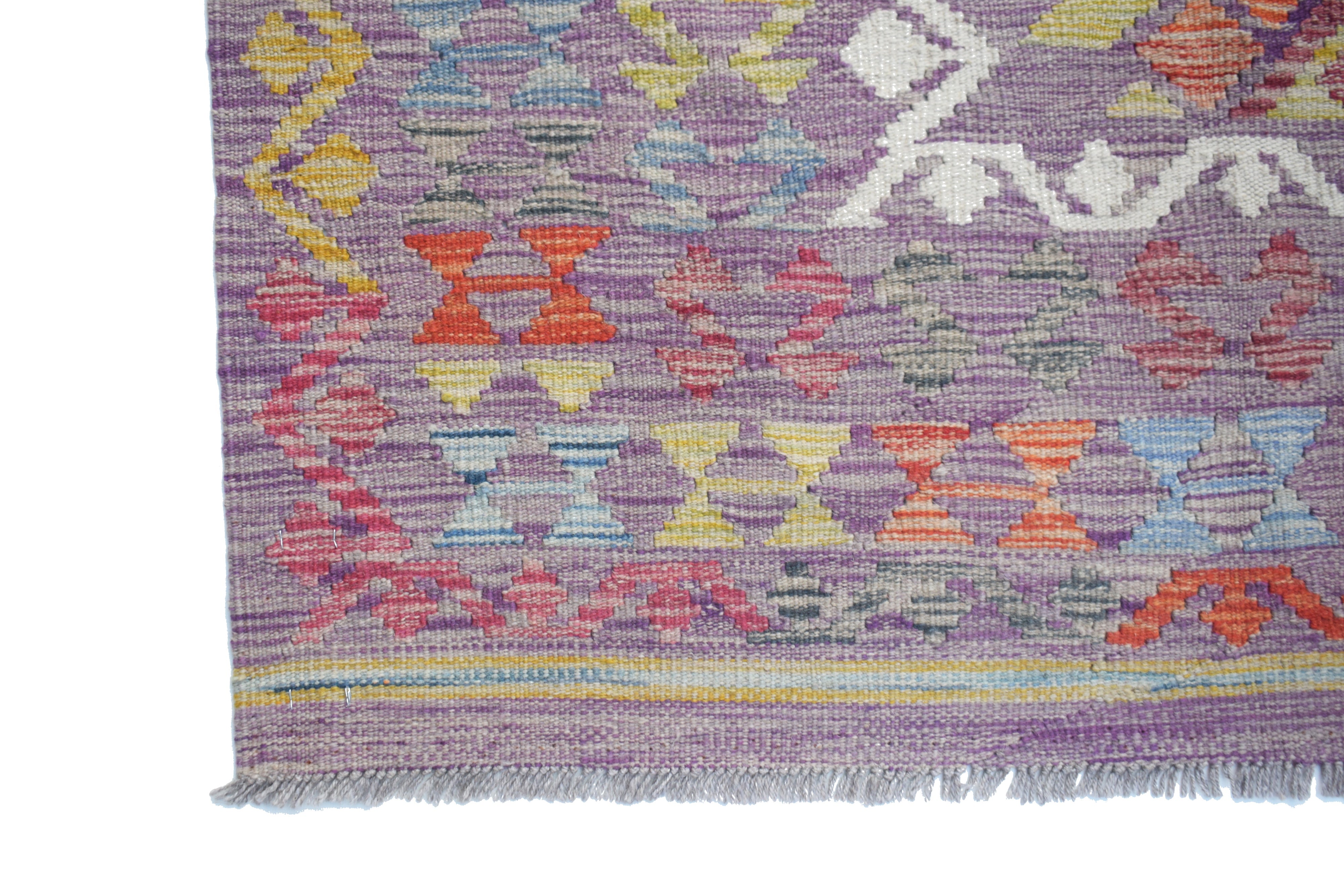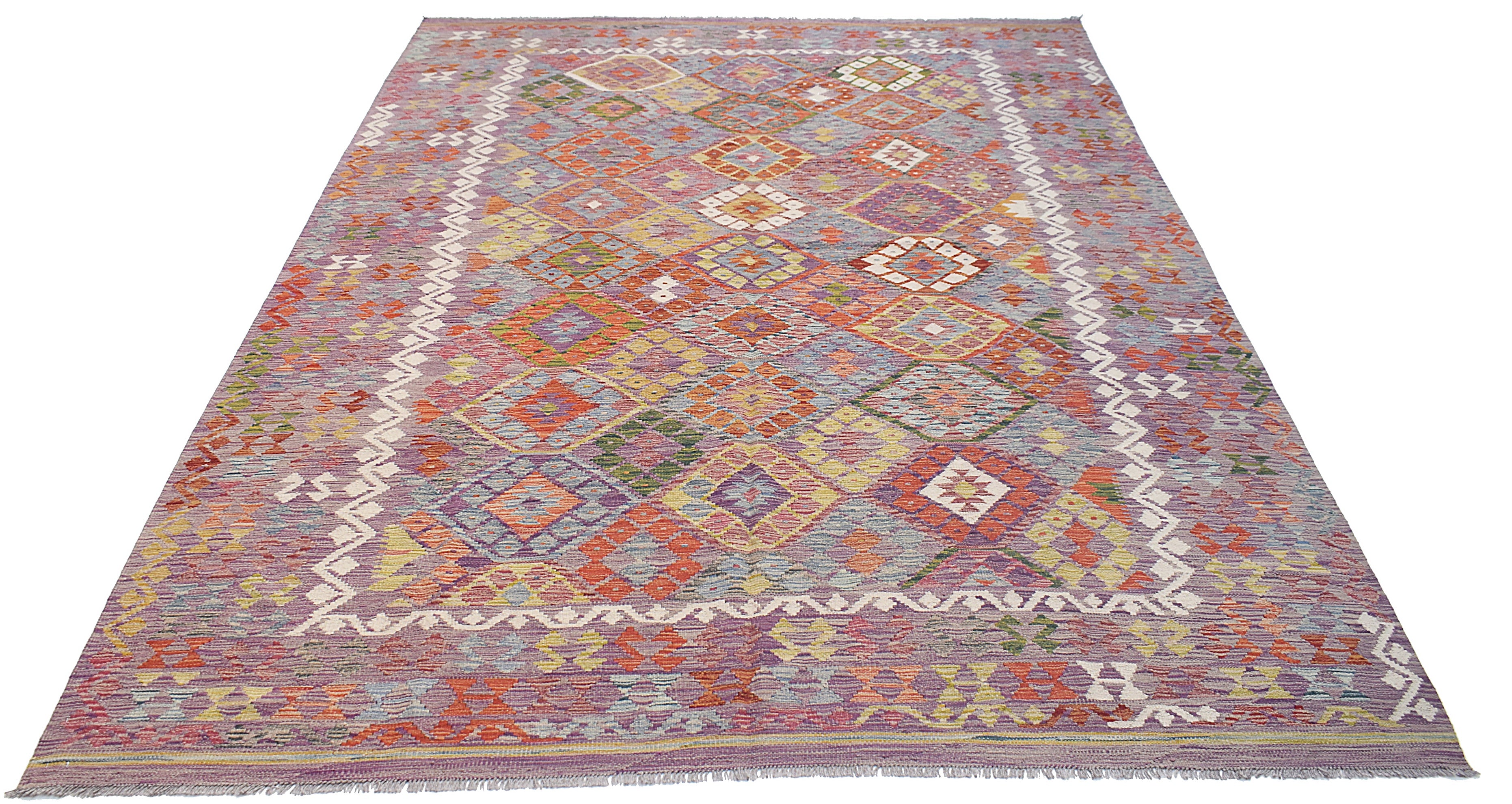 Maimana kilims are a proud product of the Frayab province in northern Afghanistan, with their name derived from the historic city of Maimana, a key trading hub along the ancient Silk Road. These kilims reflect centuries-old weaving traditions passed down through generations of tribal artisans. Their distinctive geometric patterns and bold designs are influenced by the nomadic lifestyle of the region, where practicality meets artistry in textile creation. The Maimana region is known for its semi-arid landscapes, where the weavers source high-quality wool from local sheep, spin it by hand, and dye it using natural substances, often inspired by the earthy hues of their surroundings. These kilims are flatwoven without a pile, a technique that makes them lightweight, reversible, and perfect for diverse applications, from floor coverings to wall hangings.