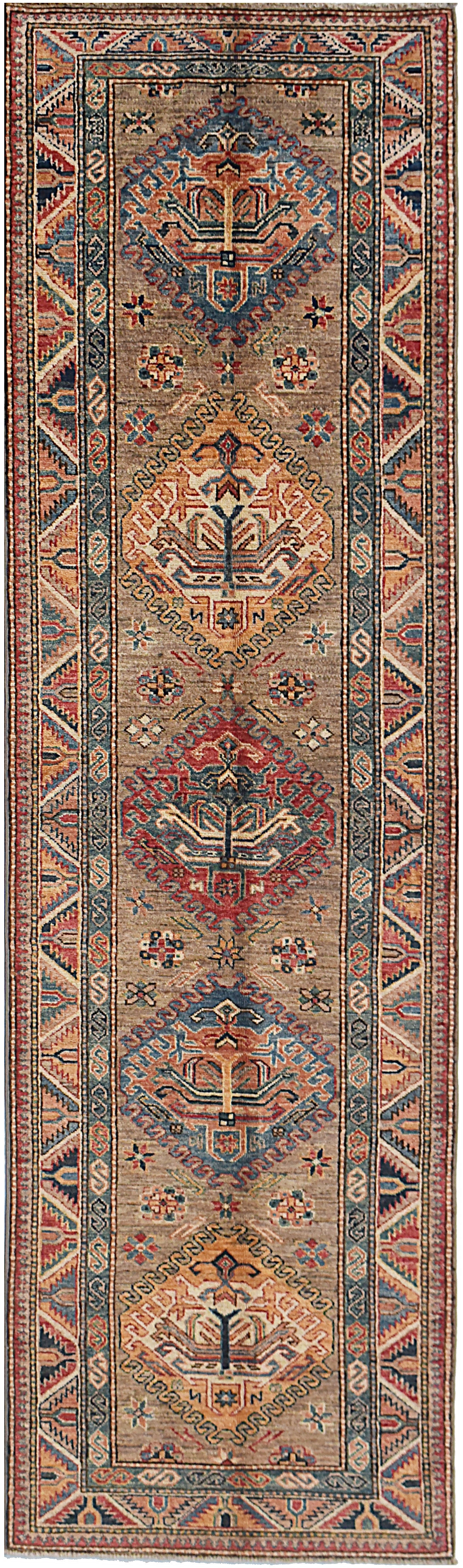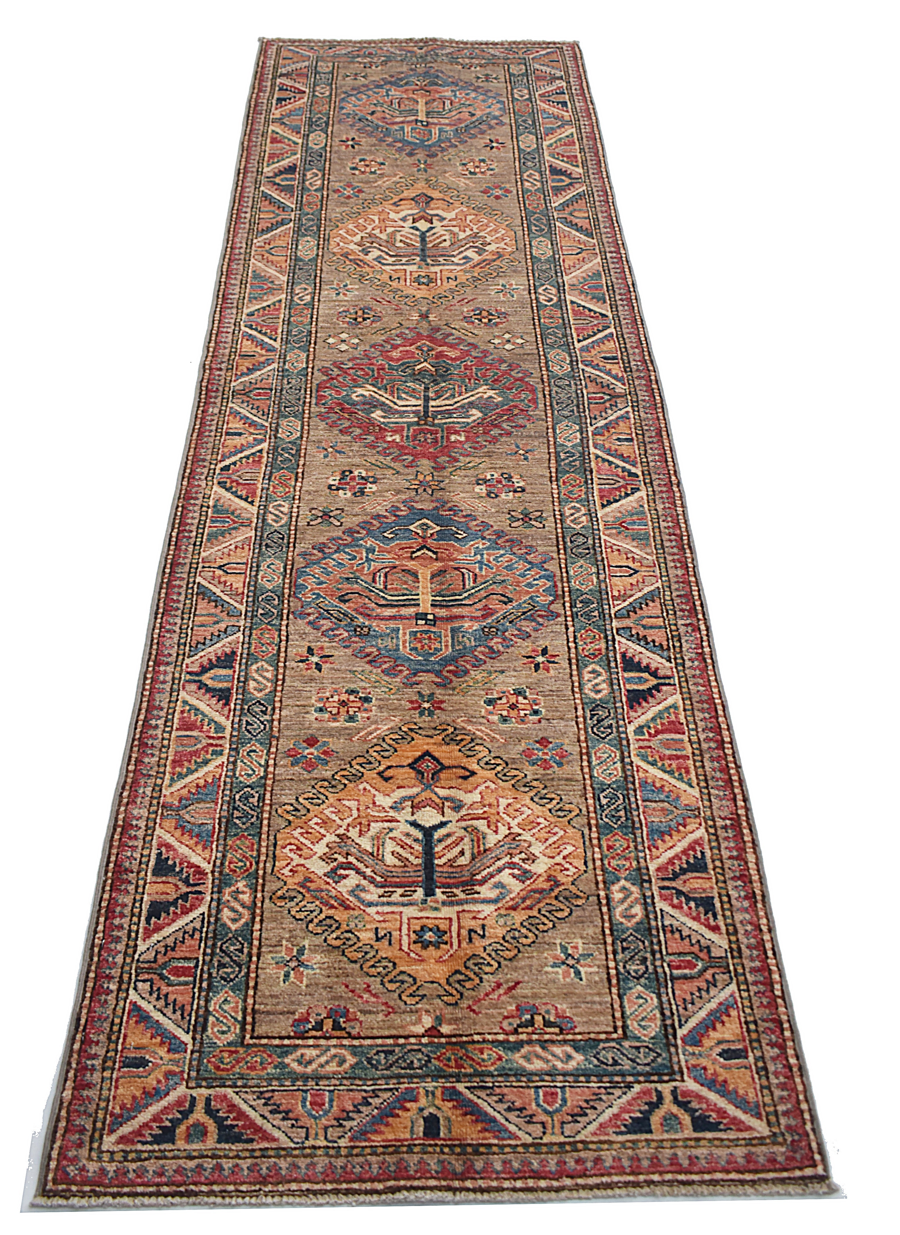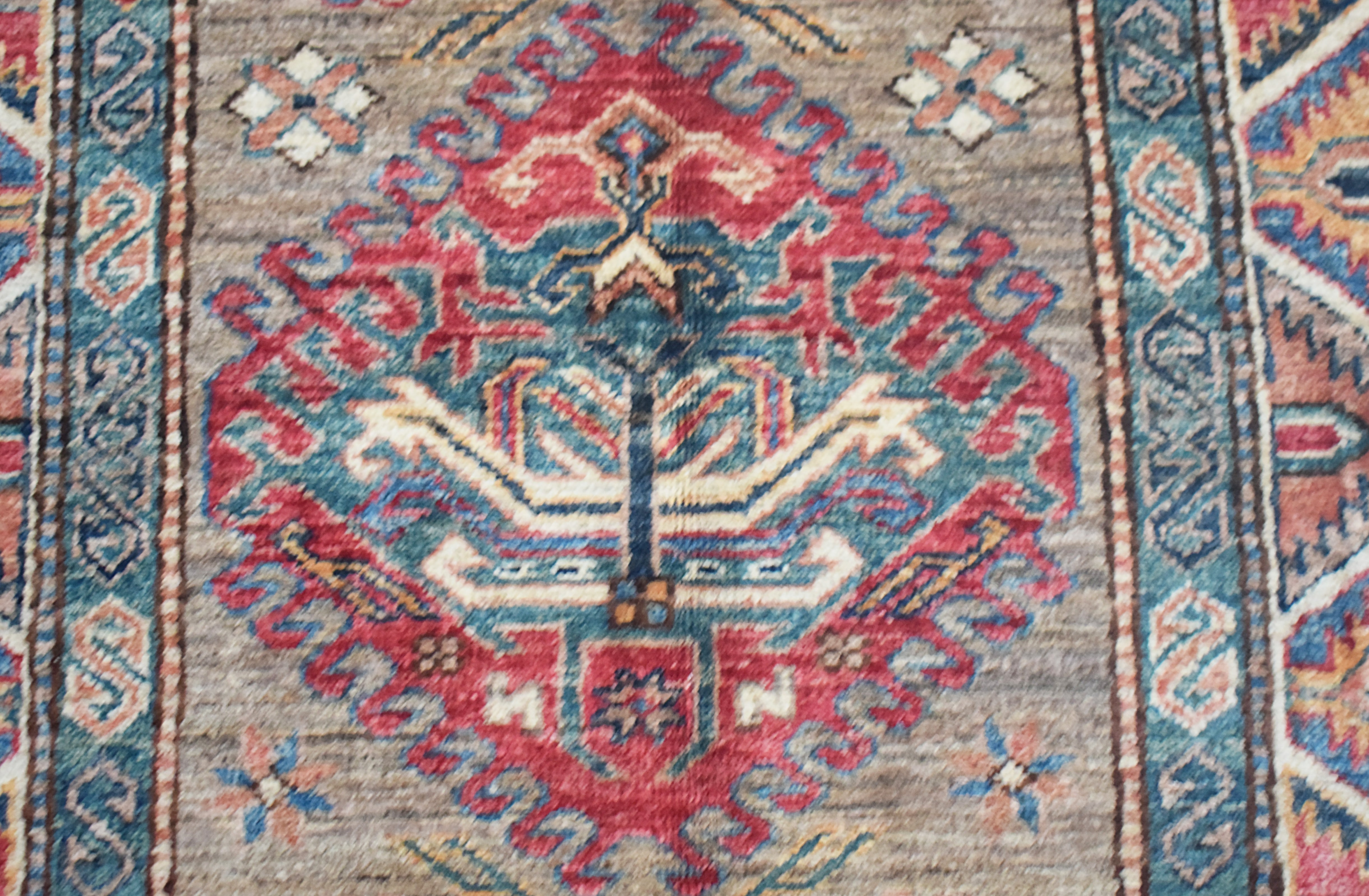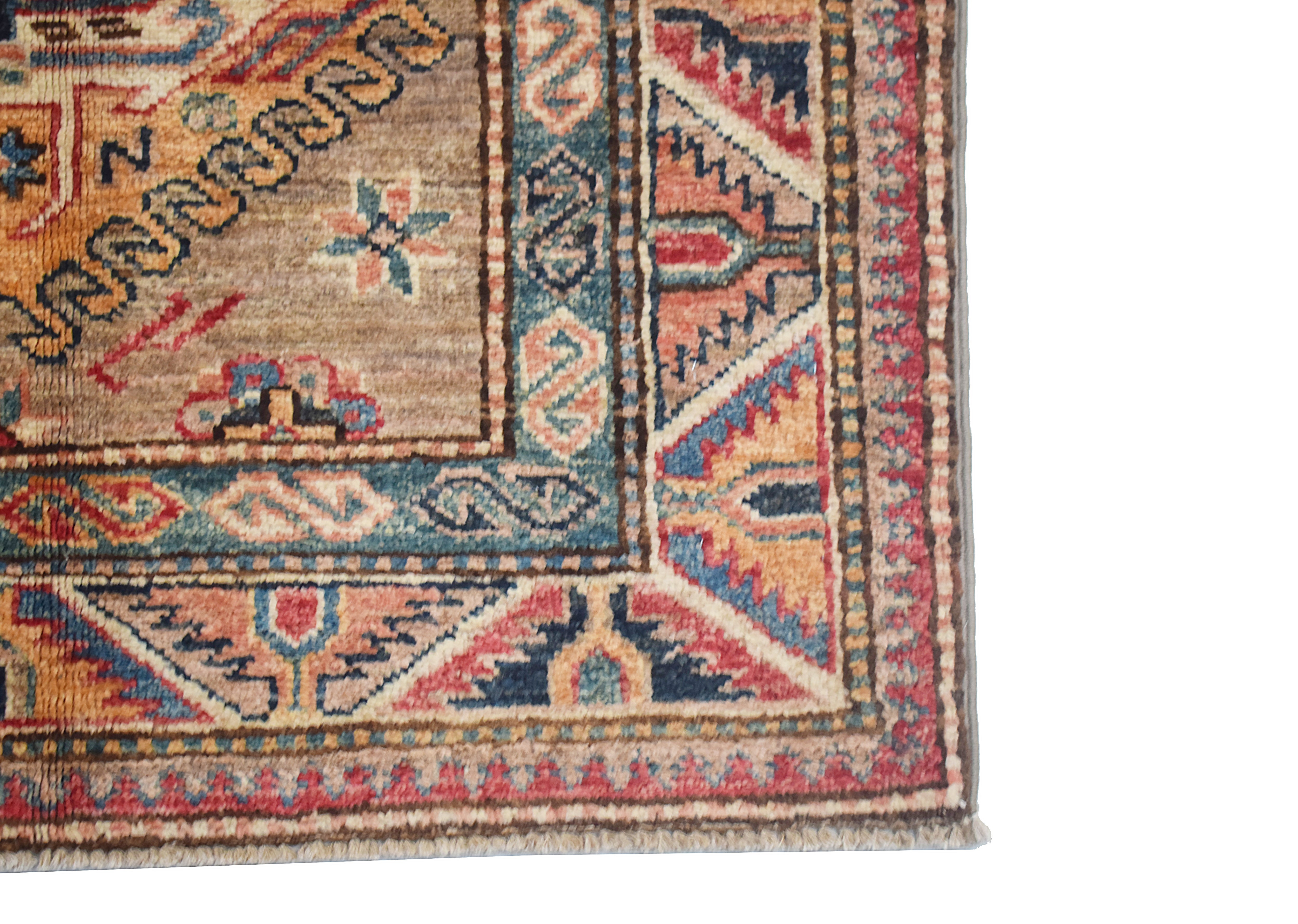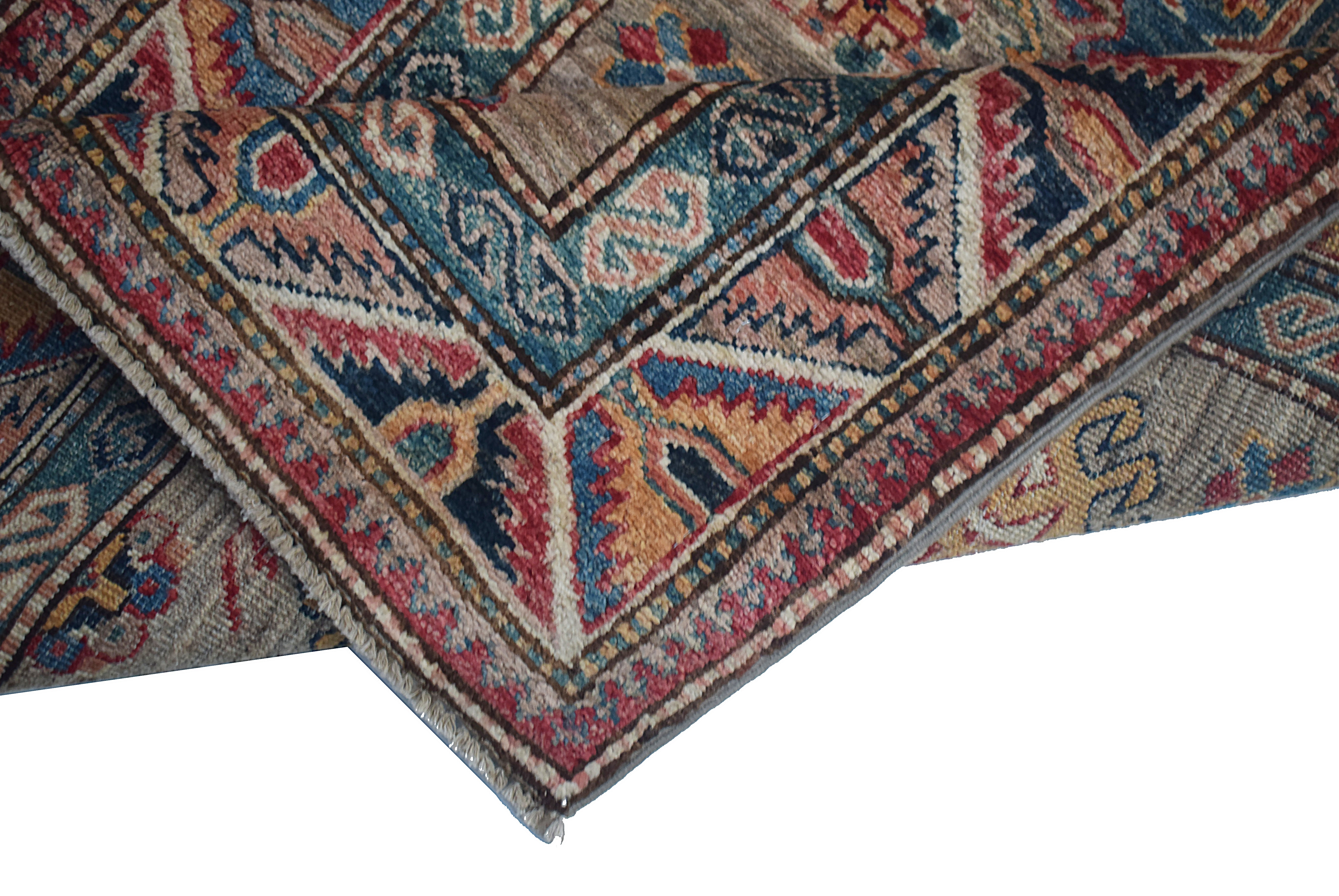 A Super Kazakh rug is a masterpiece of craftsmanship, woven by talented Hazara weavers who carry forward a rich tradition of artistry and skill. Known for their bold geometric patterns and striking colour combinations, these rugs draw inspiration from traditional Caucasian designs, featuring intricate motifs such as medallions, rosettes, and tribal symbols that reflect centuries of cultural heritage. Handwoven from high-quality wool with a dense weave, Super Kazakh rugs are not only visually stunning but also exceptionally durable, perfect for high-traffic areas or as statement pieces in your home. The vibrant palette—often showcasing rich reds, deep blues, and golden yellows—infuses warmth and character into any space. Each rug is a testament to the craftsmanship and dedication of Hazara artisans, blending heritage with modern appeal to complement any décor.