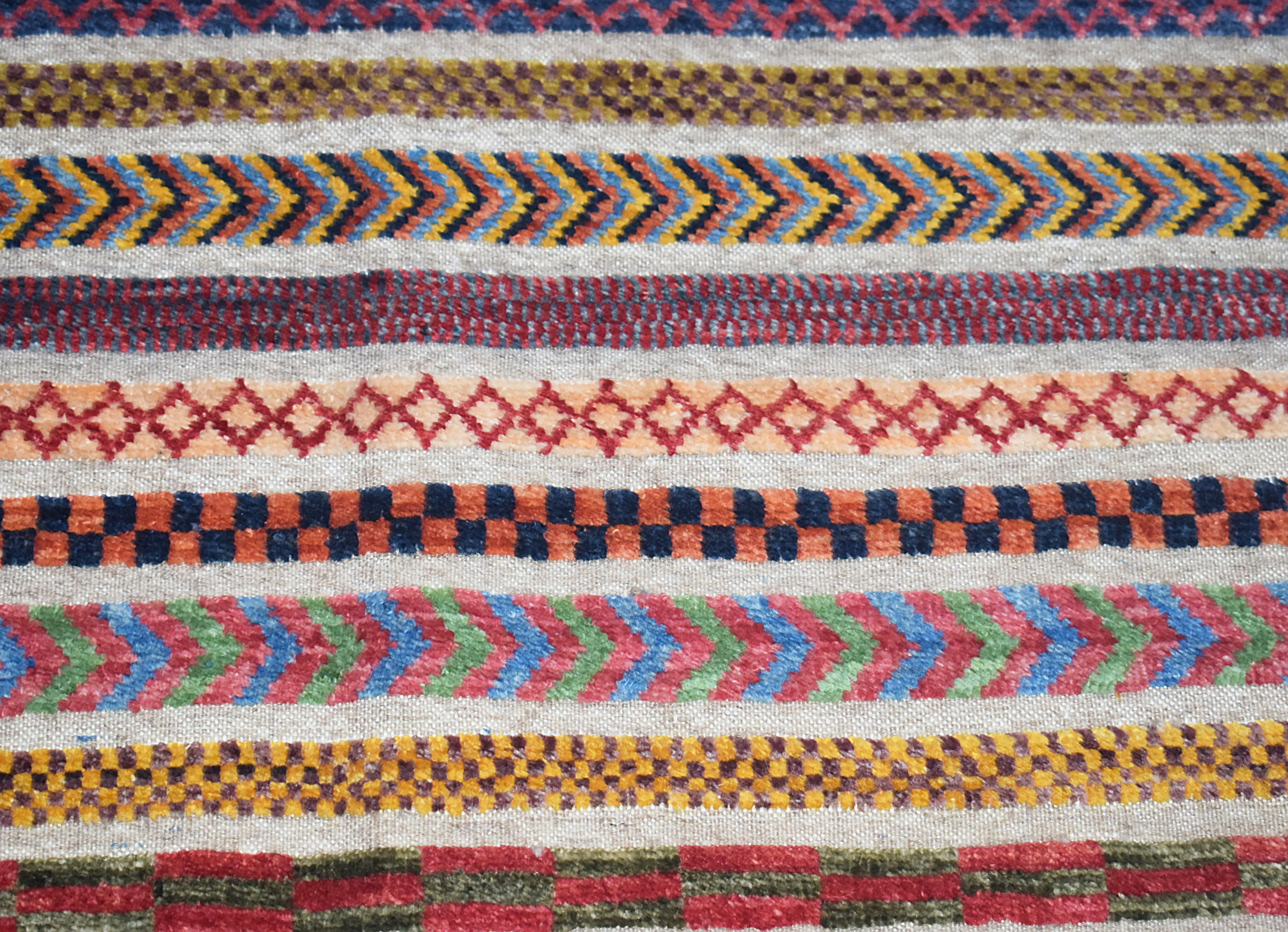 A Barjasta rug is a unique Afghan creation that combines the plush texture of traditional rugs with the flatweave style of kilims, resulting in a striking half-rug, half-kilim design. Known for its intricate tribal patterns, geometric shapes, and vibrant earthy tones, each Barjasta rug is handwoven using high-quality wool making it exceptionally durable and visually captivating. Perfect for both contemporary and traditional interiors, these rugs bring warmth, cultural authenticity, and a rich visual texture to any space.