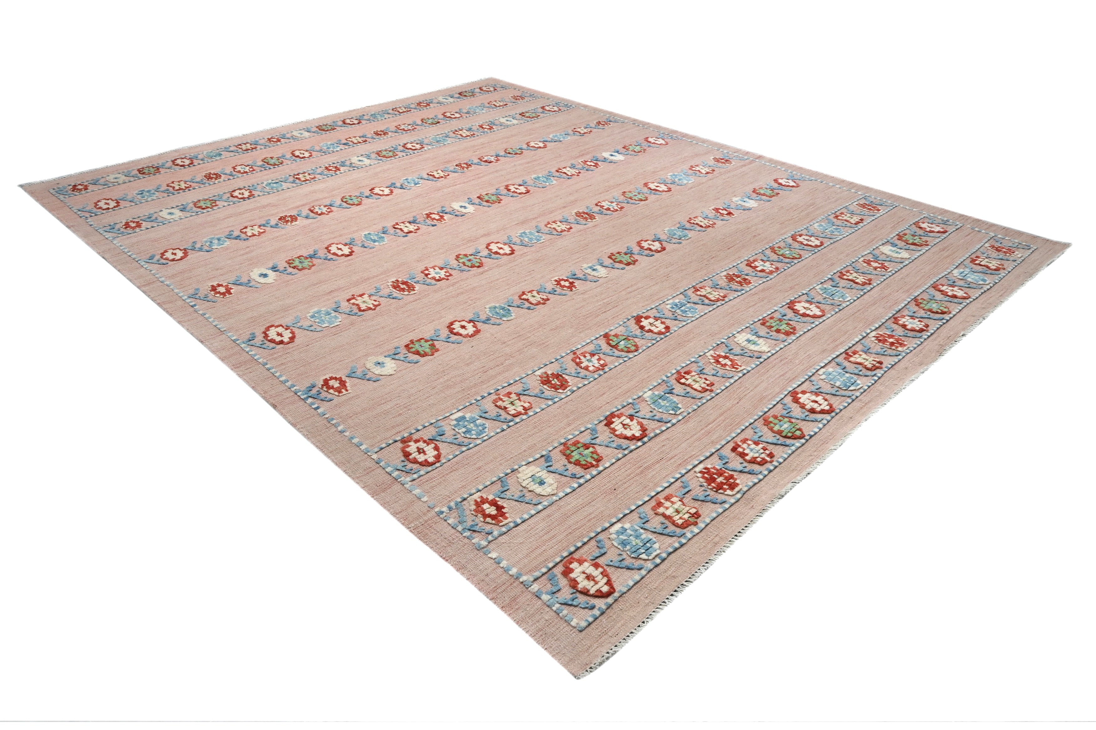 A Barjasta rug is a unique Afghan creation that combines the plush texture of traditional rugs with the flatweave style of kilims, resulting in a striking half-rug, half-kilim design. Known for its intricate tribal patterns, geometric shapes, and vibrant earthy tones, each Barjasta rug is handwoven using high-quality wool making it exceptionally durable and visually captivating. Perfect for both contemporary and traditional interiors, these rugs bring warmth, cultural authenticity, and a rich visual texture to any space.