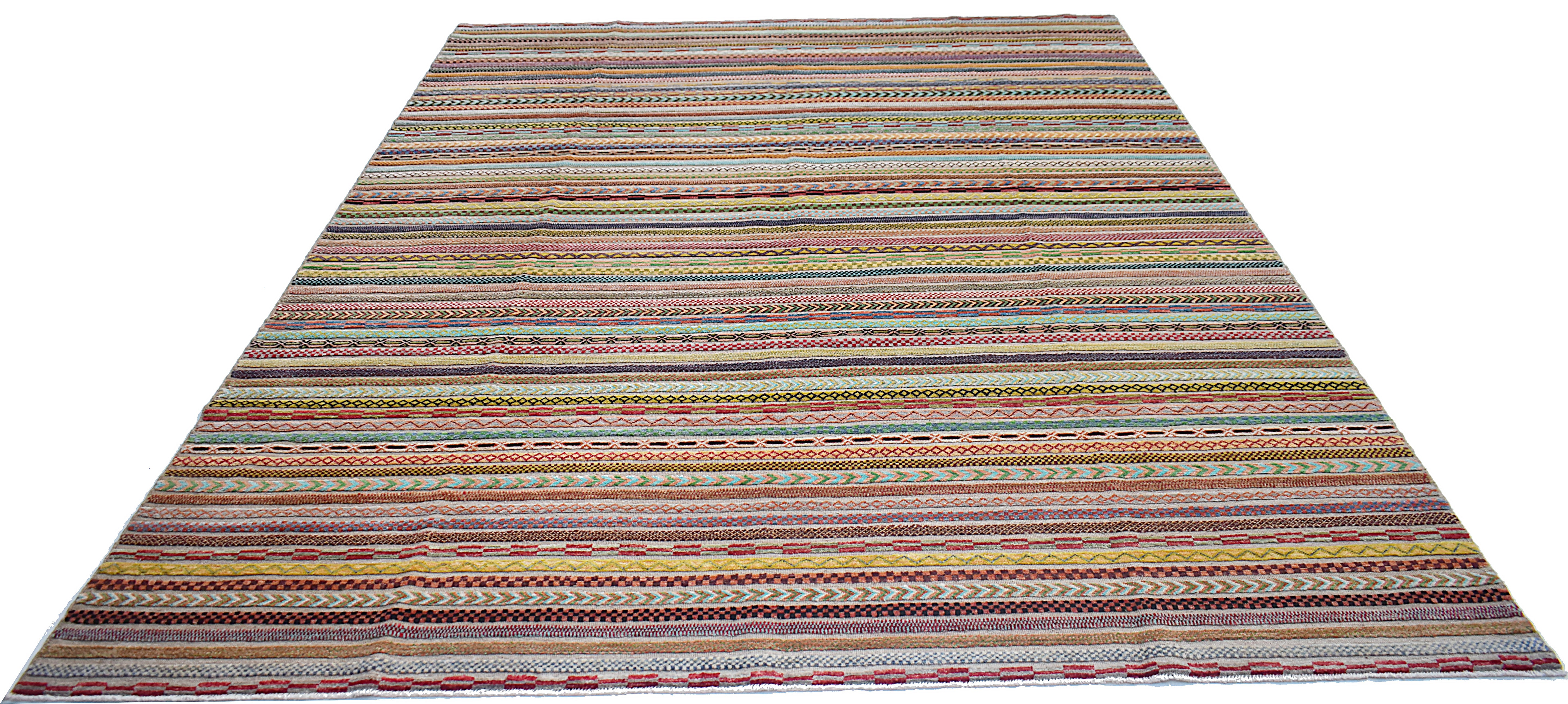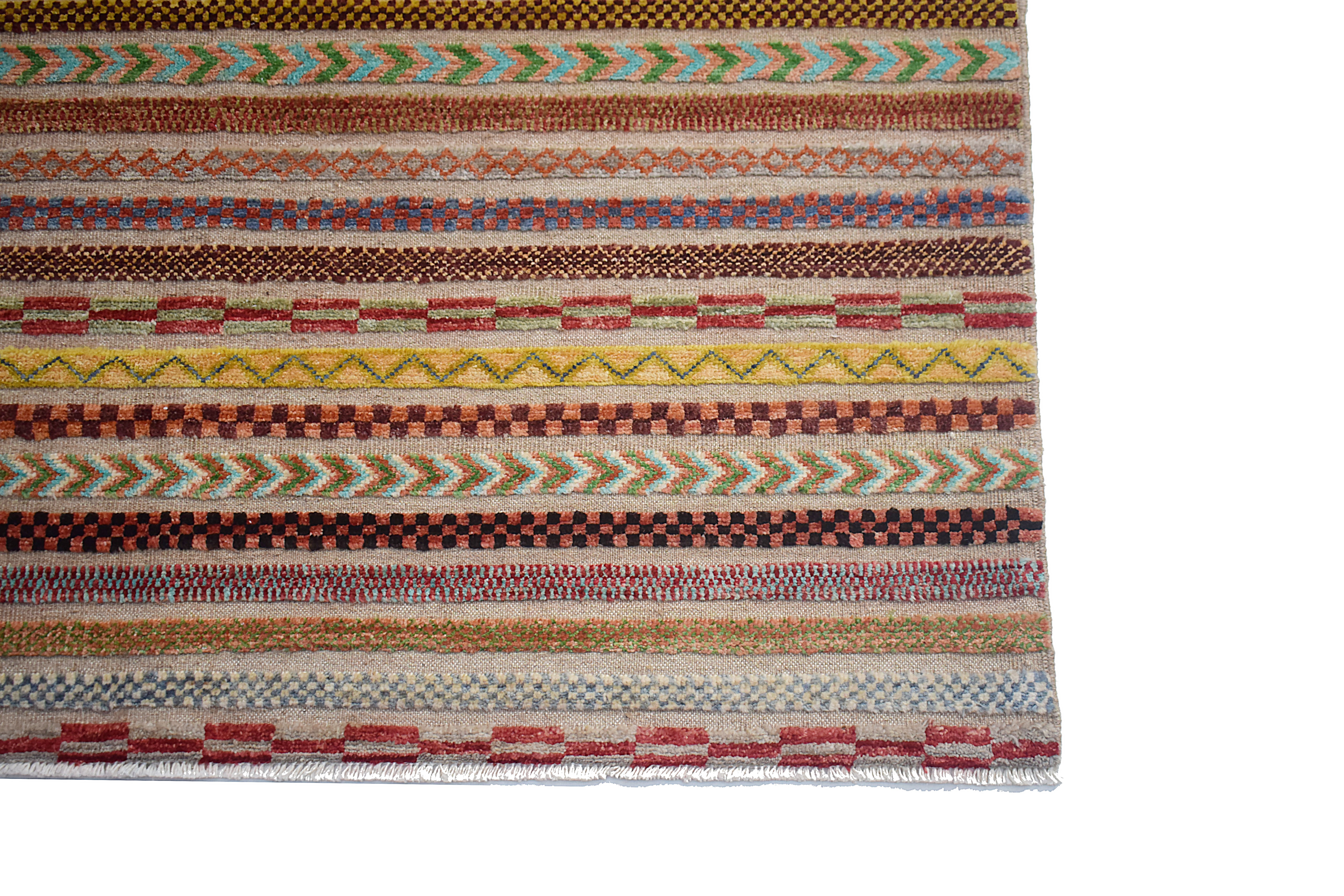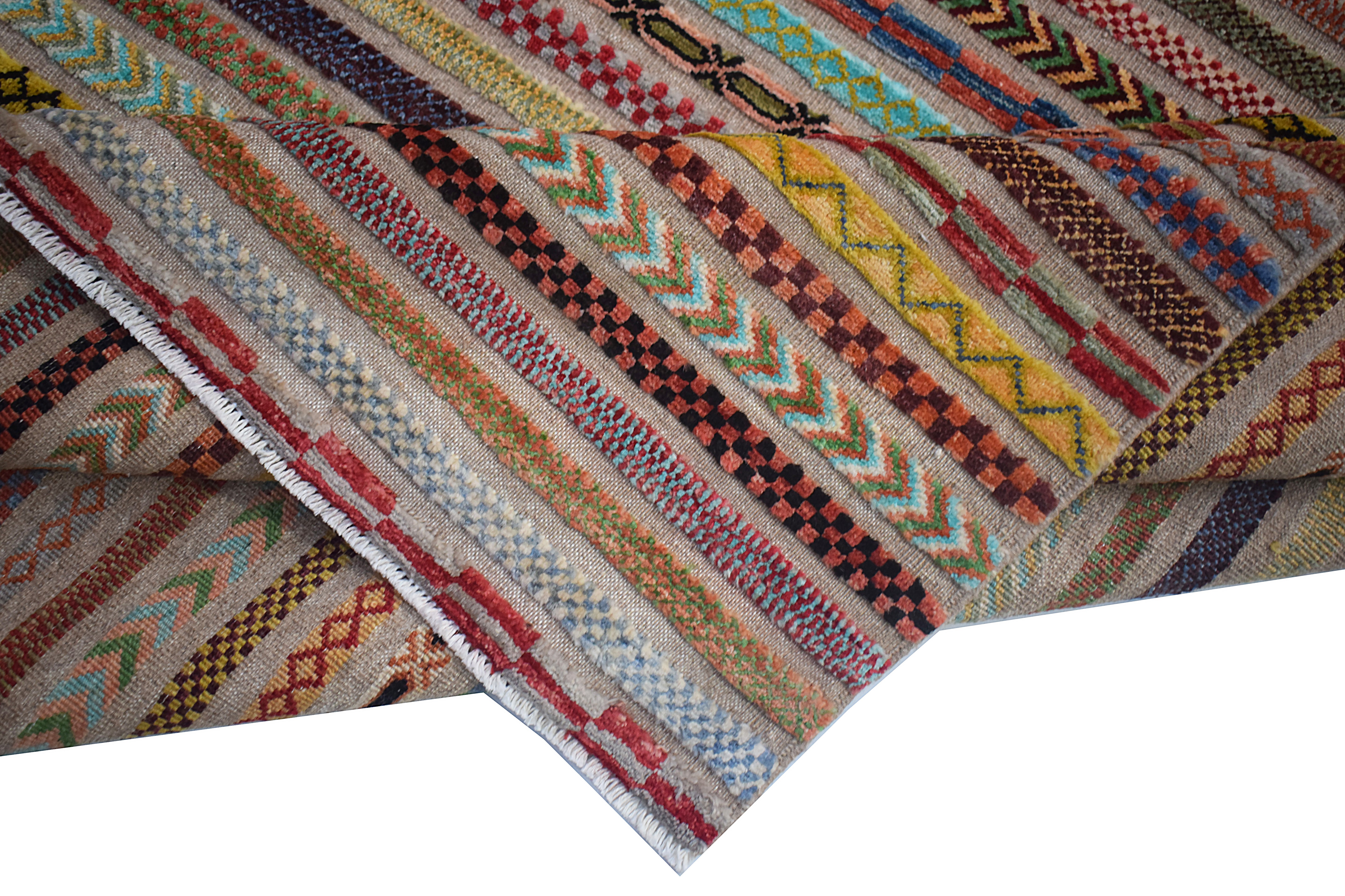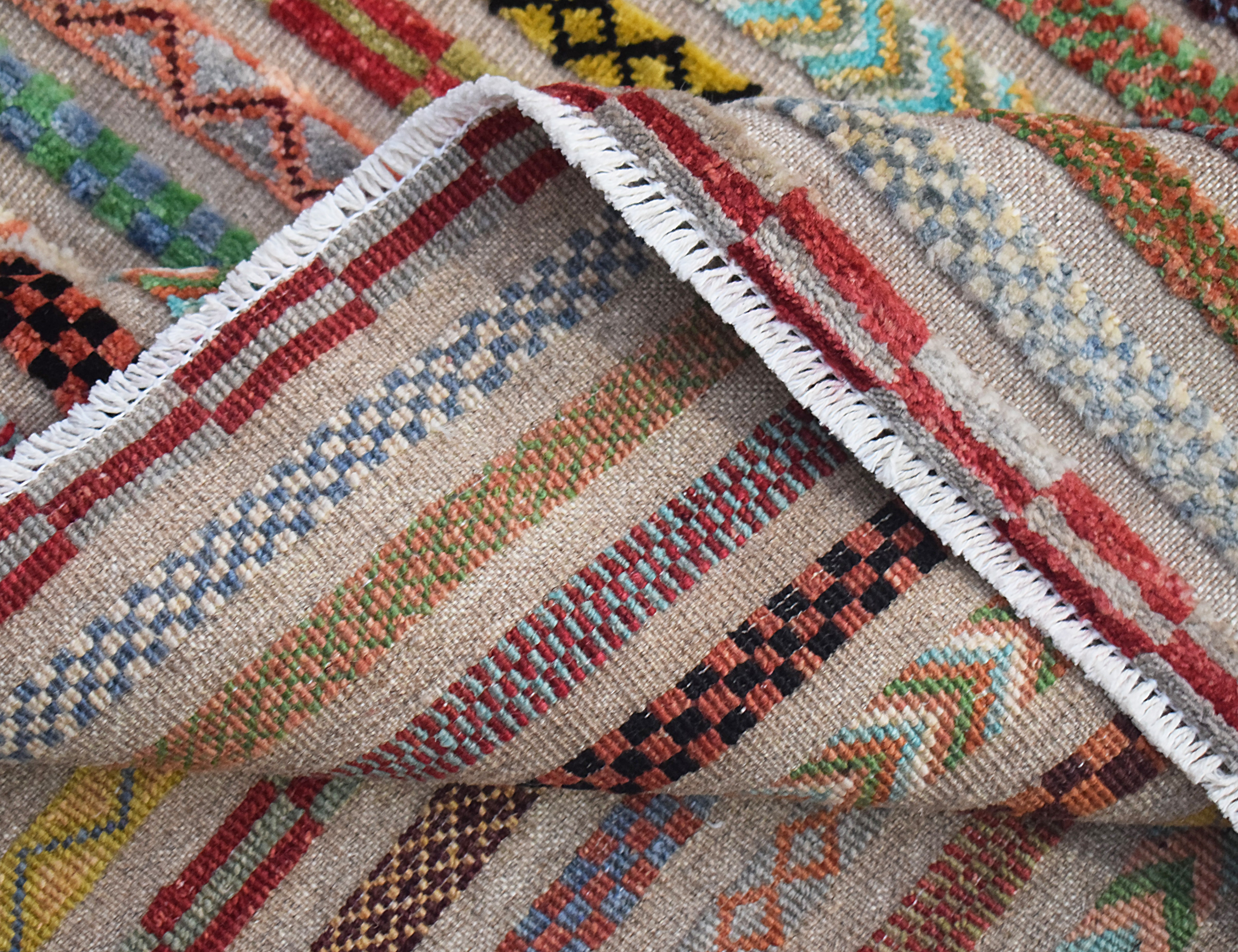 A Barjasta rug is a unique Afghan creation that combines the plush texture of traditional rugs with the flatweave style of kilims, resulting in a striking half-rug, half-kilim design. Known for its intricate tribal patterns, geometric shapes, and vibrant earthy tones, each Barjasta rug is handwoven using high-quality wool making it exceptionally durable and visually captivating. Perfect for both contemporary and traditional interiors, these rugs bring warmth, cultural authenticity, and a rich visual texture to any space.