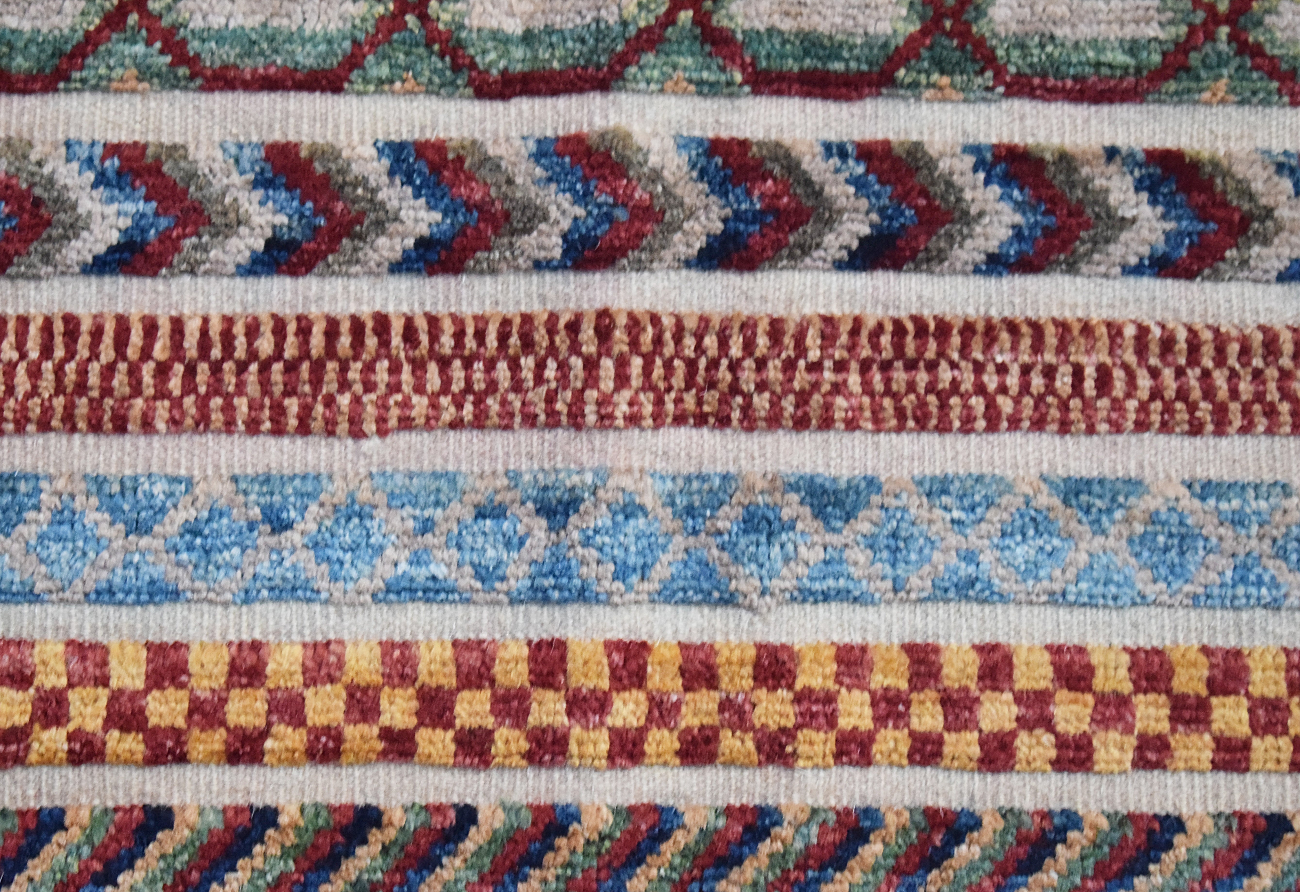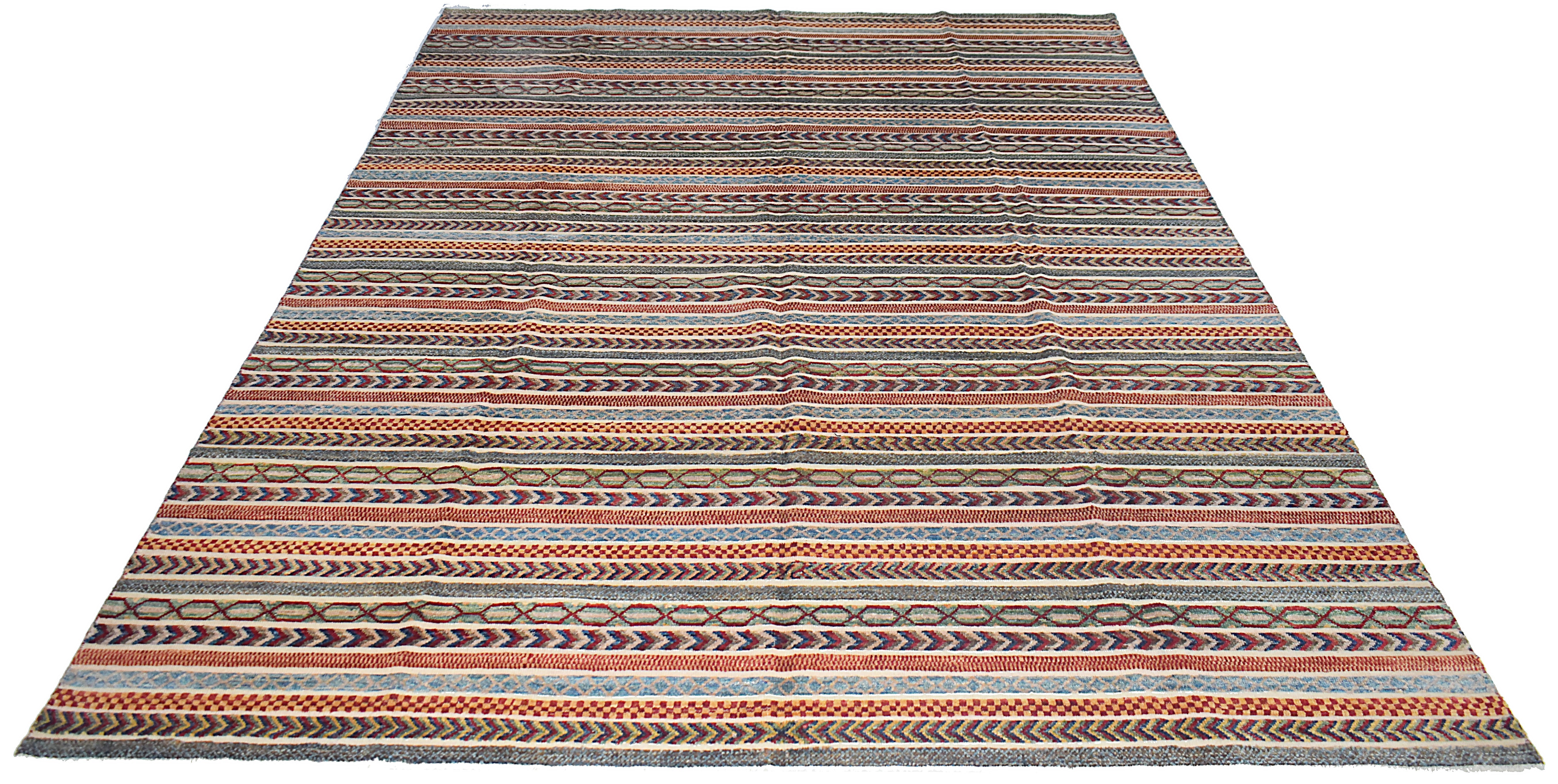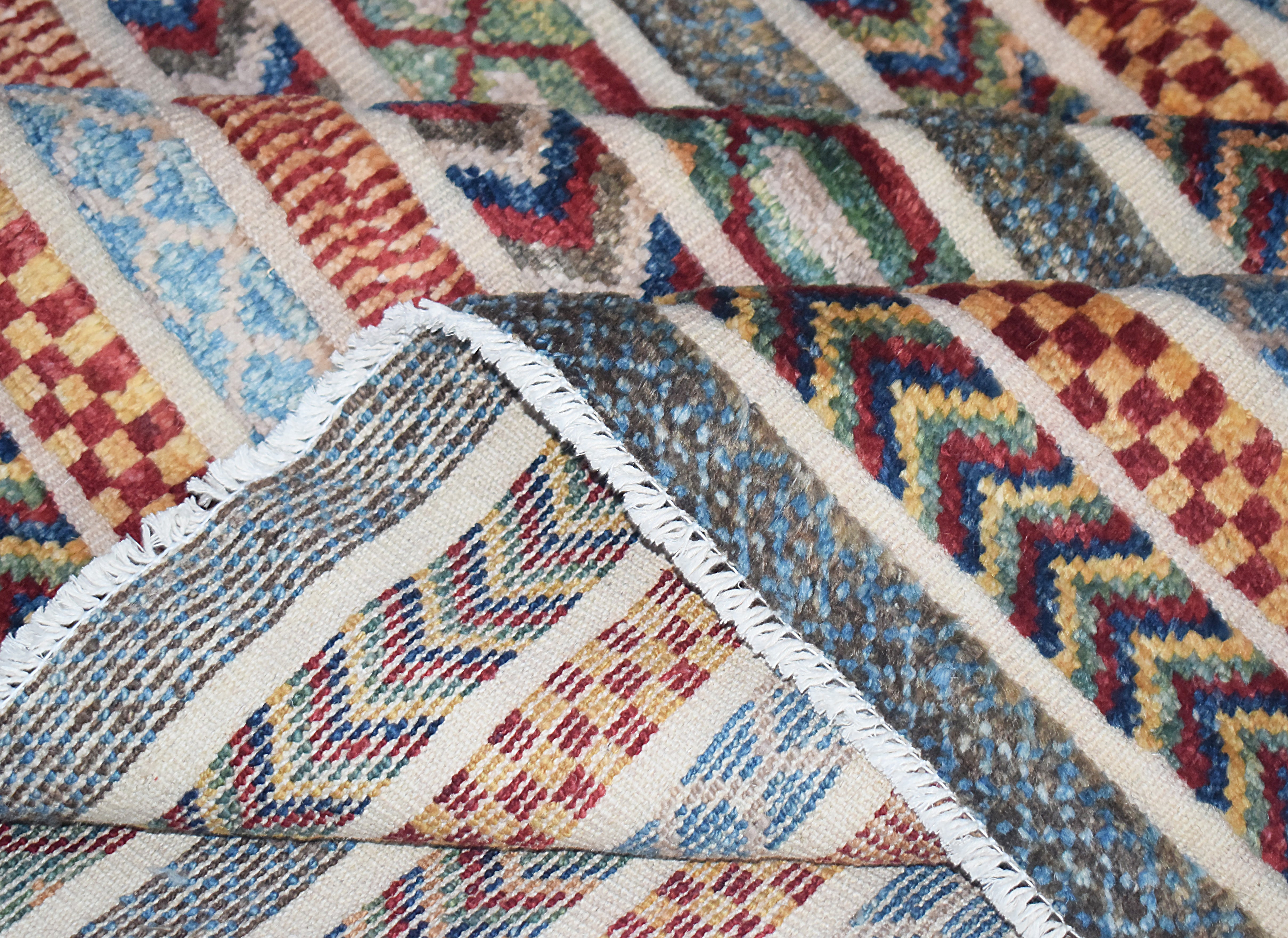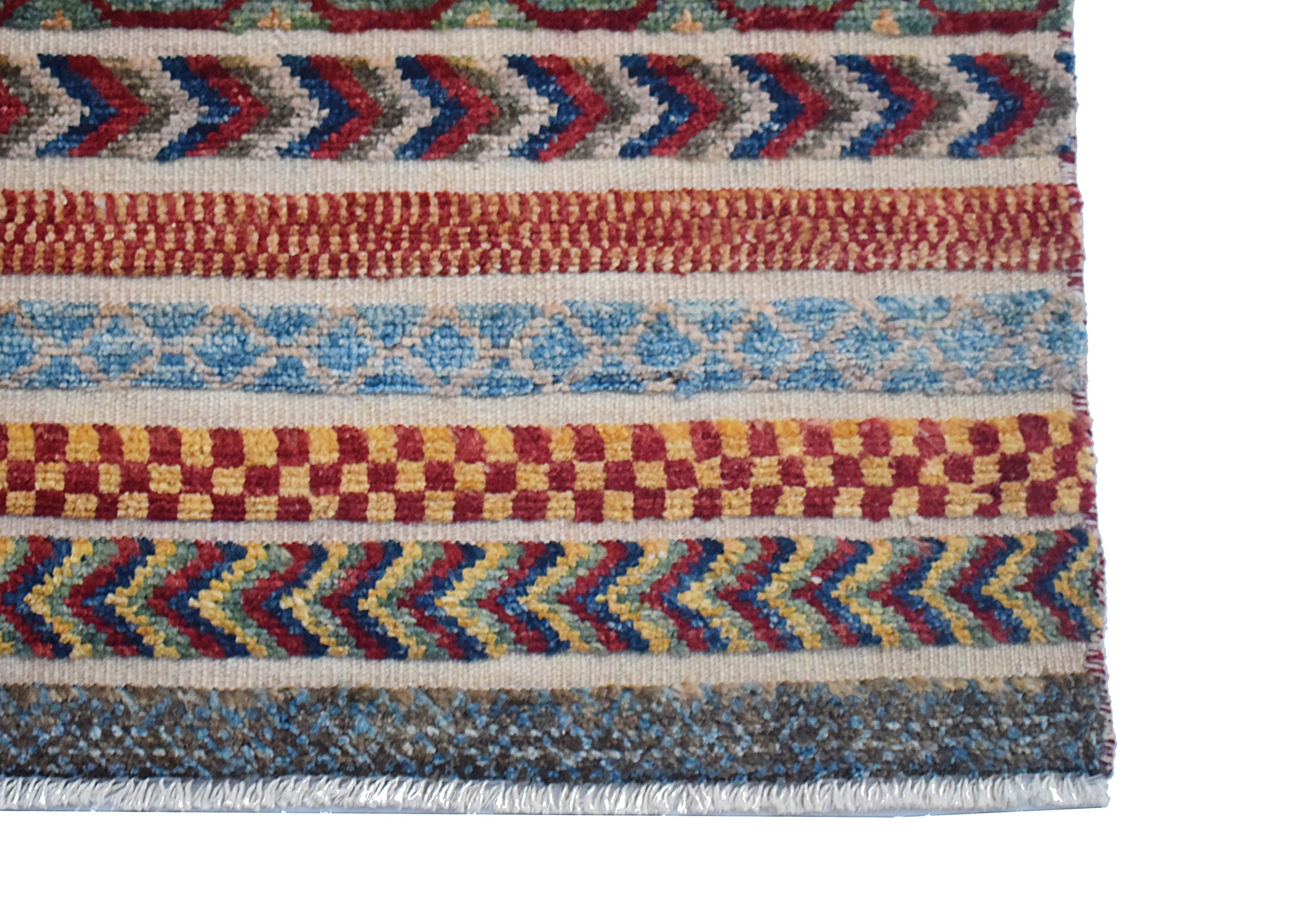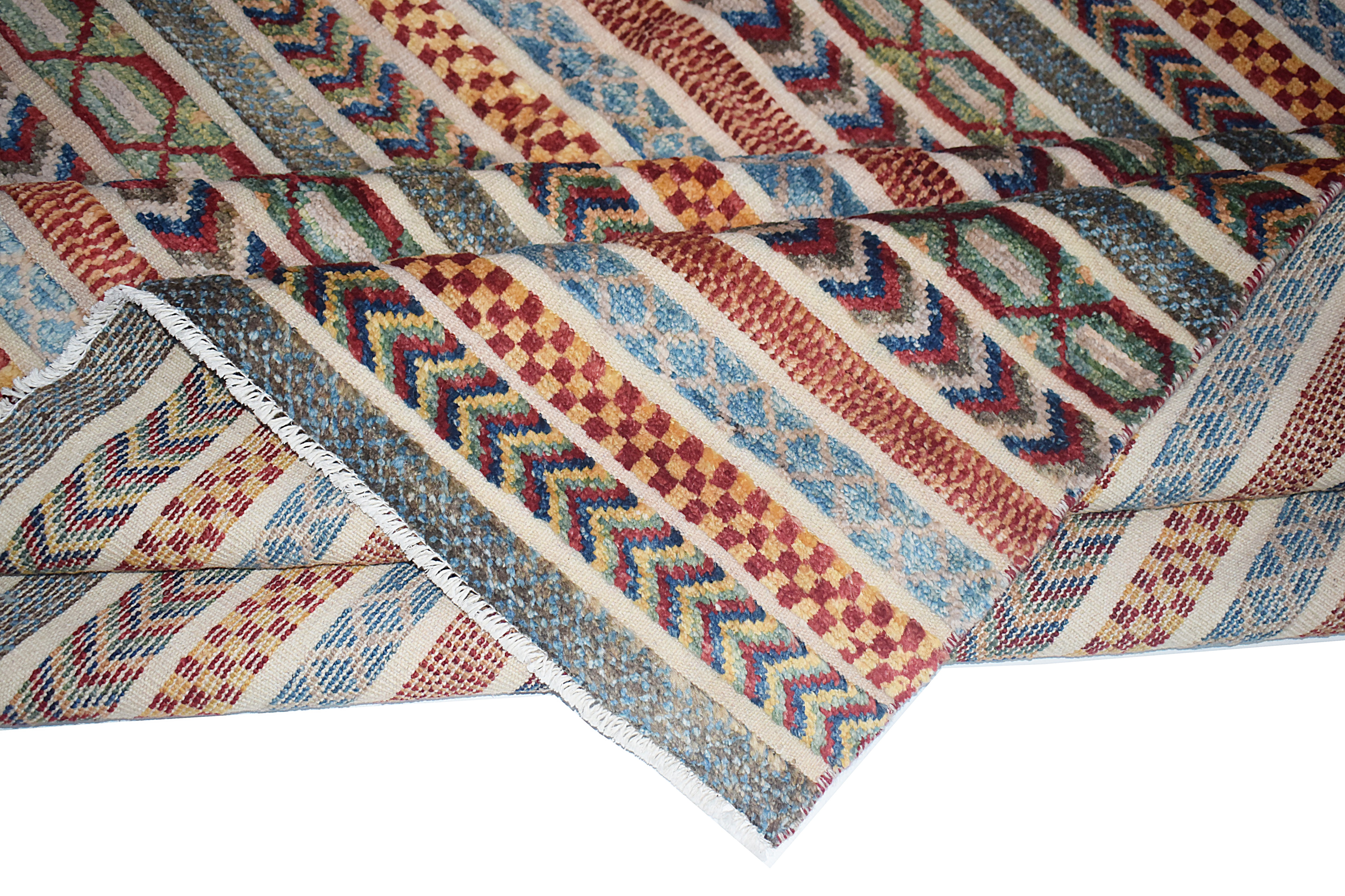A Barjasta rug is a unique Afghan creation that combines the plush texture of traditional rugs with the flatweave style of kilims, resulting in a striking half-rug, half-kilim design. Known for its intricate tribal patterns, geometric shapes, and vibrant earthy tones, each Barjasta rug is handwoven using high-quality wool making it exceptionally durable and visually captivating. Perfect for both contemporary and traditional interiors, these rugs bring warmth, cultural authenticity, and a rich visual texture to any space.