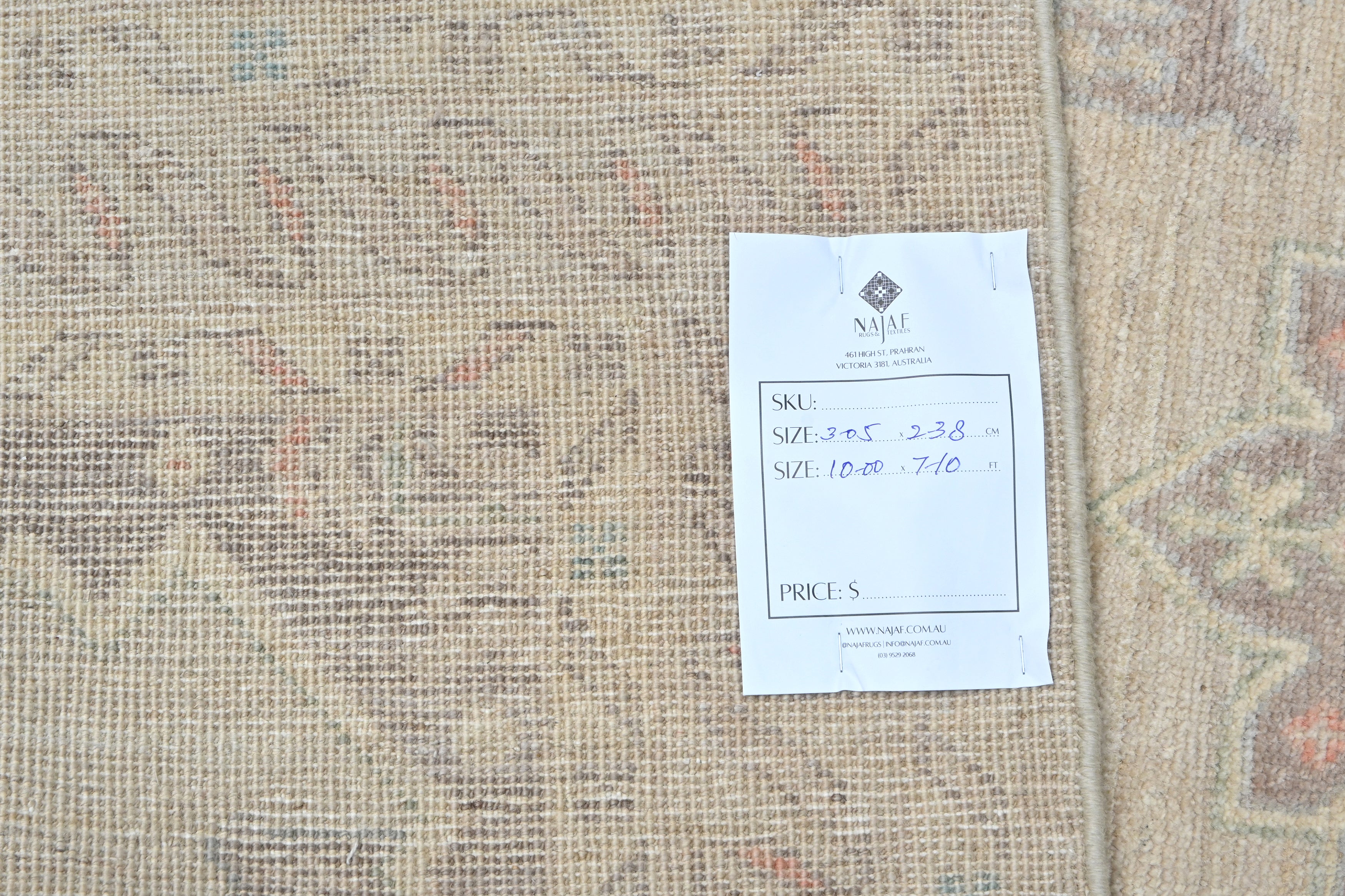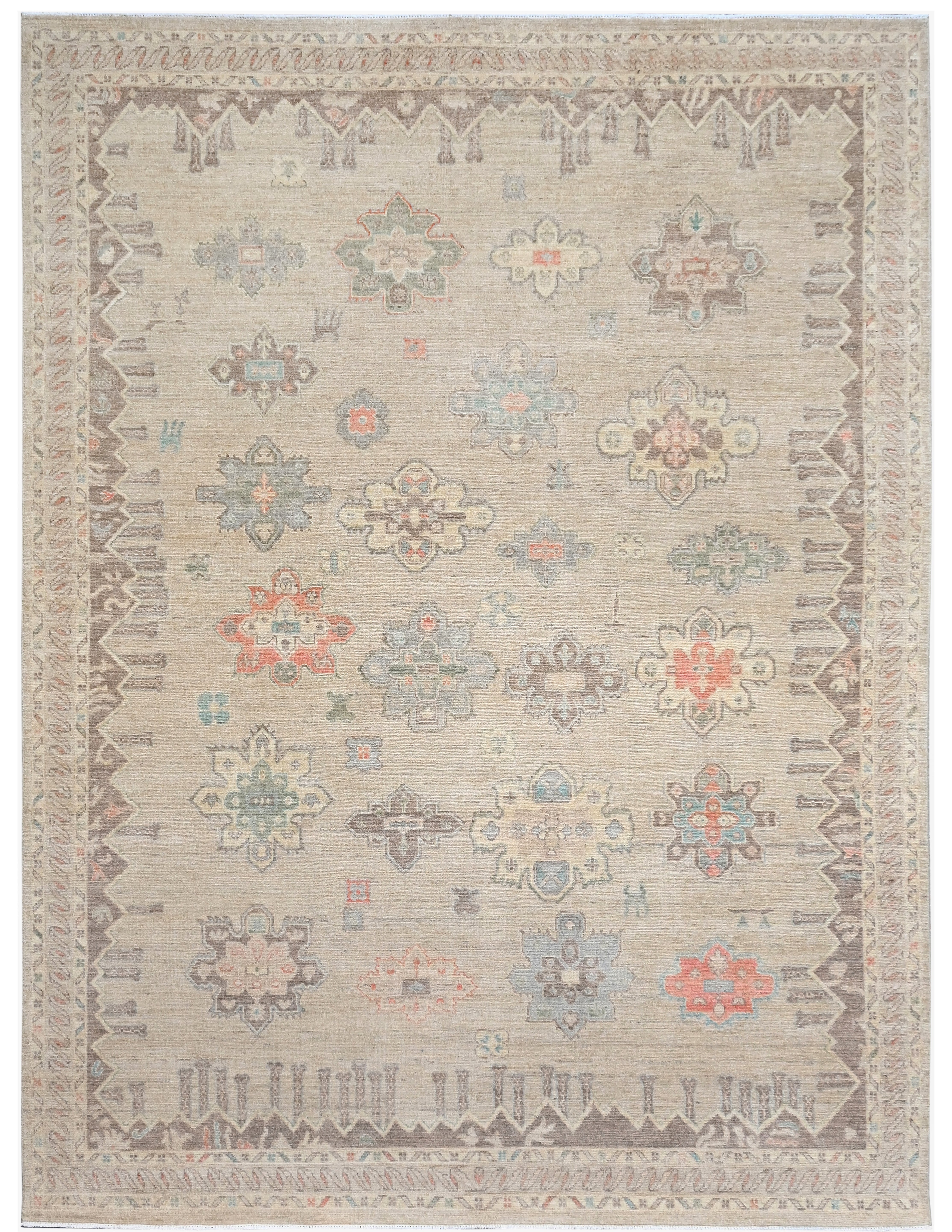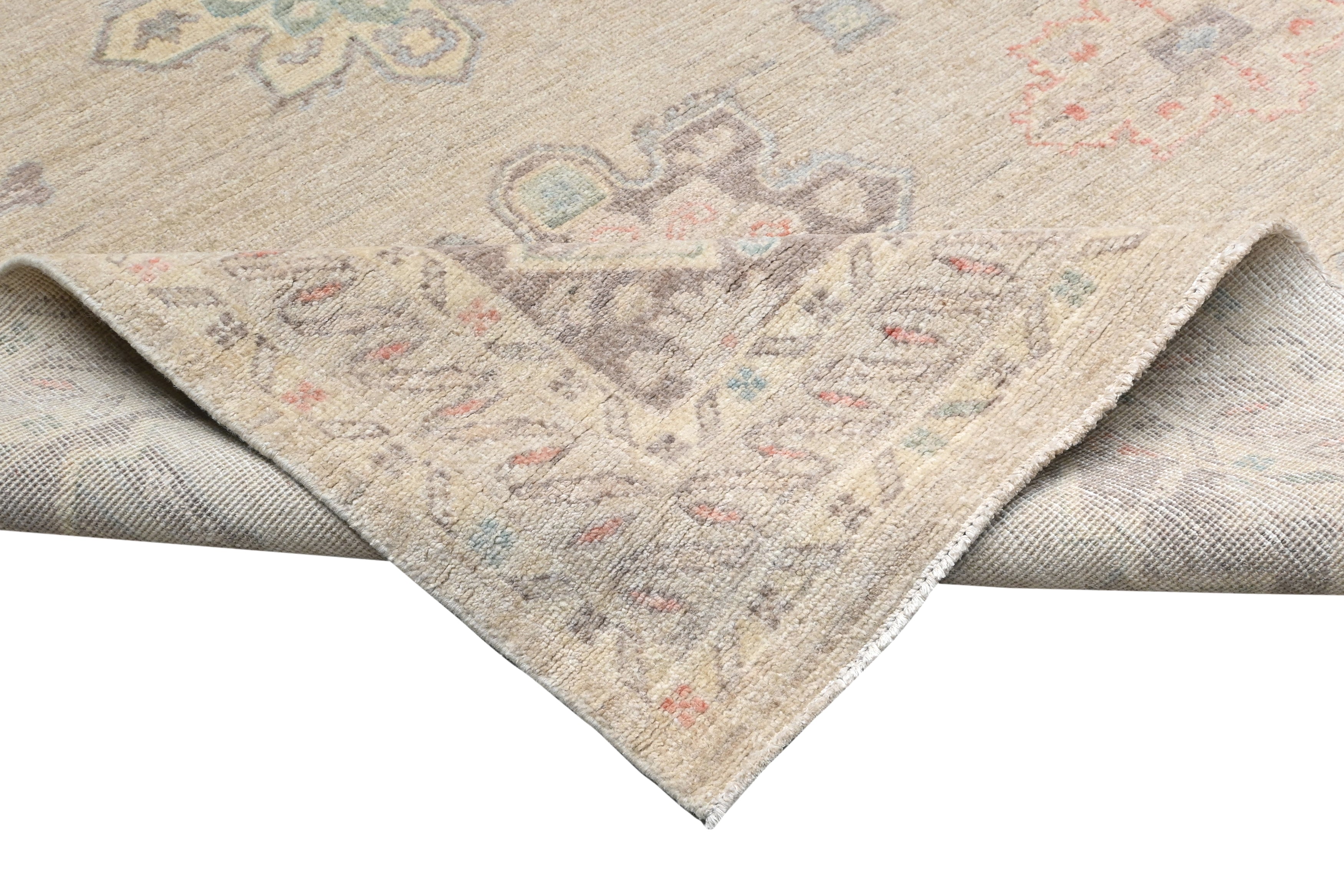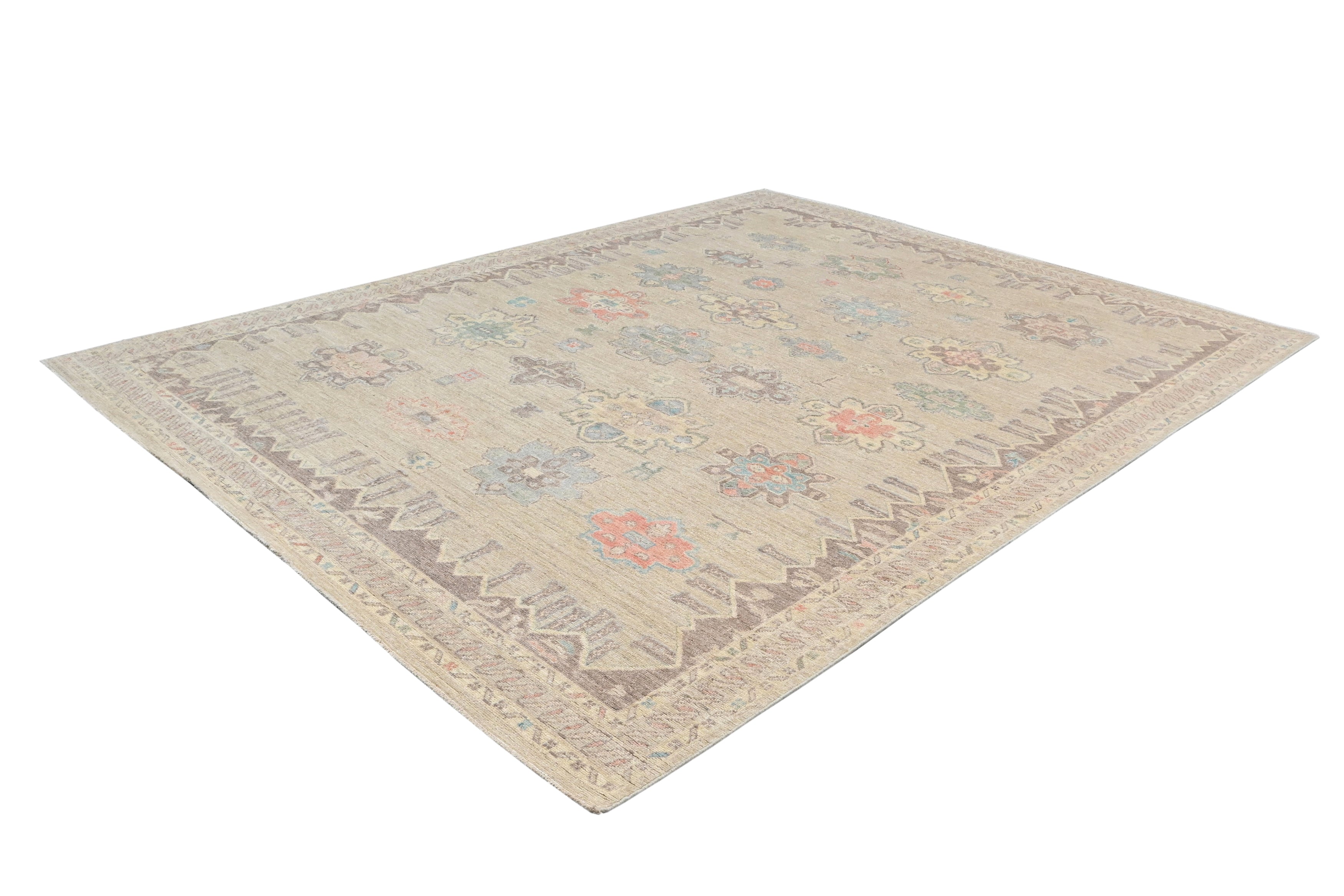 This exquisite handmade Oushak rug captures the timeless elegance of traditional handwoven designs while adding a modern twist with its contemporary colour palette. Featuring a soft pattern, this transitional piece effortlessly blends antique charm with a fresh, modern aesthetic, making it a versatile choice for any décor style.