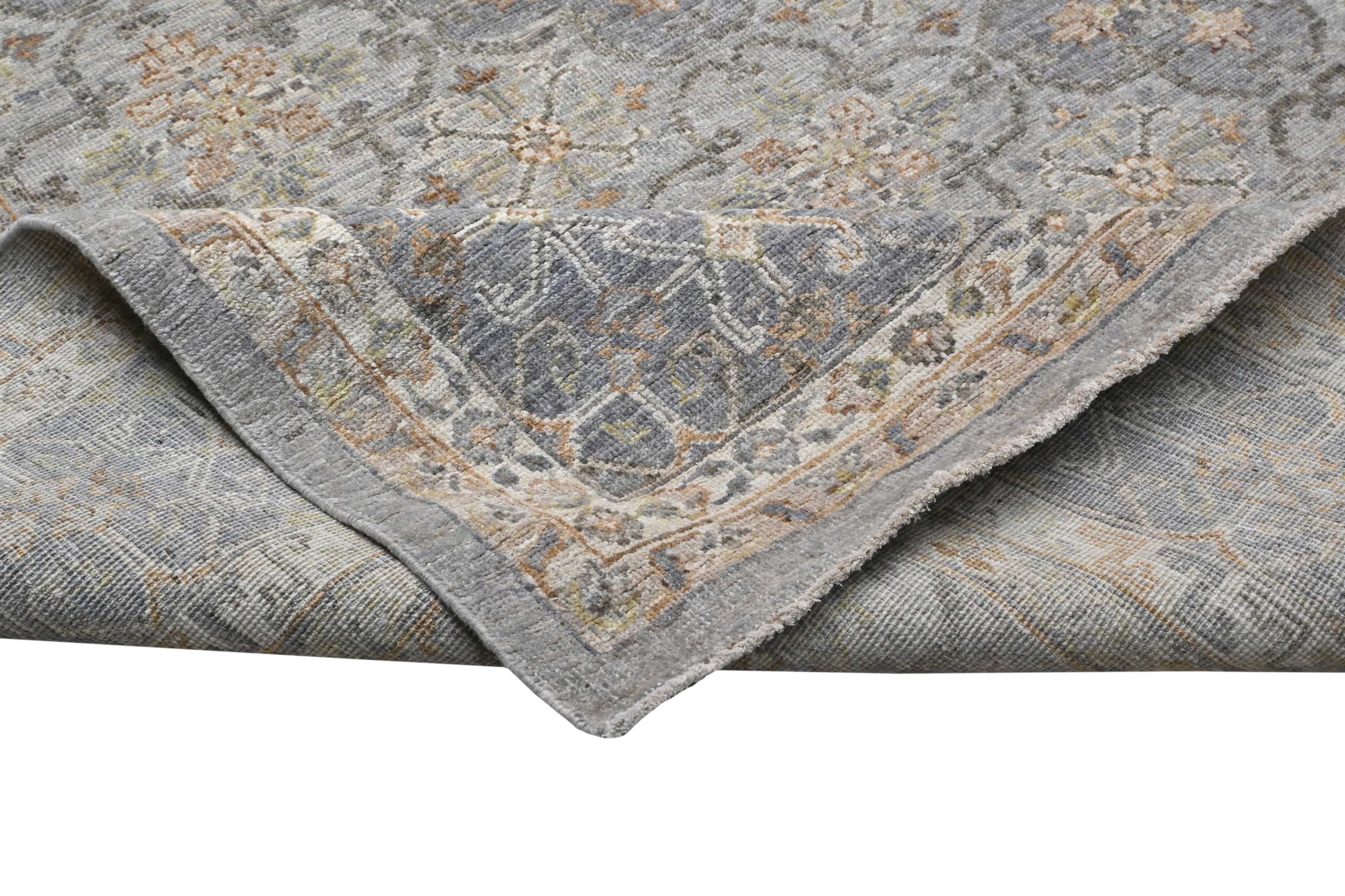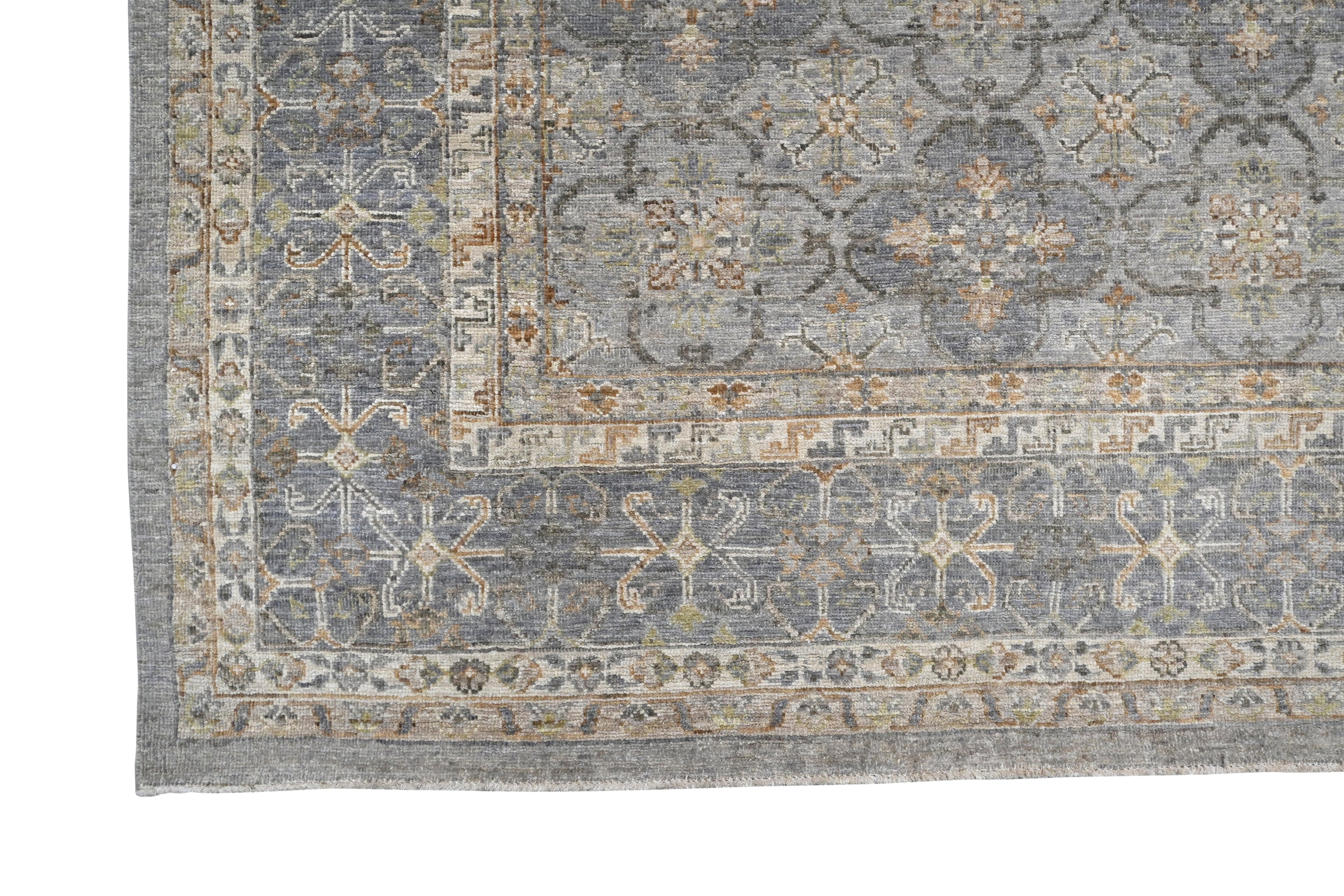 This exquisite handmade Oushak rug captures the timeless elegance of traditional handwoven designs while adding a modern twist with its contemporary colour palette. Featuring a soft pattern, this transitional piece effortlessly blends antique charm with a fresh, modern aesthetic, making it a versatile choice for any décor style.