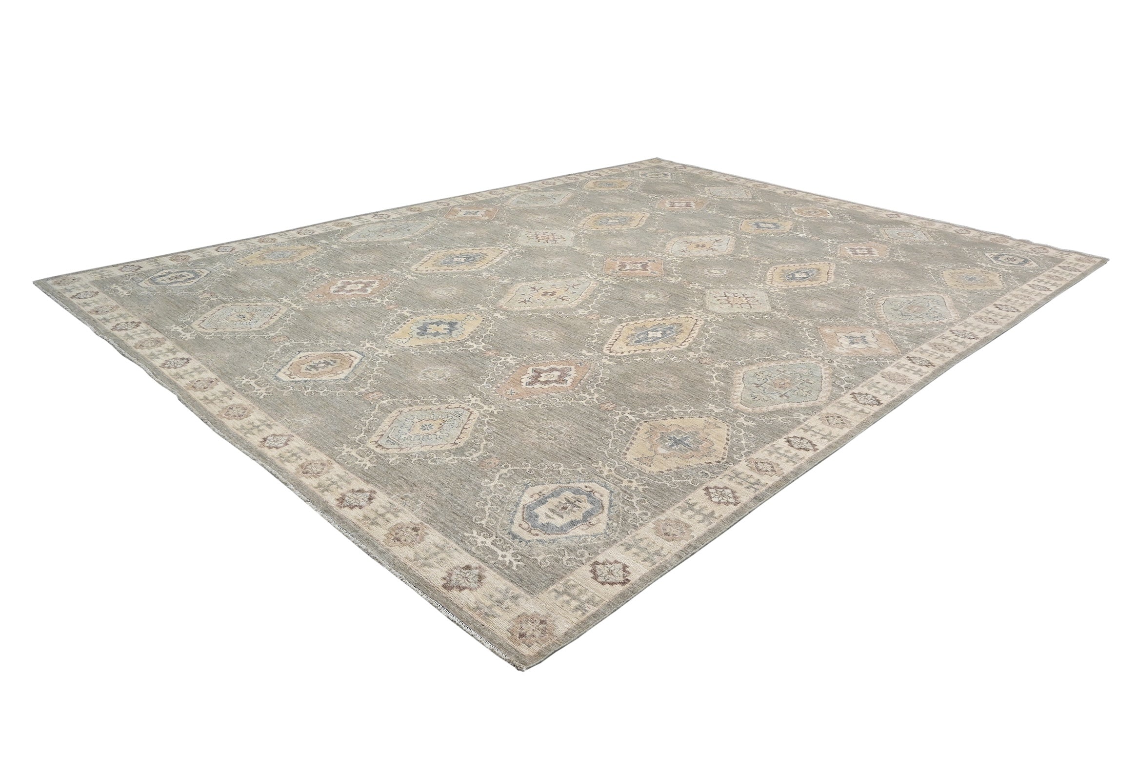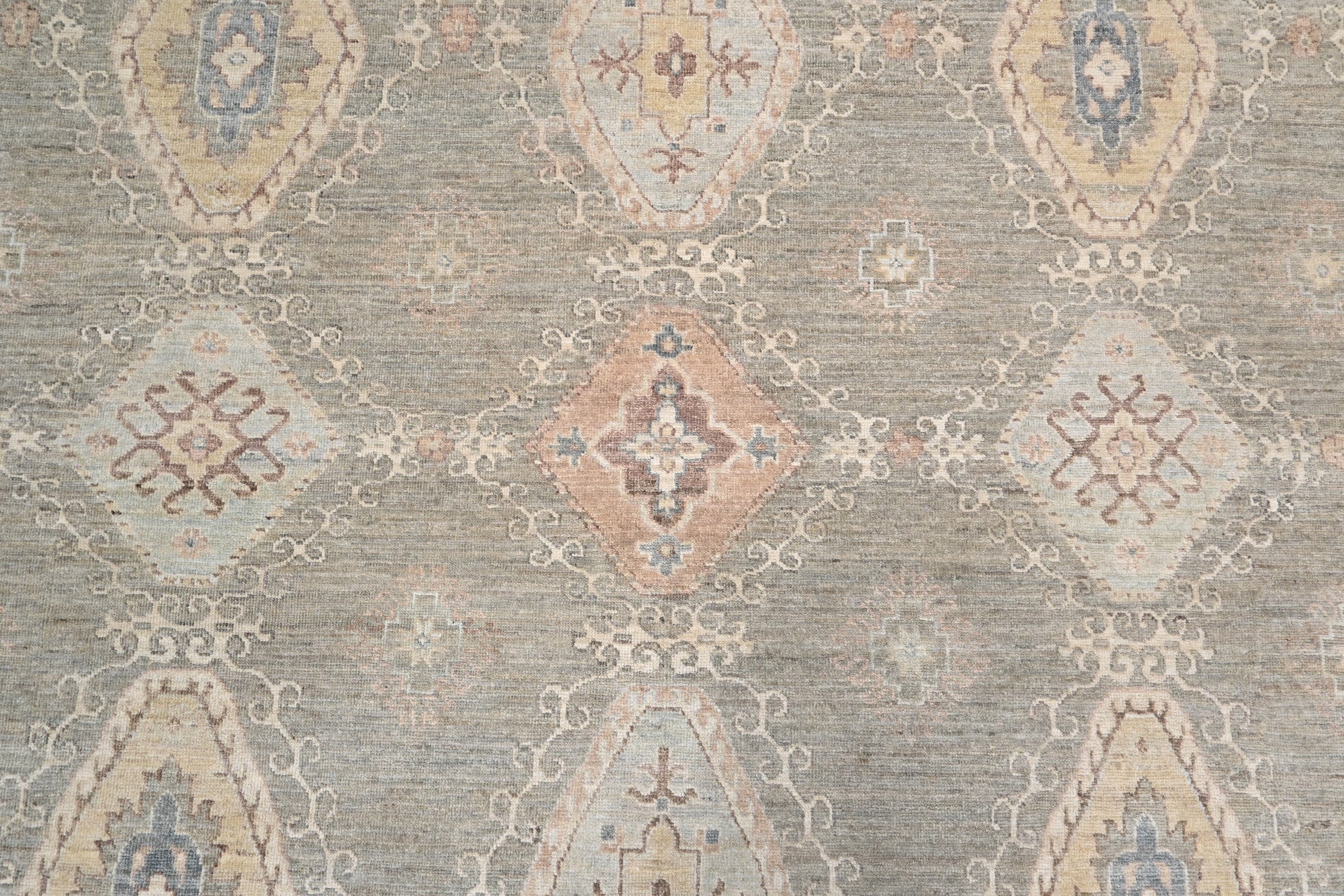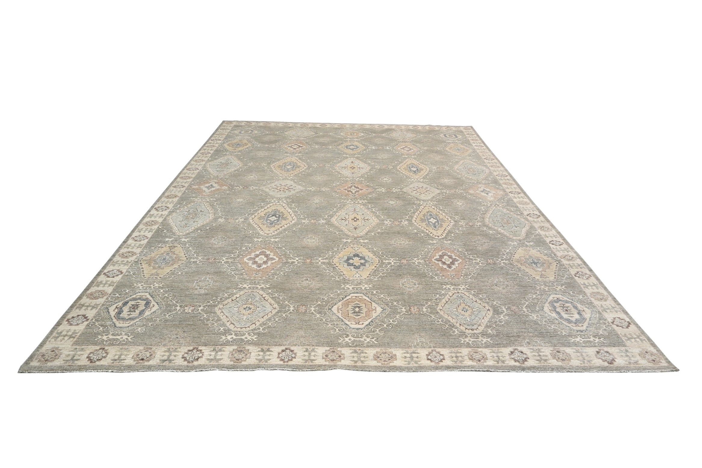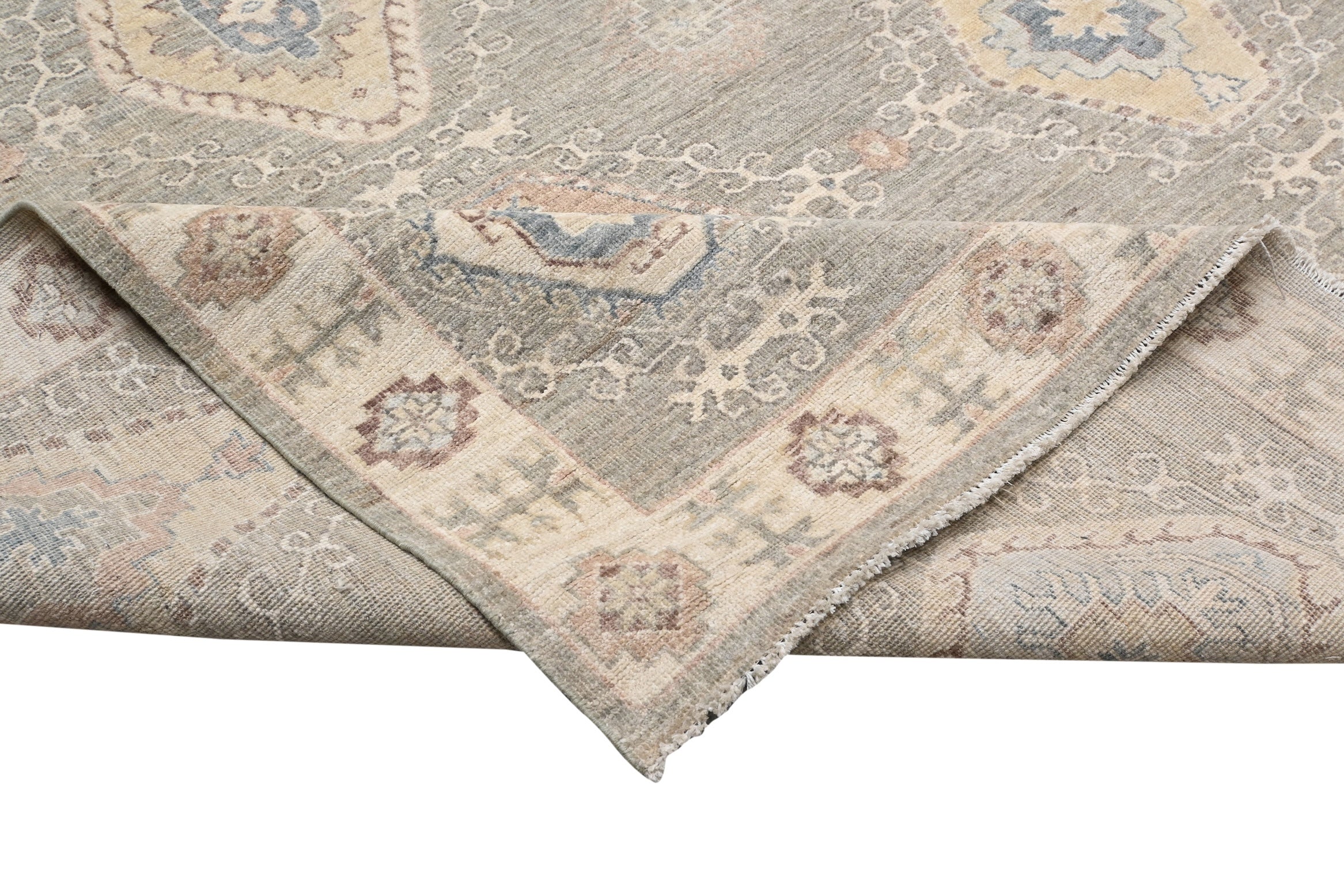 This exquisite handmade Oushak rug captures the timeless elegance of traditional handwoven designs while adding a modern twist with its contemporary colour palette. Featuring a soft pattern, this transitional piece effortlessly blends antique charm with a fresh, modern aesthetic, making it a versatile choice for any décor style.