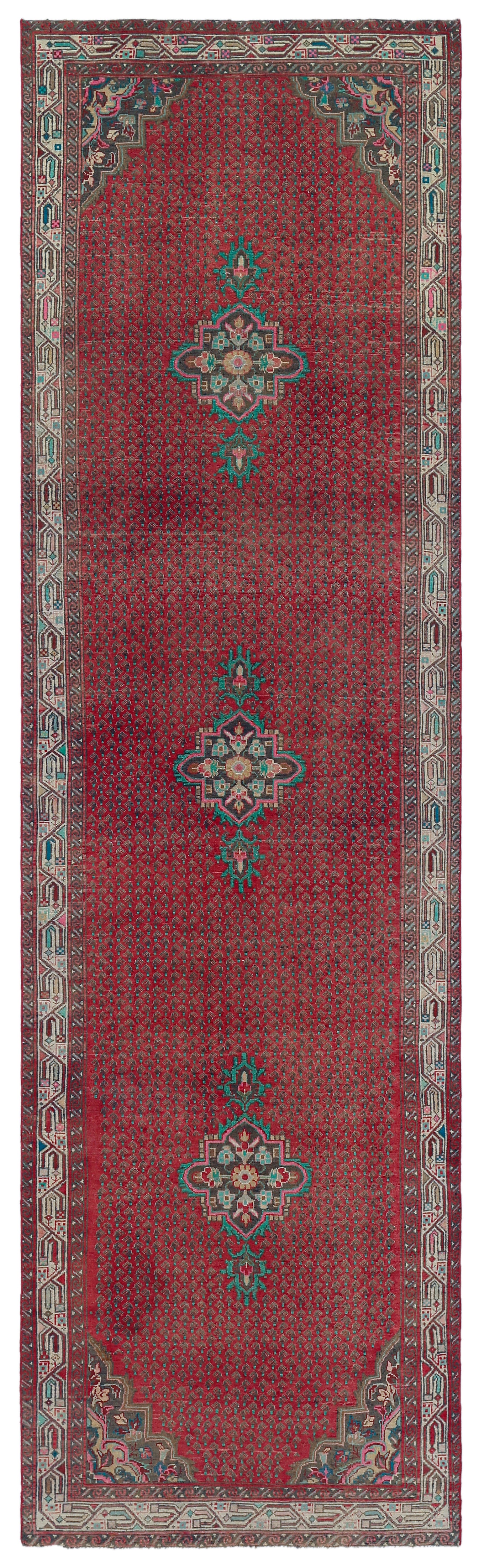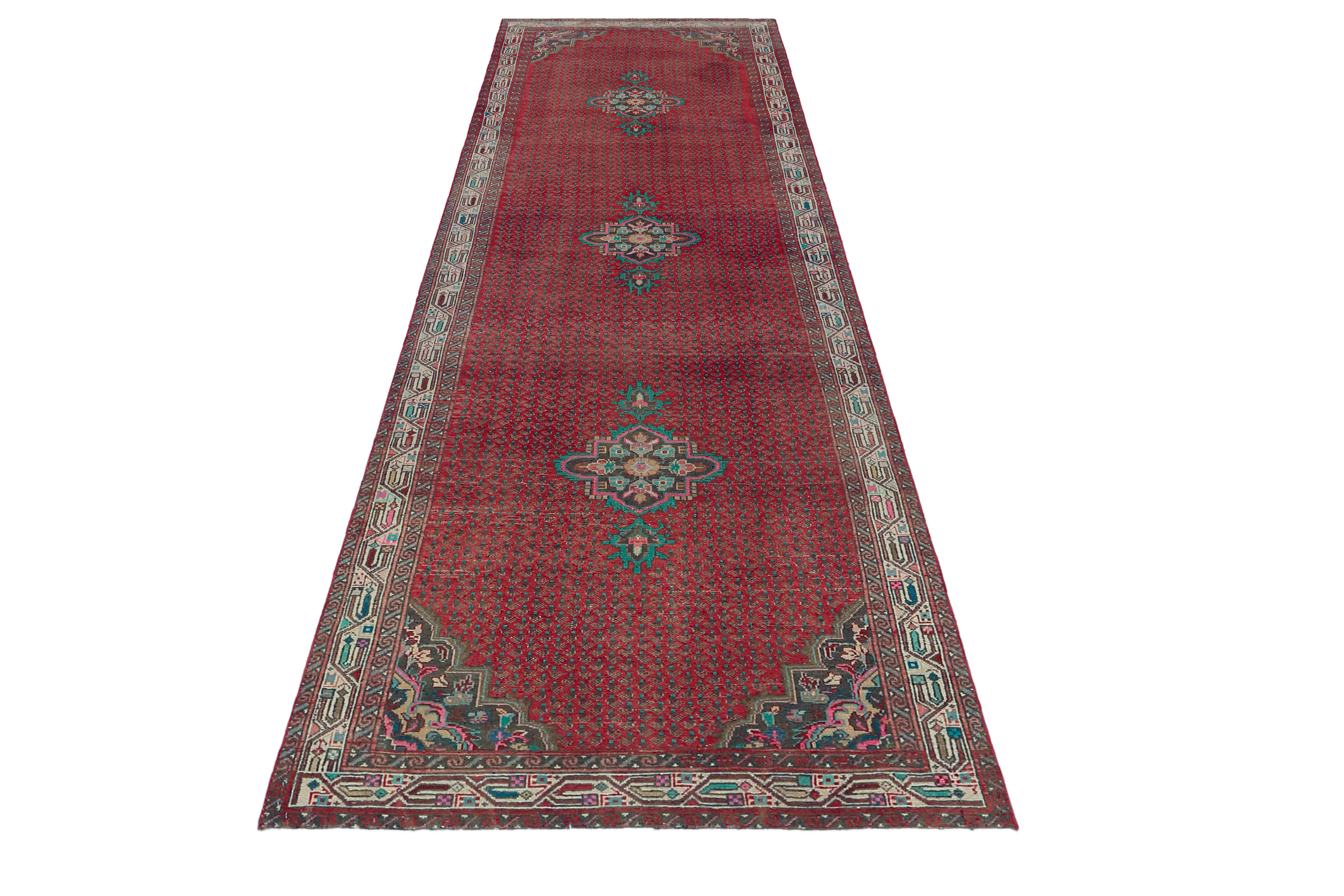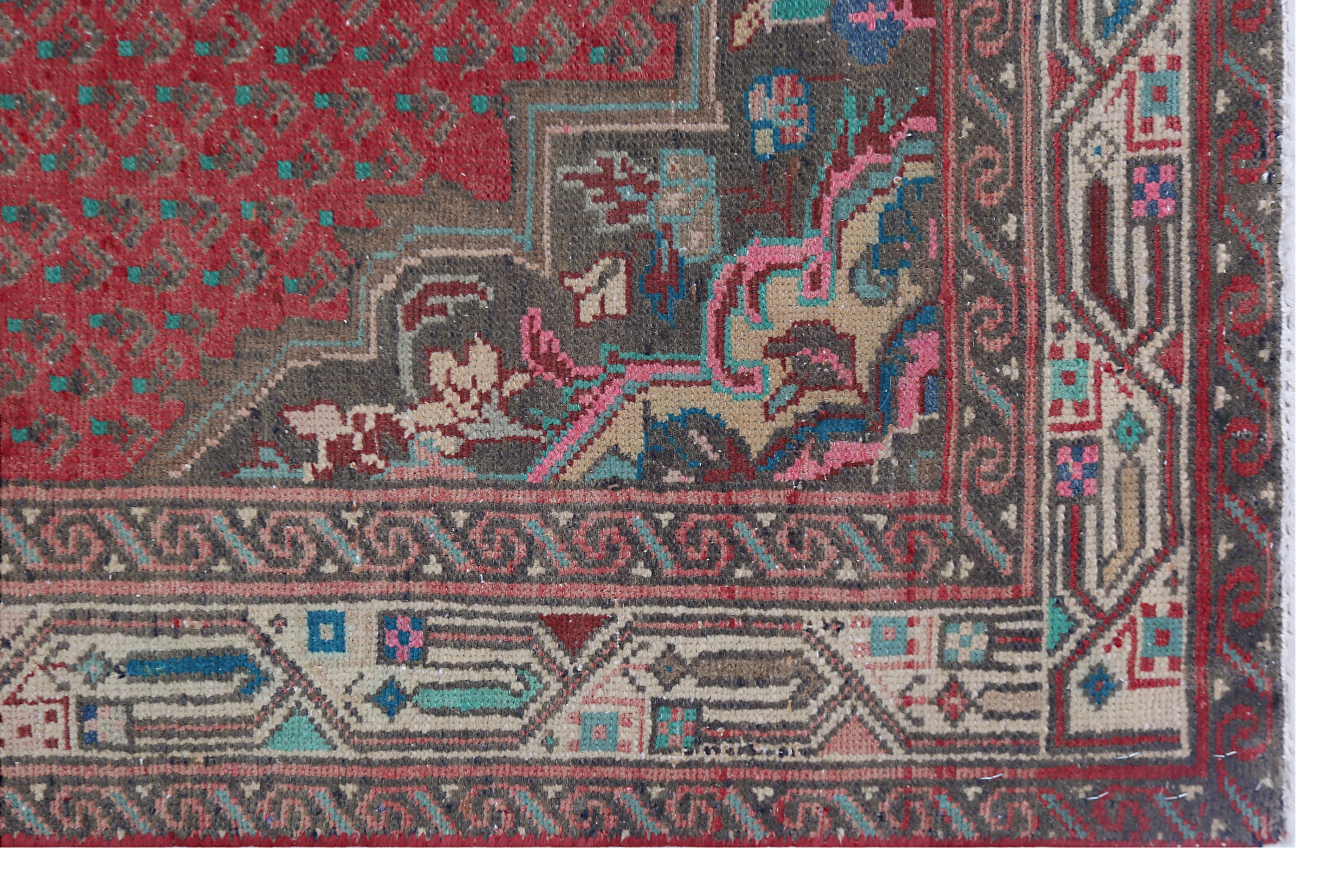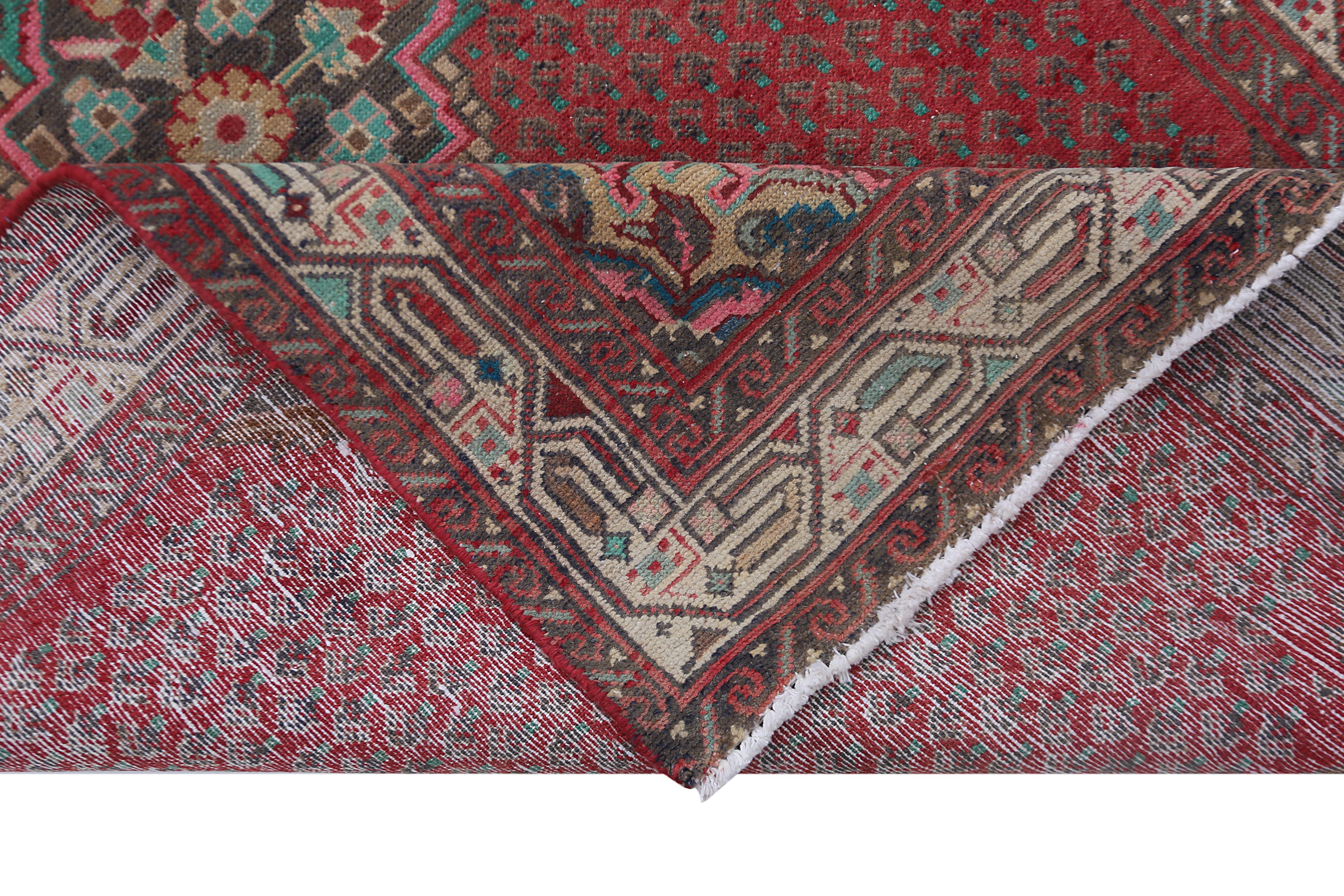 This vintage Saraband rug showcases the classic craftsmanship of Iran, with its intricate boteh (paisley) motifs repeating across the field. The vibrant red or deep navy background is framed by a finely detailed border, highlighting the precision and skill of its hand-knotted construction.