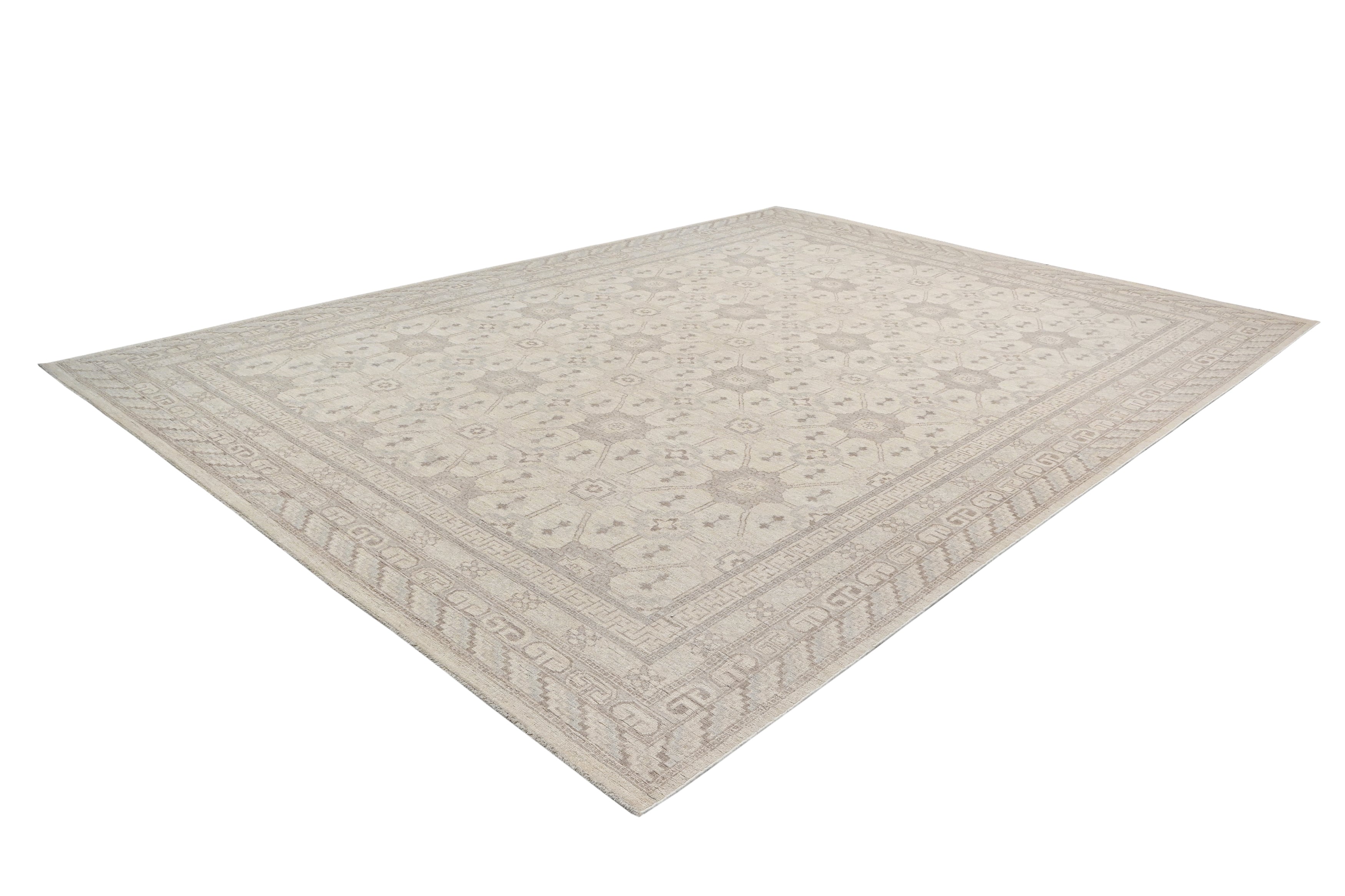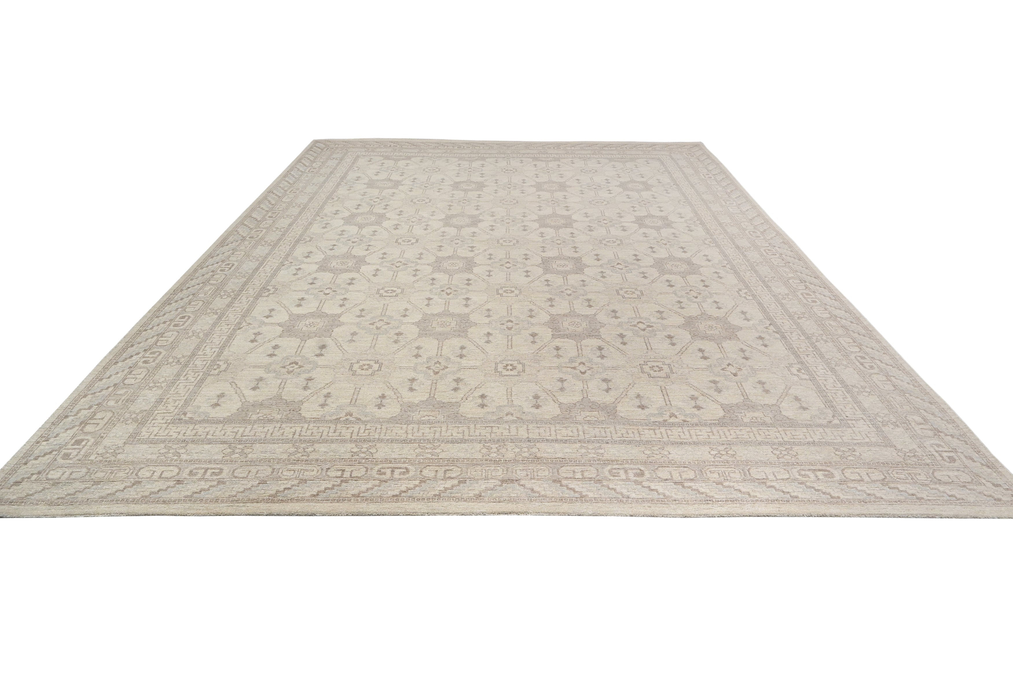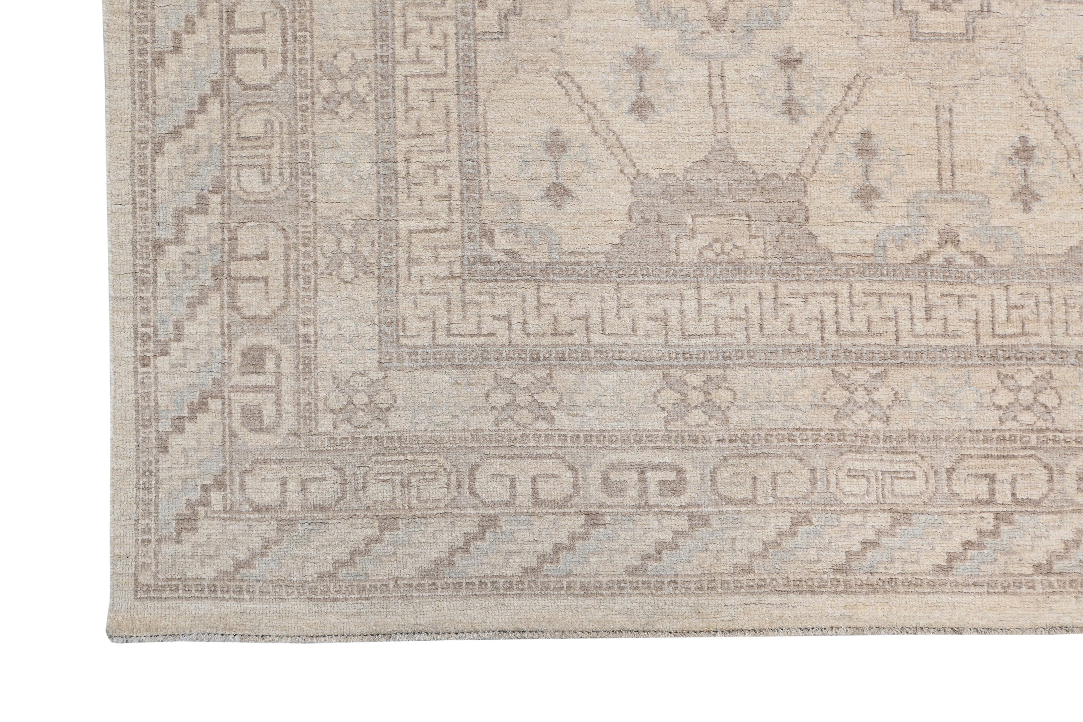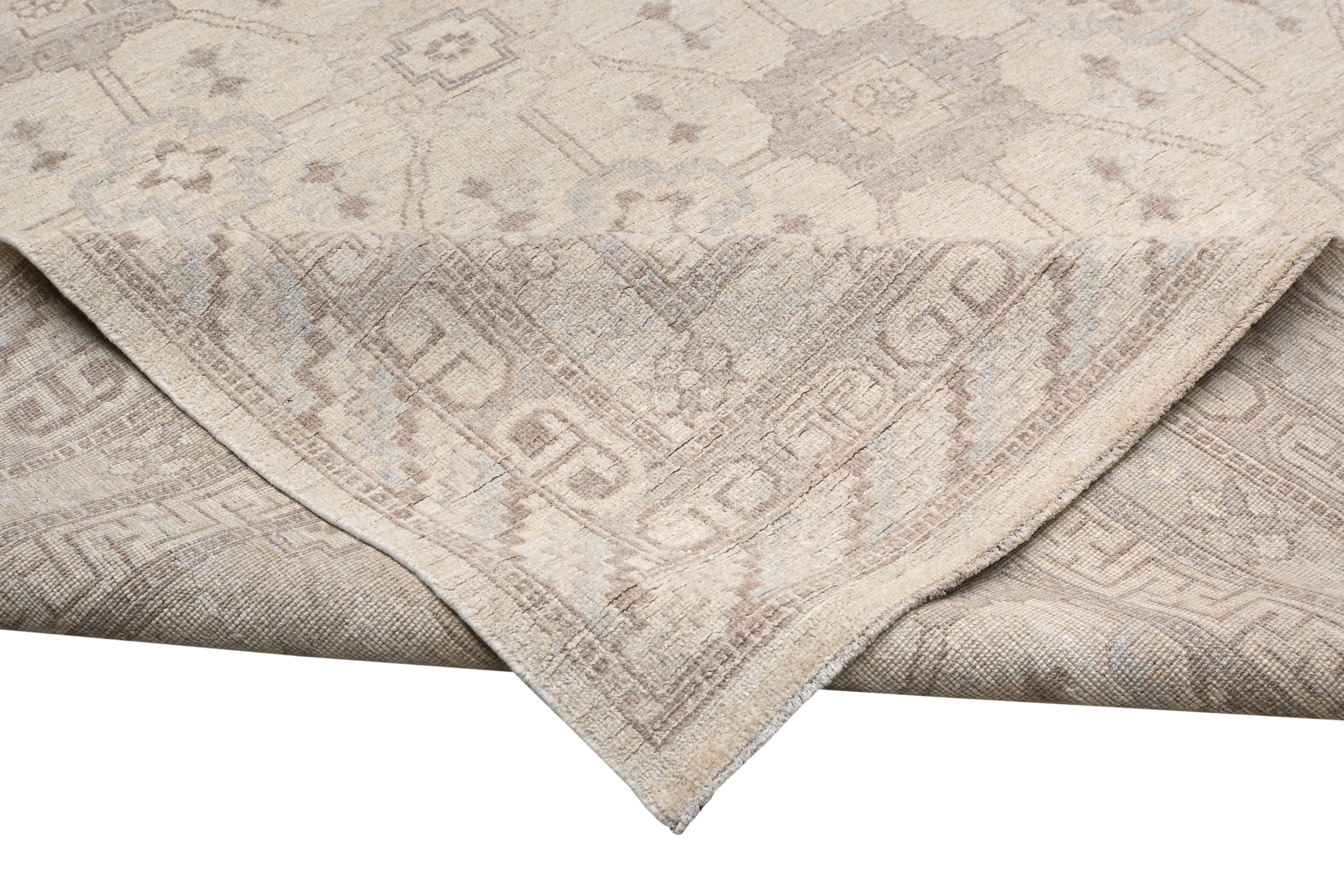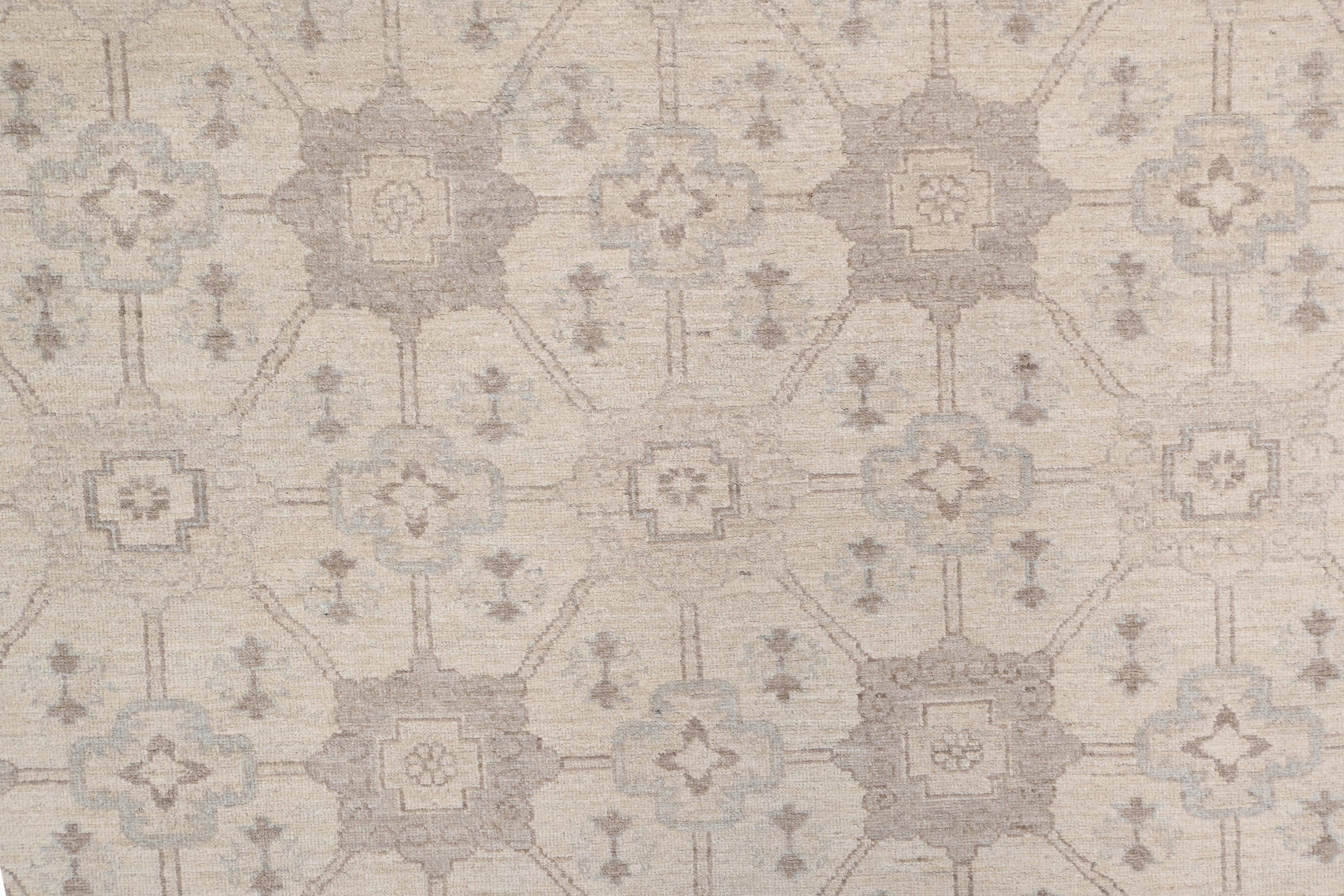 This exquisite handmade Oushak rug captures the timeless elegance of traditional handwoven designs while adding a modern twist with its contemporary colour palette. Featuring a soft pattern, this transitional piece effortlessly blends antique charm with a fresh, modern aesthetic, making it a versatile choice for any décor style.