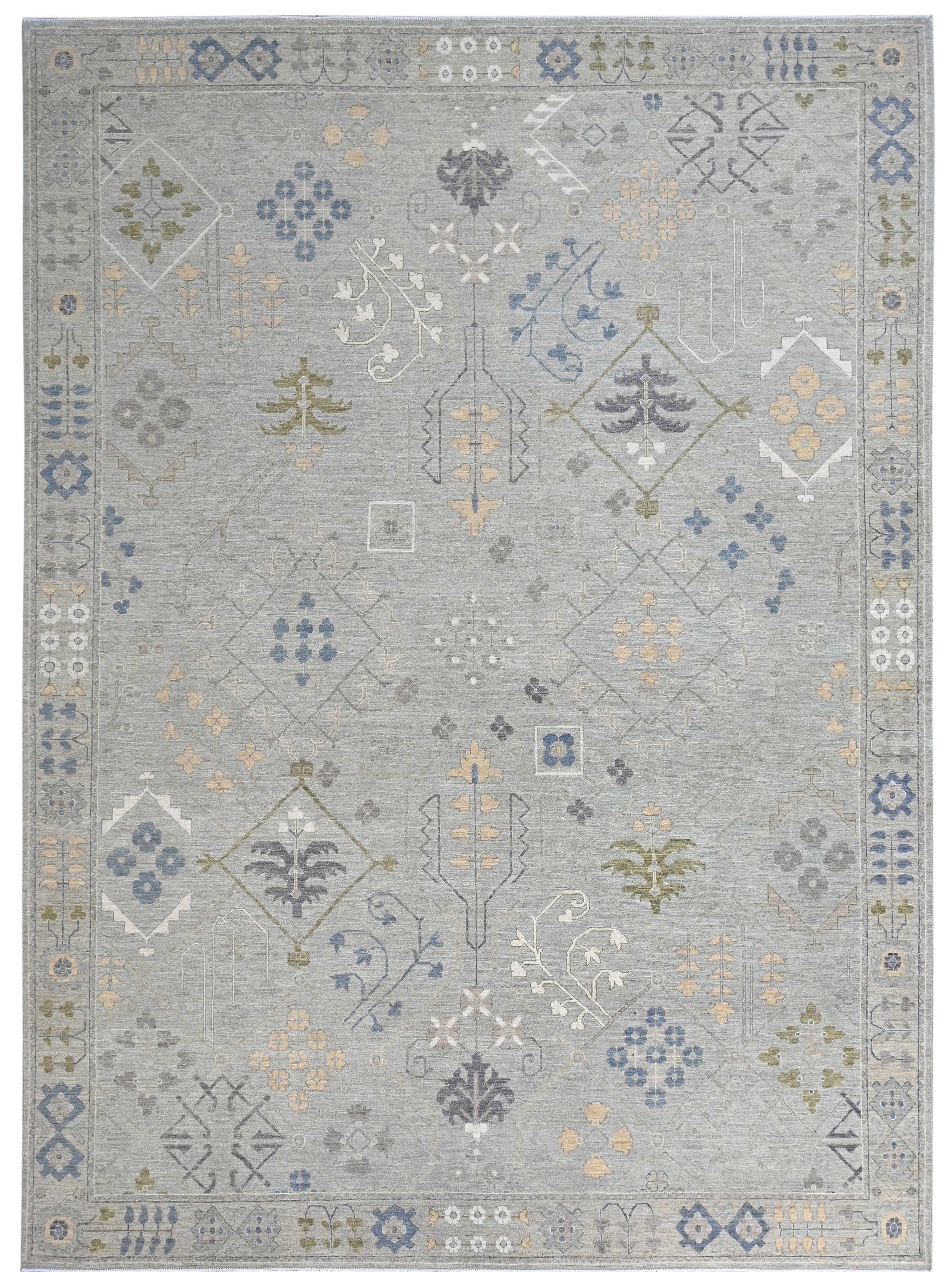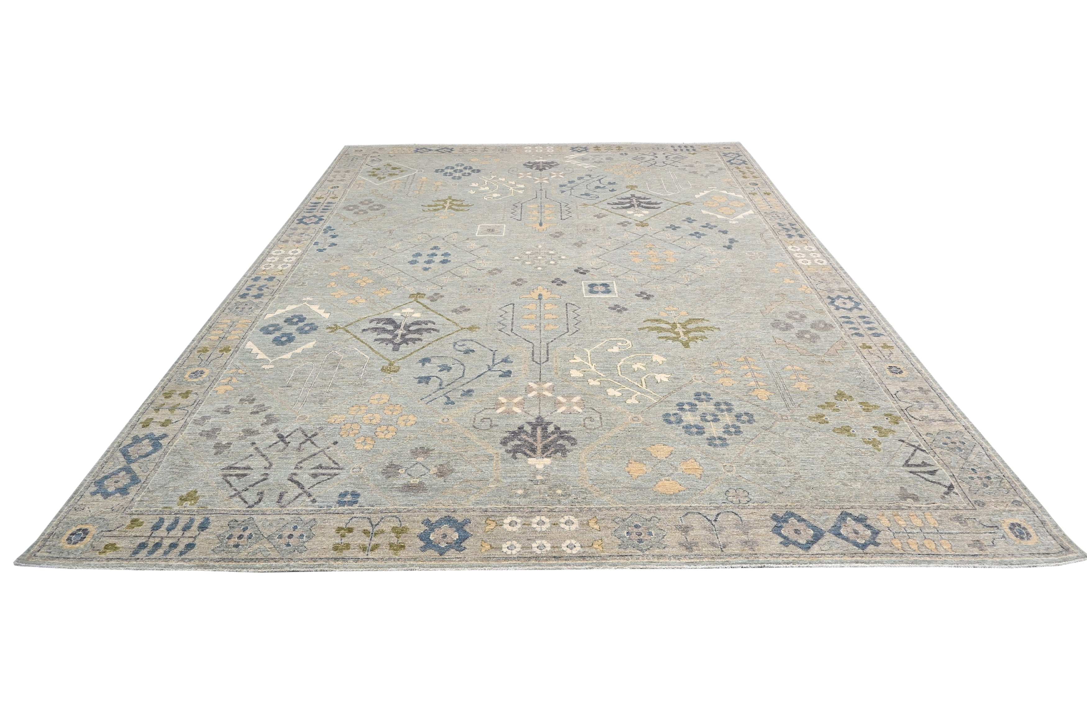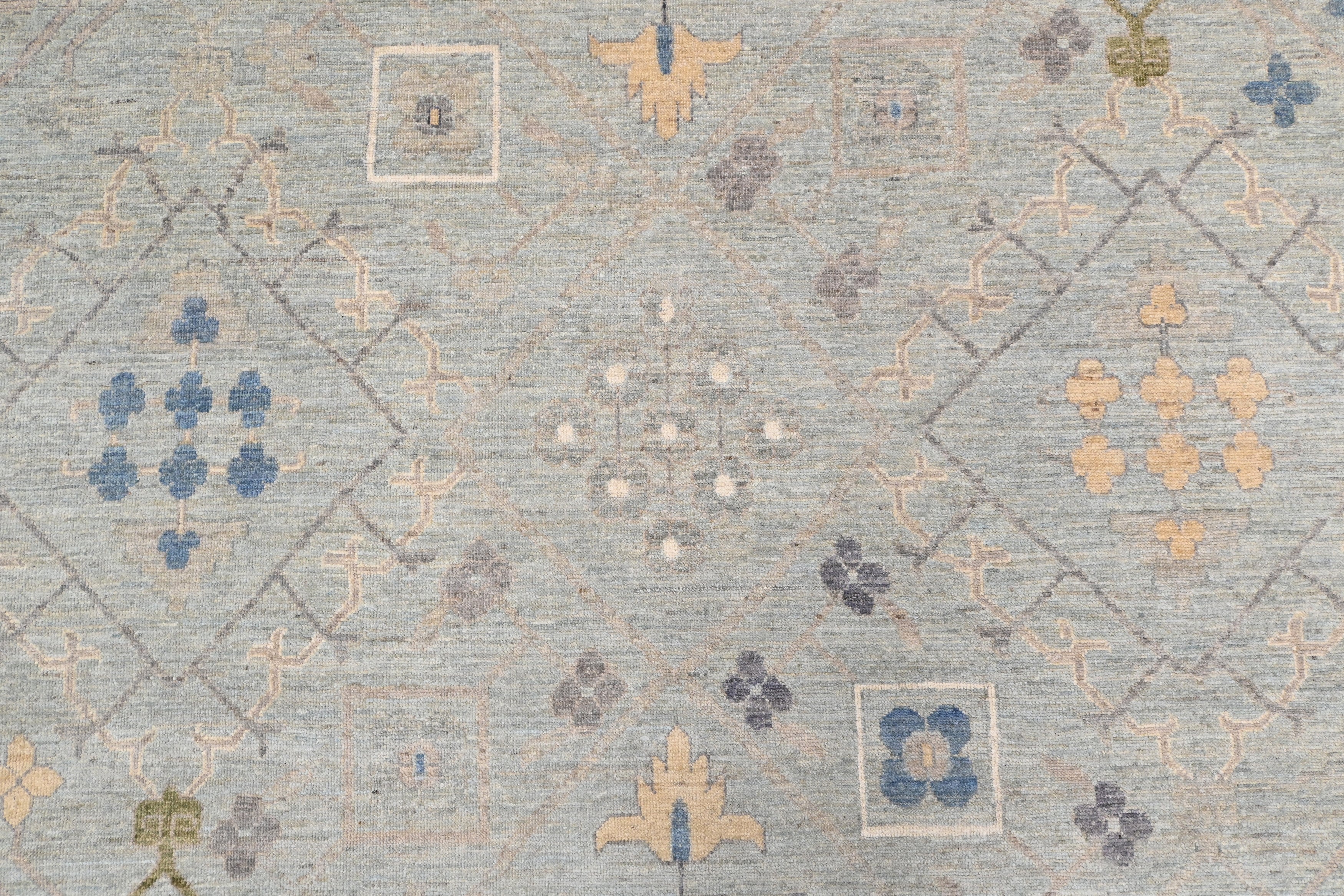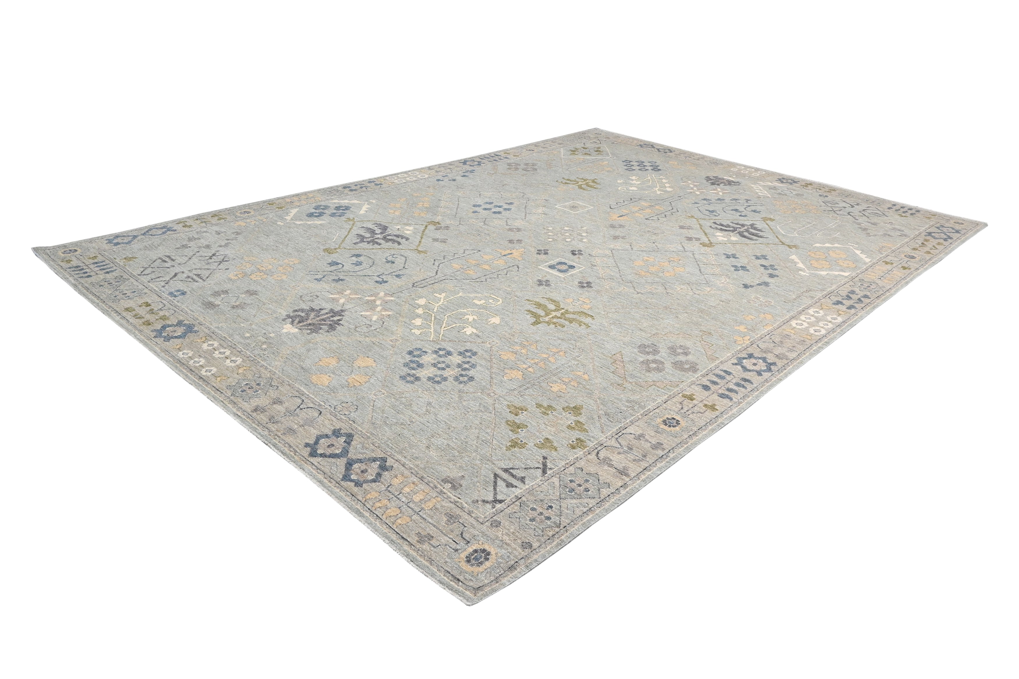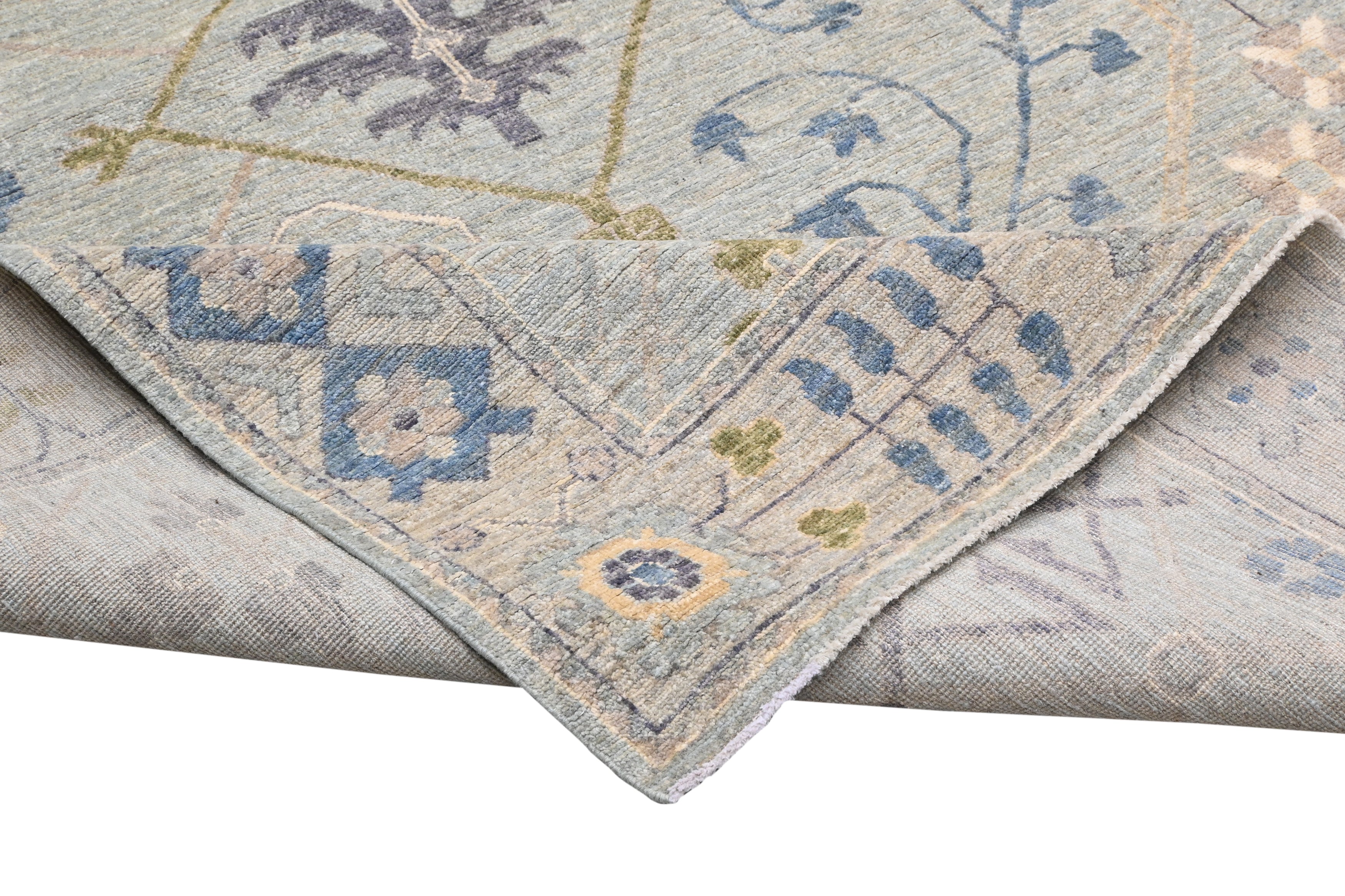 This exquisite handmade Oushak rug captures the timeless elegance of traditional handwoven designs while adding a modern twist with its contemporary colour palette. Featuring a soft pattern, this transitional piece effortlessly blends antique charm with a fresh, modern aesthetic, making it a versatile choice for any décor style.
