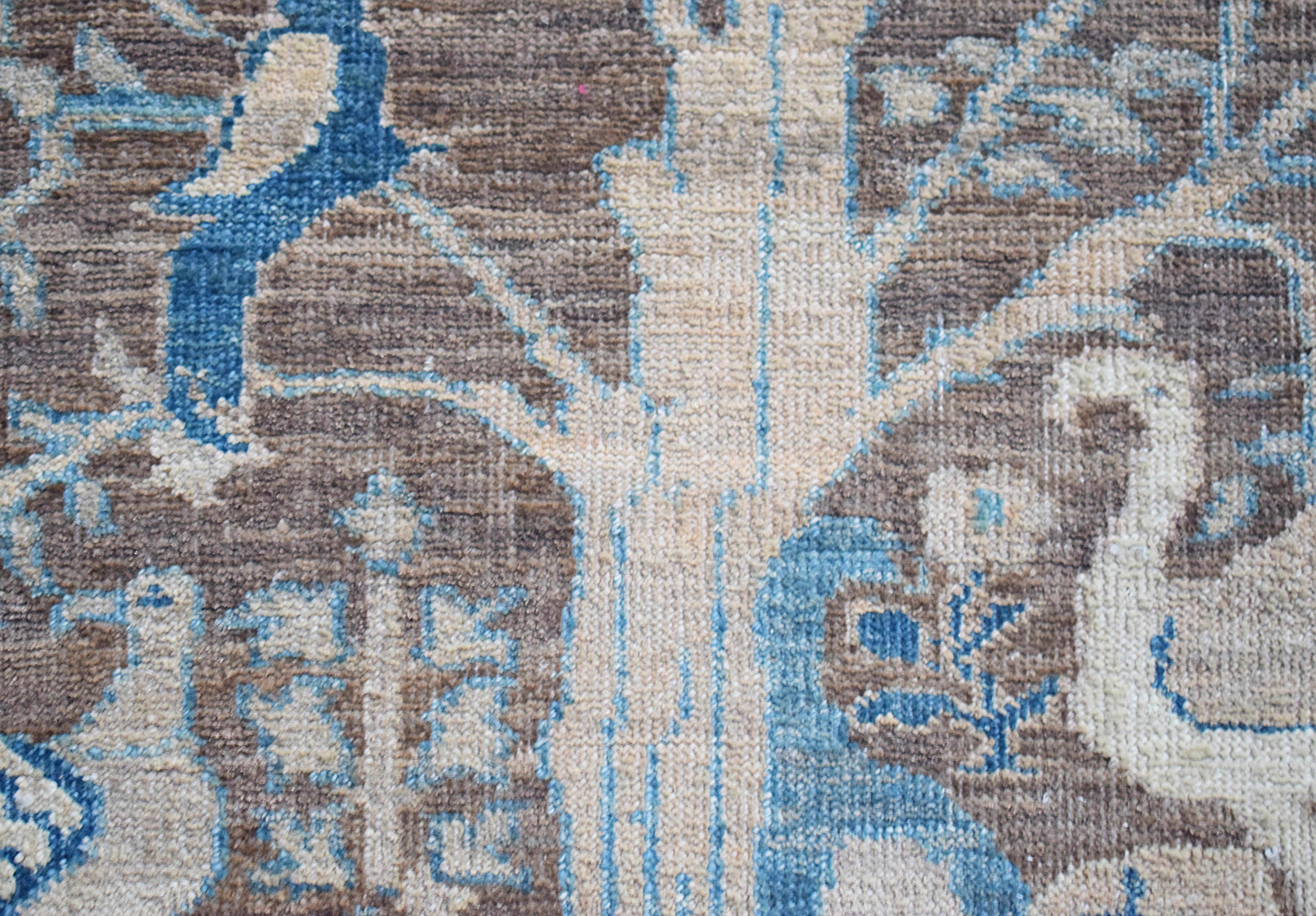 A Chobi rug is a beautifully crafted piece, known for its soft, earthy tones and refined patterns. Handwoven by skilled artisans, these rugs use high-quality, hand-spun wool, resulting in a warm, organic palette of beiges, greens, and blues. The designs, often featuring floral motifs, scrolling vines, and medallions, strike a perfect balance between elegance and simplicity. Chobi rugs are prized for their durability and fine craftsmanship.