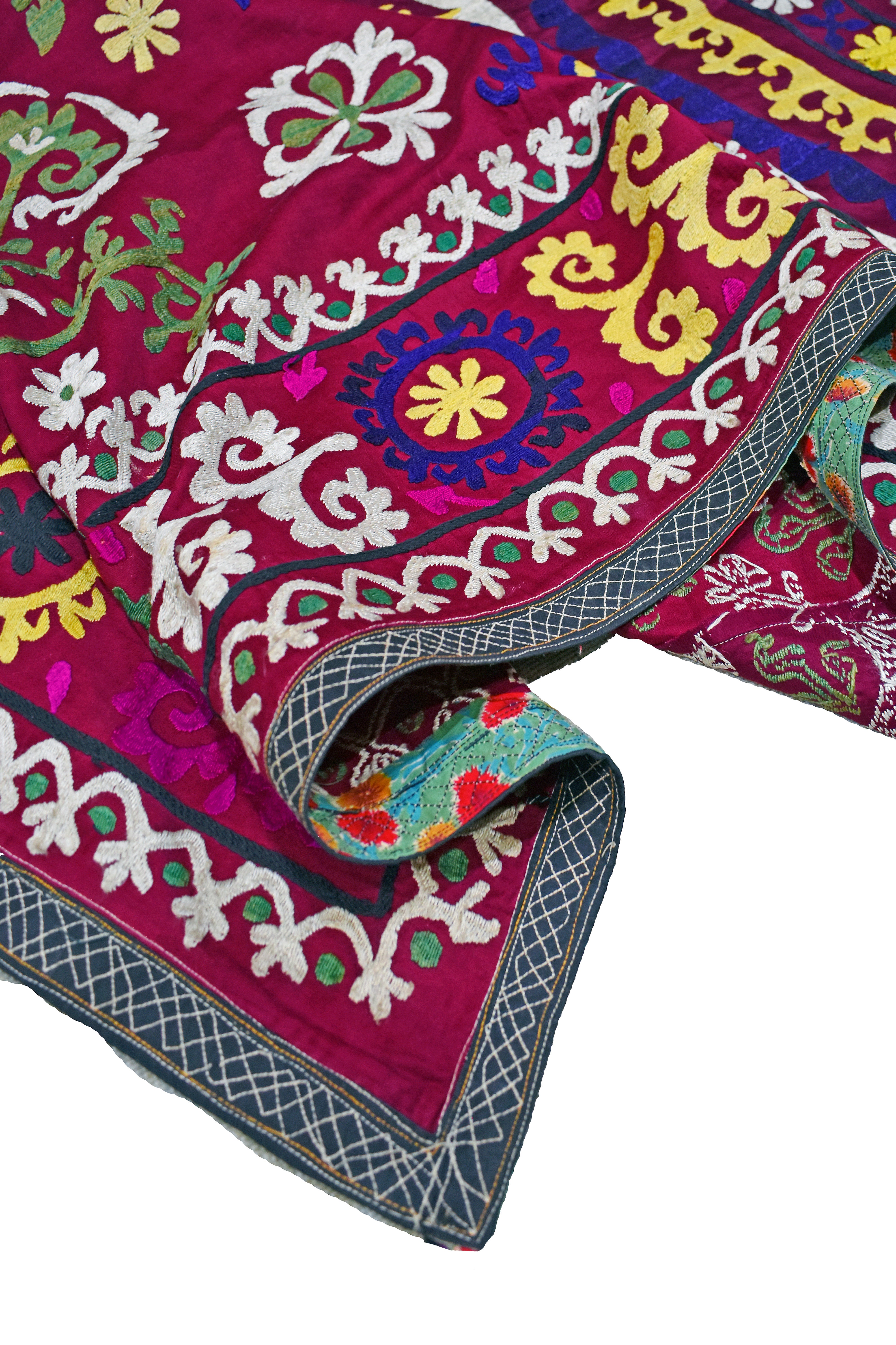 Whether draped across a bed, hung on a wall, styled over a table or laid across a sofa, this Suzani brings a sense of history, artistry, and Central Asian storytelling into your home.