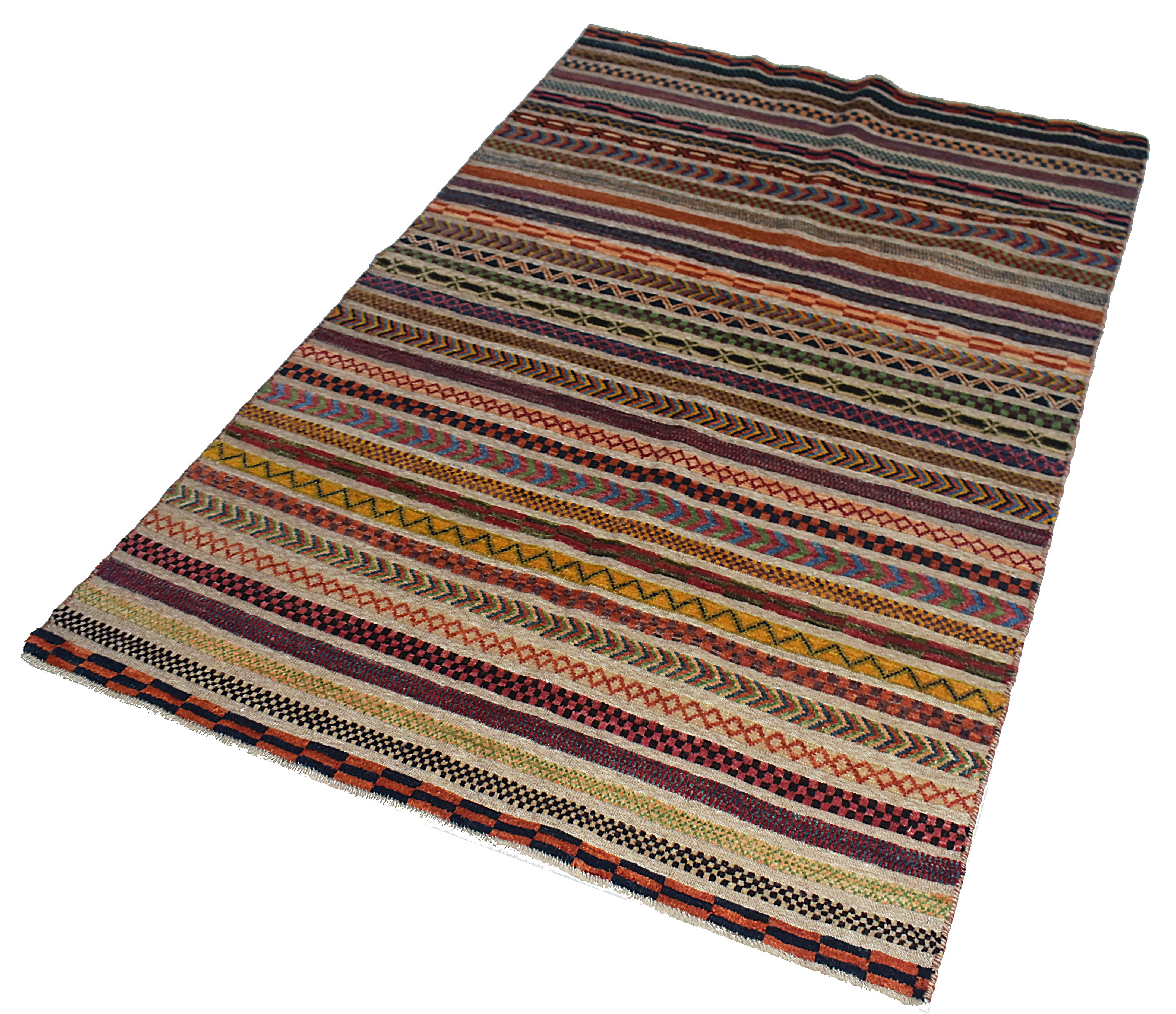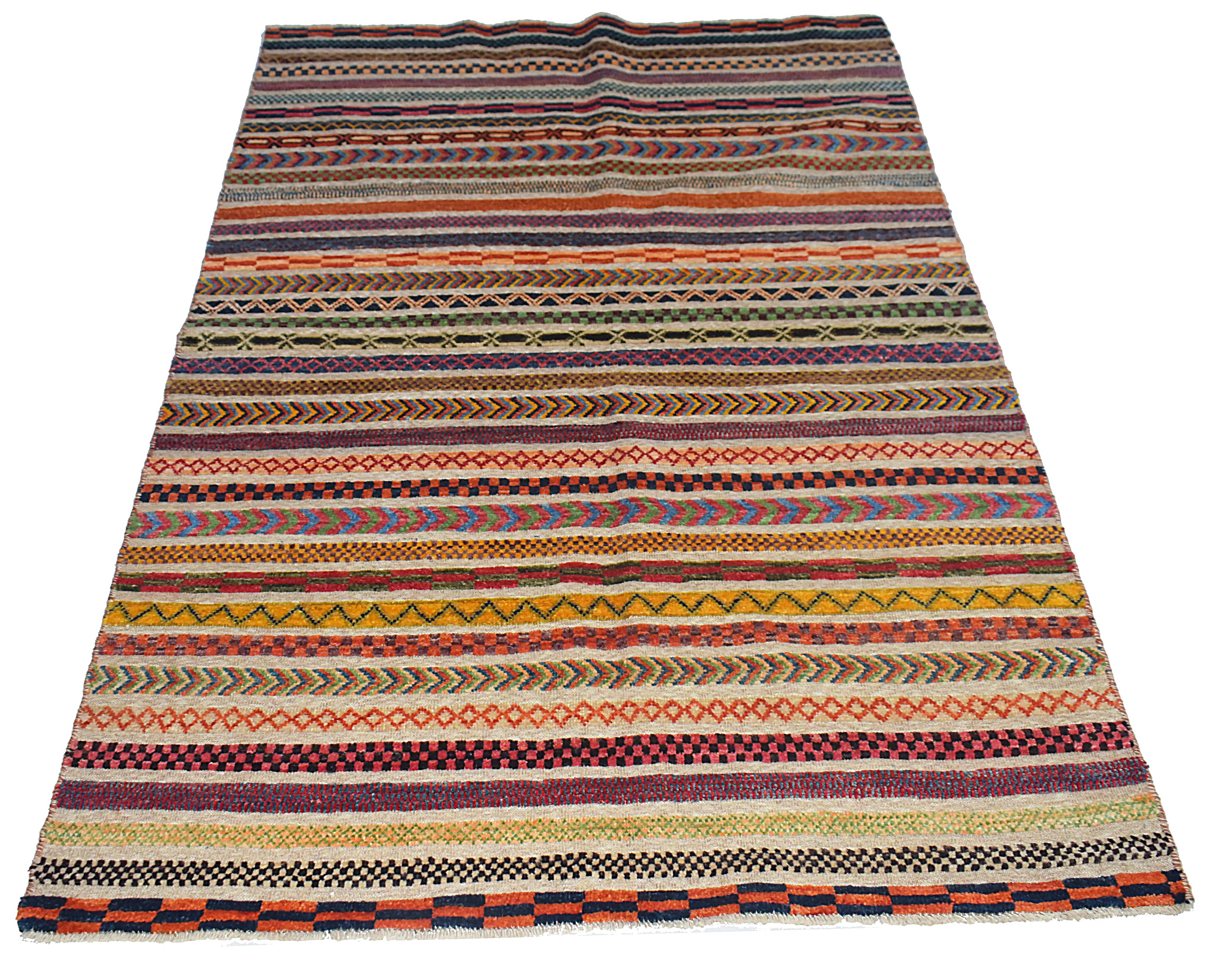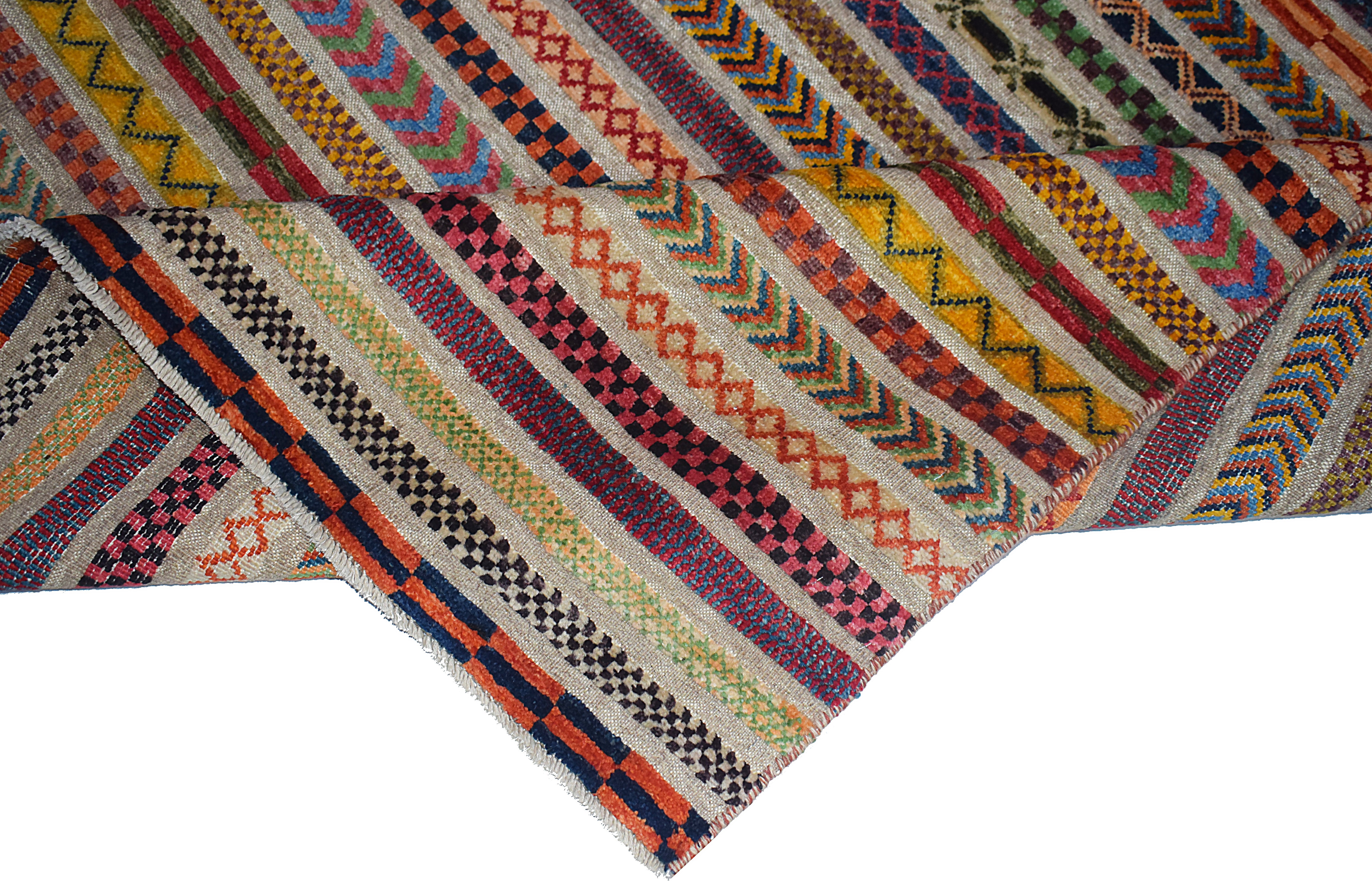 A Barjasta rug is a unique Afghan creation that combines the plush texture of traditional rugs with the flatweave style of kilims, resulting in a striking half-rug, half-kilim design. Known for its intricate tribal patterns, geometric shapes, and vibrant earthy tones, each Barjasta rug is handwoven using high-quality wool making it exceptionally durable and visually captivating. Perfect for both contemporary and traditional interiors, these rugs bring warmth, cultural authenticity, and a rich visual texture to any space.