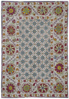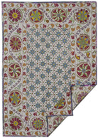 These beautiful suzanis are a cloth that holds multiple uses, such as wall hanging, bed cover, table cloth and even just as a throw. This suzani has a cotton fabric base with silk embroidery. Popular motifs within Suzanis are sun and moon disks, flowers, leaves and fruits.