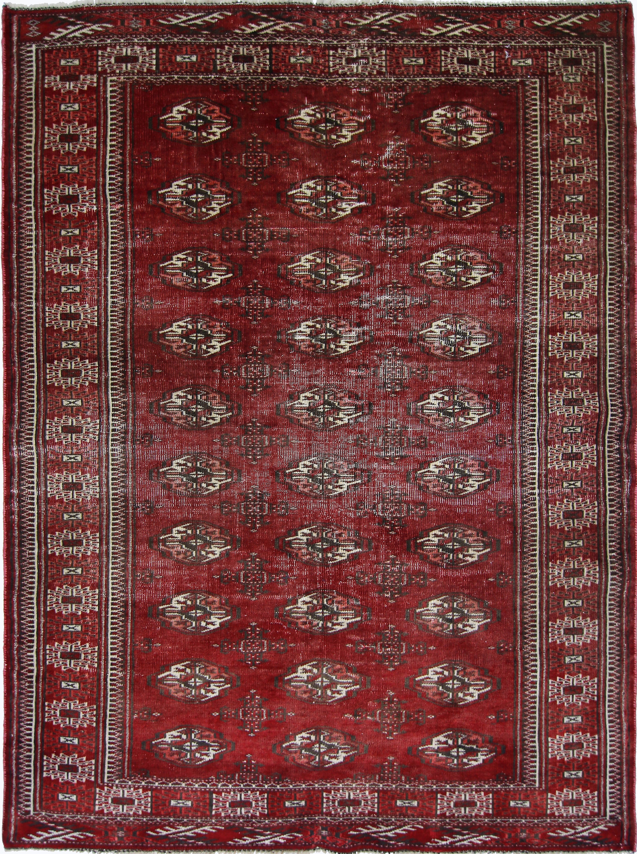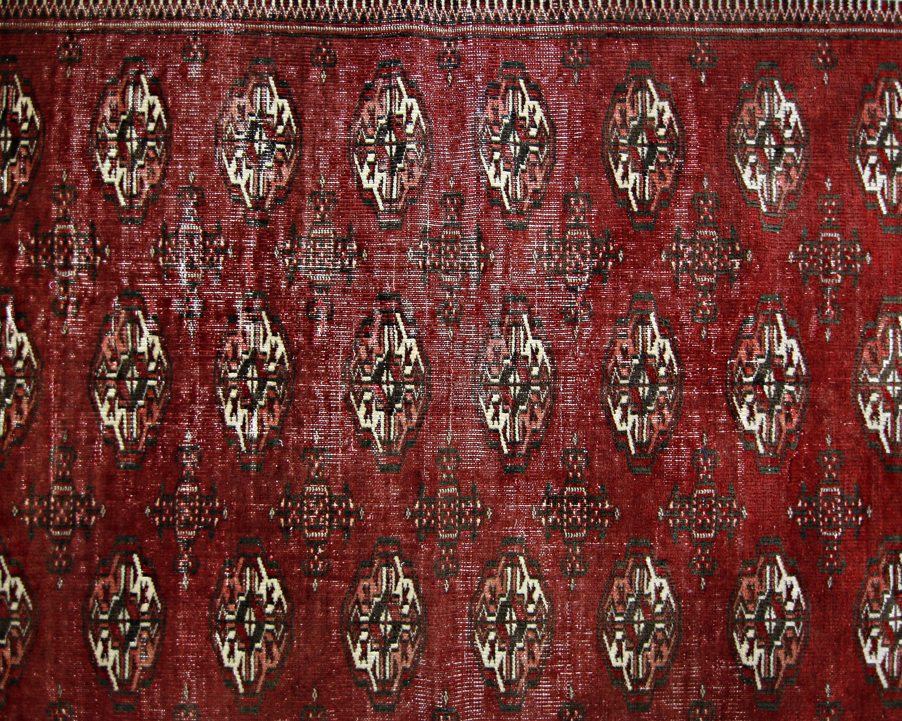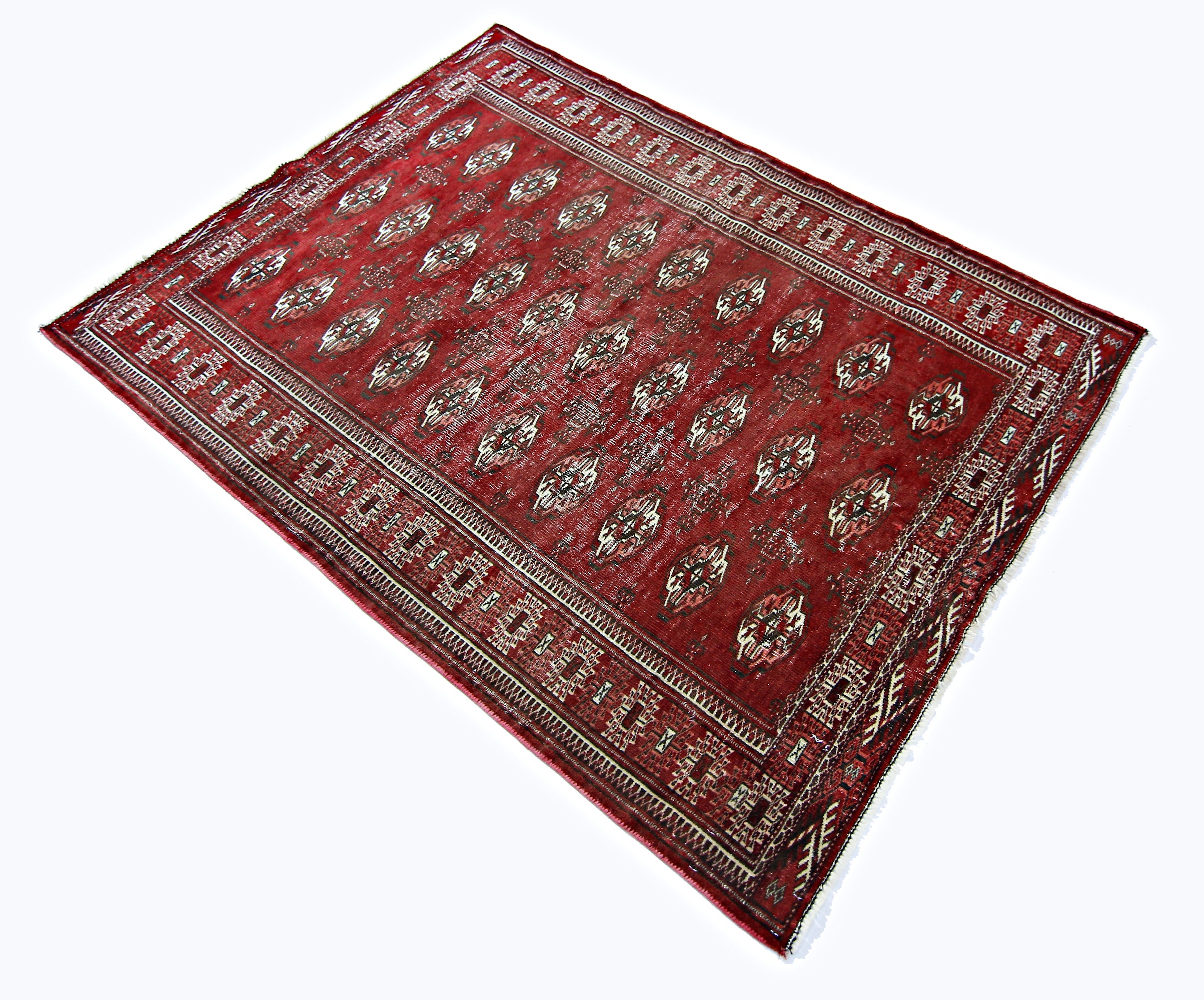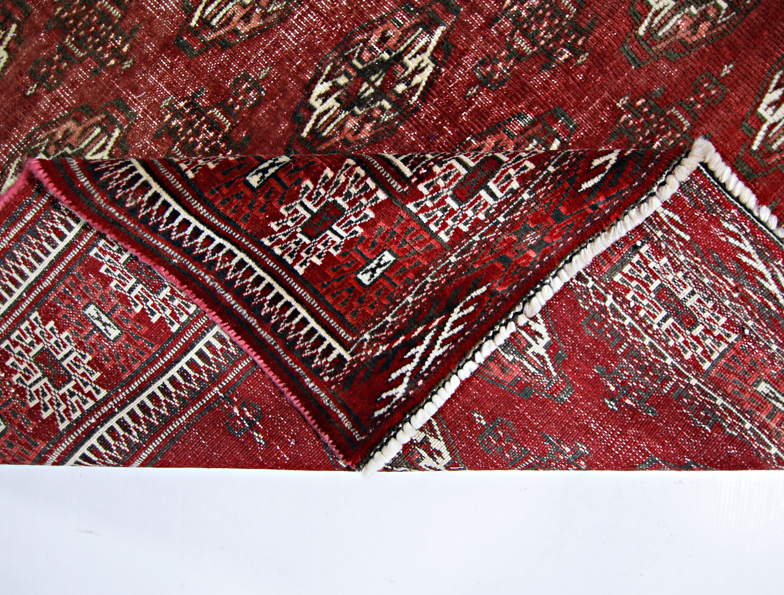 Style: Turkmen rugs are produced by the Turkmen tribes, the leading ethnic group in Turkmenistan and are also found in Afghanistan. A few centuries back, all Turkmen's rugs were made by nomadic tribes, almost entirely with locally obtained materials, wool from the herds and vegetable and other natural dyes from the land. They used geometrical that varied from tribe to tribe. Irregularities in the shape, pattern, design and colours were and sometimes still are conditions notable little quirks that make the rug unique to its own.