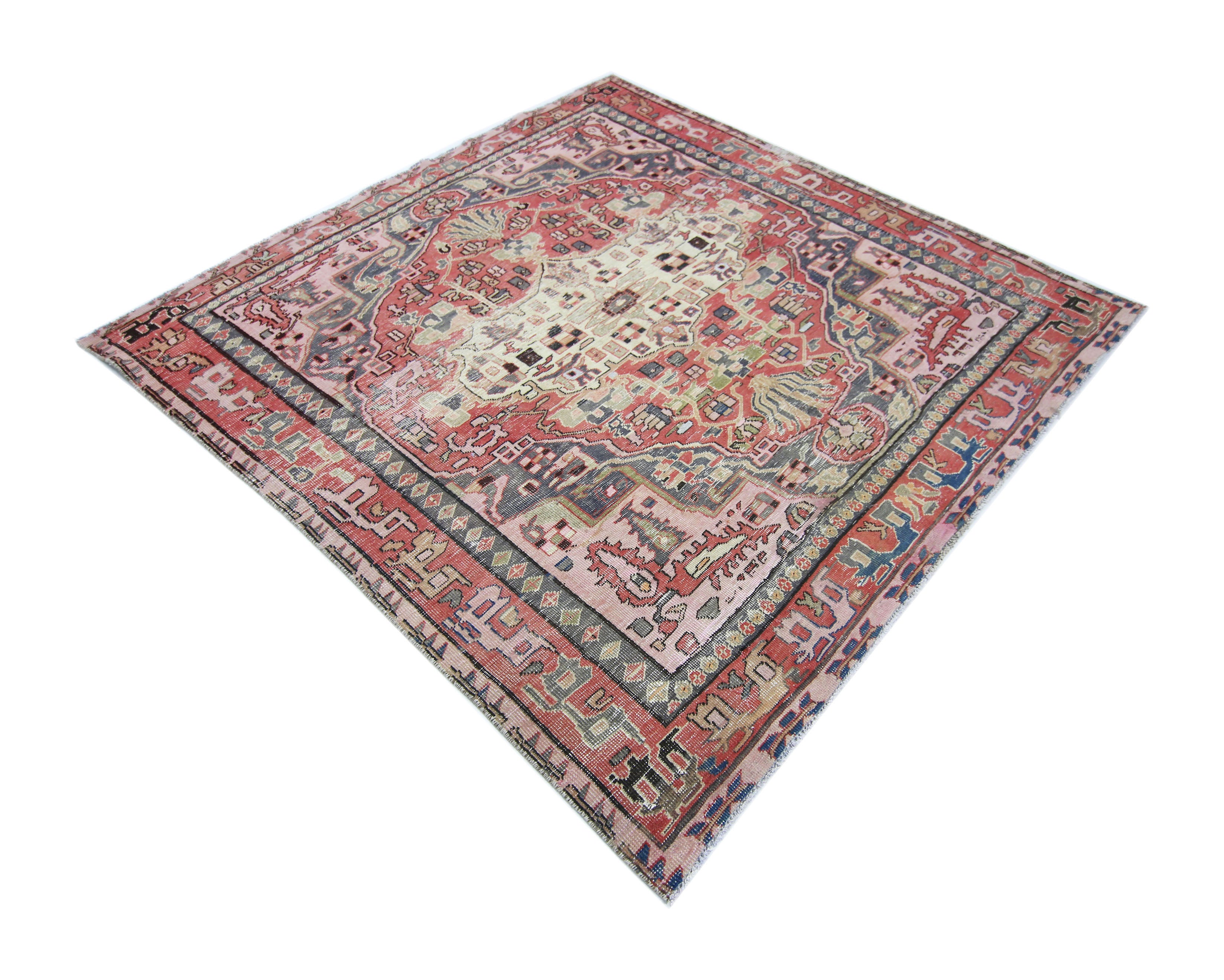 Vivid and beautiful vintage Persian Bakhtiar Rug, handmade in Iran.