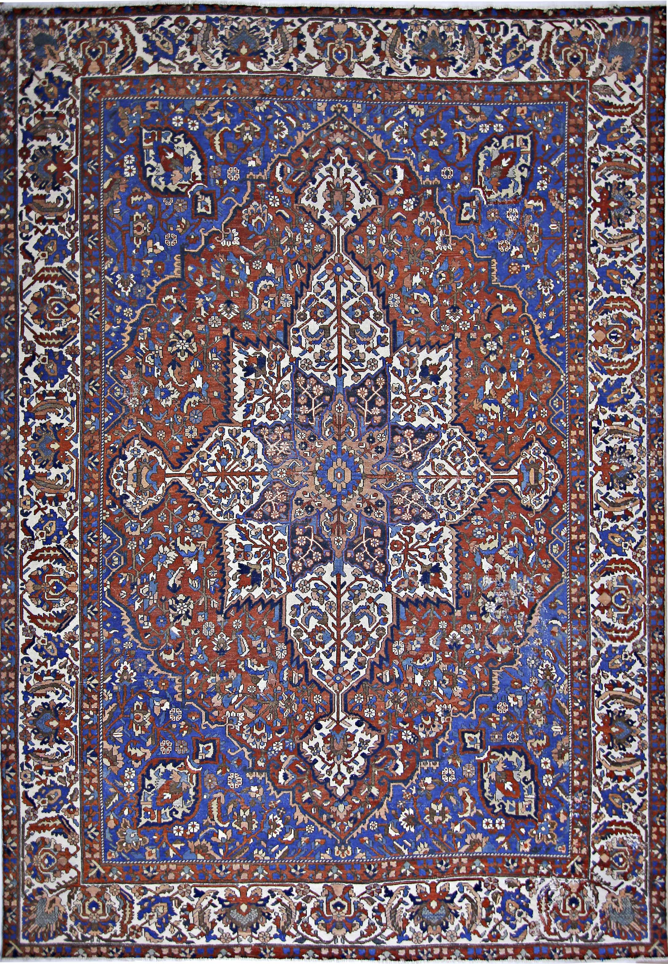 Vivid and beautiful vintage Persian Bakhtiar Rug, handmade in Iran.