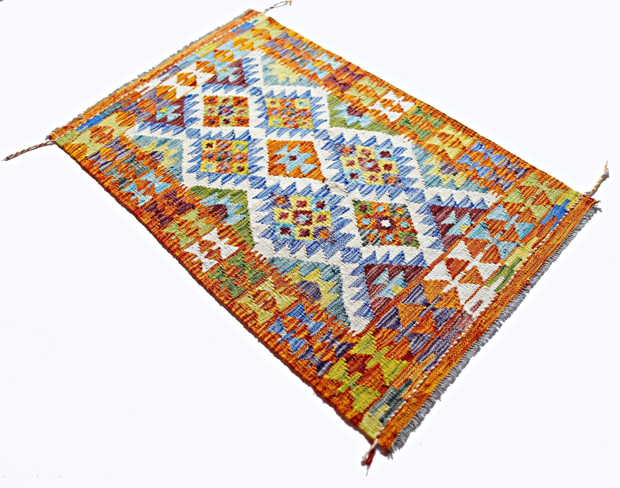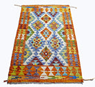 Style: Kilims are woven with a different technique from rugs and are without a pile which allows you to use both sides, this versatility is functional and practical making you get the most out of your handmade item. Kilims are known for it's geometrical patterns, rich colours and flatware texture. This kilim has been handwoven in Maimana, Northern Afghanistan from 100% wool. Handmade to last, this kilim won't disappoint you!