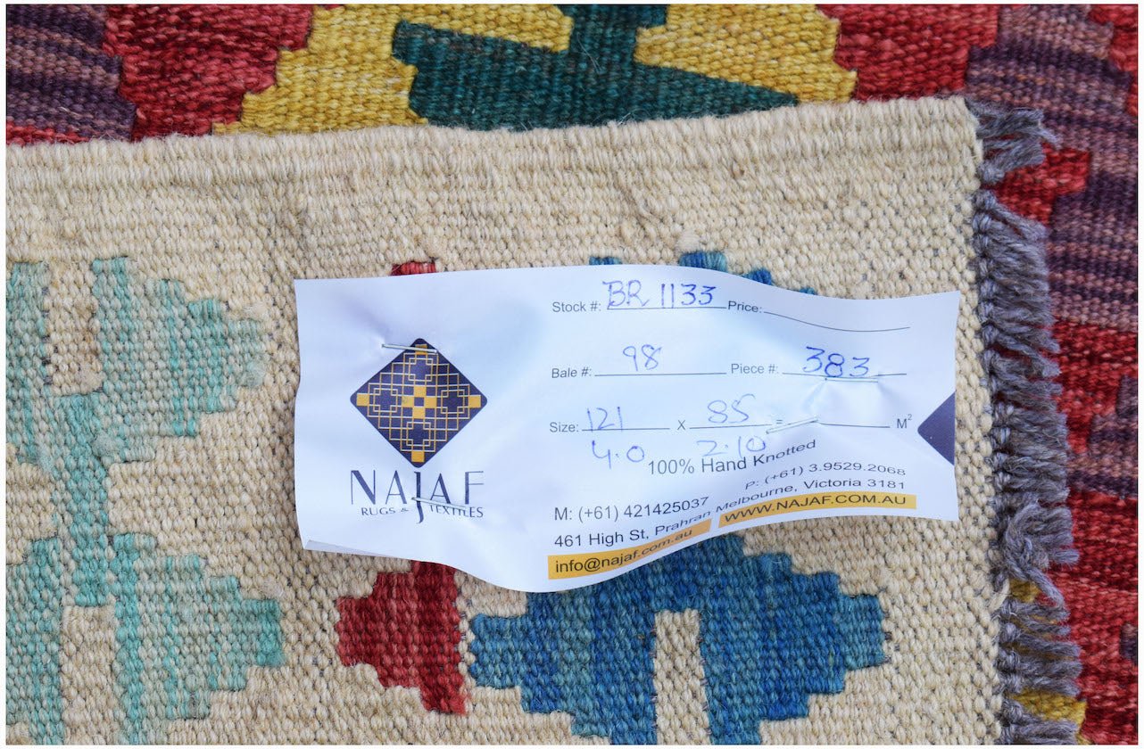 Style: Kilims are woven with a different technique from rugs and are without a pile which allows you to use both sides, this versatility is functional and practical making you get the most out of your handmade item. Kilims are known for it's geometrical patterns, rich colours and flatware texture. This kilim has been handwoven in Maimana, Northern Afghanistan from 100% wool. Handmade to last, this kilim won't disappoint you!