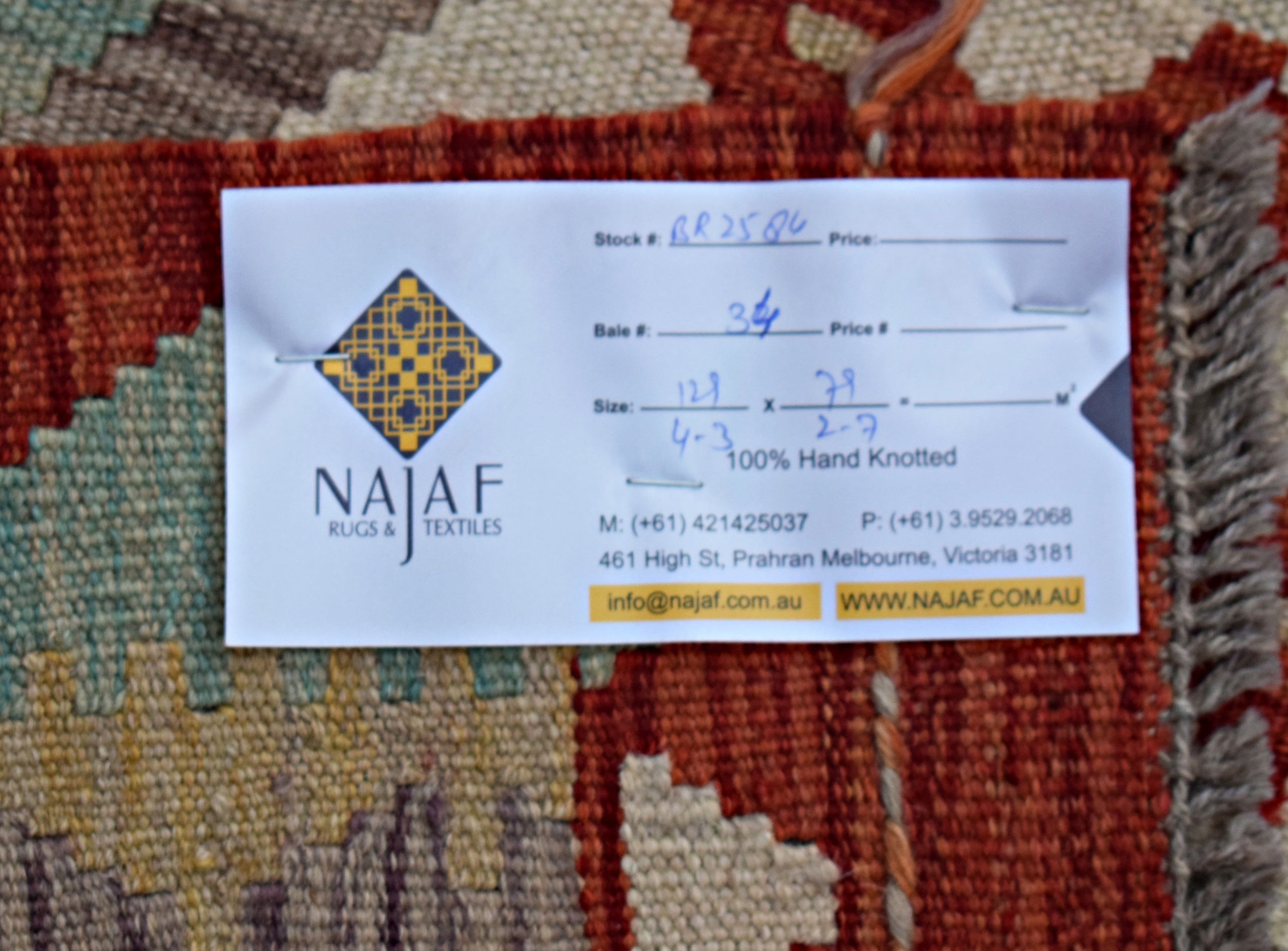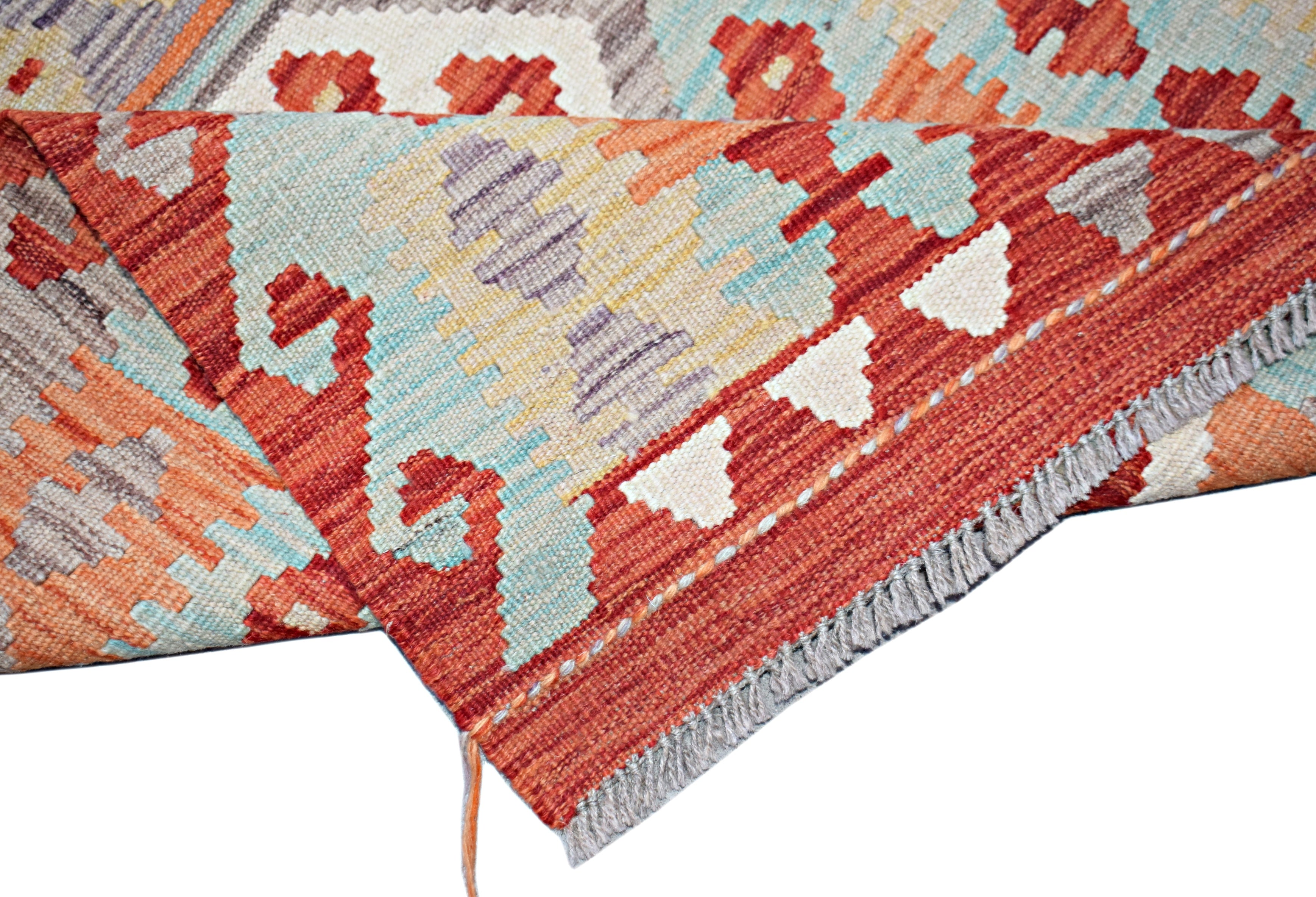Style: Kilims are woven with a different technique from rugs and are without a pile which allows you to use both sides, this versatility is functional and practical making you get the most out of your handmade item. Kilims are known for it's geometrical patterns, rich colours and flatware texture. This kilim has been handwoven in Maimana, Northern Afghanistan from 100% wool. Handmade to last, this kilim won't disappoint you!