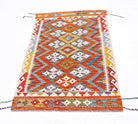 Style: Kilims are woven with a different technique from rugs and are without a pile which allows you to use both sides, this versatility is functional and practical making you get the most out of your handmade item. Kilims are known for it's geometrical patterns, rich colours and flatware texture. This kilim has been handwoven in Maimana, Northern Afghanistan from 100% wool. Handmade to last, this kilim won't disappoint you!