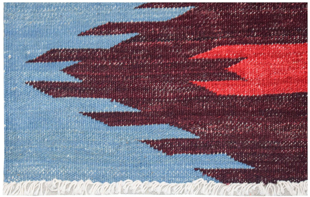 Style: Kilims are woven with a different technique from rugs and are without a pile which allows you to use both sides, this versatility is functional and practical making you get the most out of your handmade item. Kilims are known for it's geometrical patterns, rich colours and flatware texture. This kilim has been handwoven in Maimana, Northern Afghanistan from 100% wool. Handmade to last, this kilim won't disappoint you!