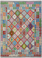 Style: Kilims are woven with a different technique from rugs and are without a pile which allows you to use both sides, this versatility is functional and practical making you get the most out of your handmade item. Kilims are known for it's geometrical patterns, rich colours and flatware texture. This kilim has been handwoven in Maimana, Northern Afghanistan from 100% wool. Handmade to last, this kilim won't disappoint you!