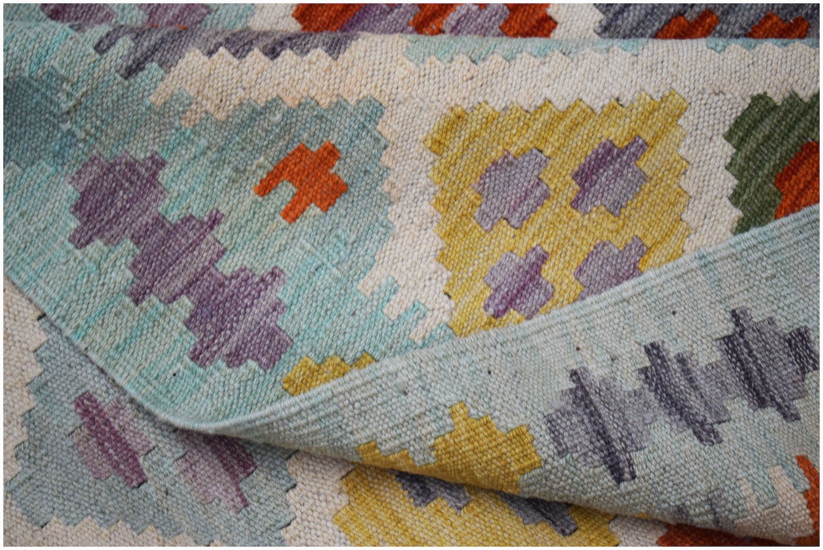 Style: Kilims are woven with a different technique from rugs and are without a pile which allows you to use both sides, this versatility is functional and practical making you get the most out of your handmade item. Kilims are known for it's geometrical patterns, rich colours and flatware texture. This kilim has been handwoven in Maimana, Northern Afghanistan from 100% wool. Handmade to last, this kilim won't disappoint you!
