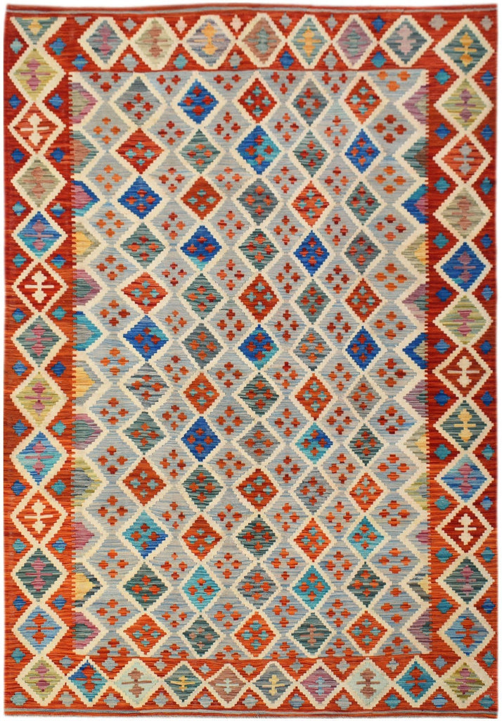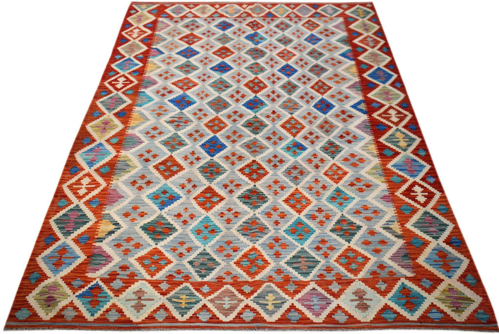 Style: Kilims are woven with a different technique from rugs and are without a pile which allows you to use both sides, this versatility is functional and practical making you get the most out of your handmade item. Kilims are known for it's geometrical patterns, rich colours and flatware texture. This kilim has been handwoven in Maimana, Northern Afghanistan from 100% wool. Handmade to last, this kilim won't disappoint you.