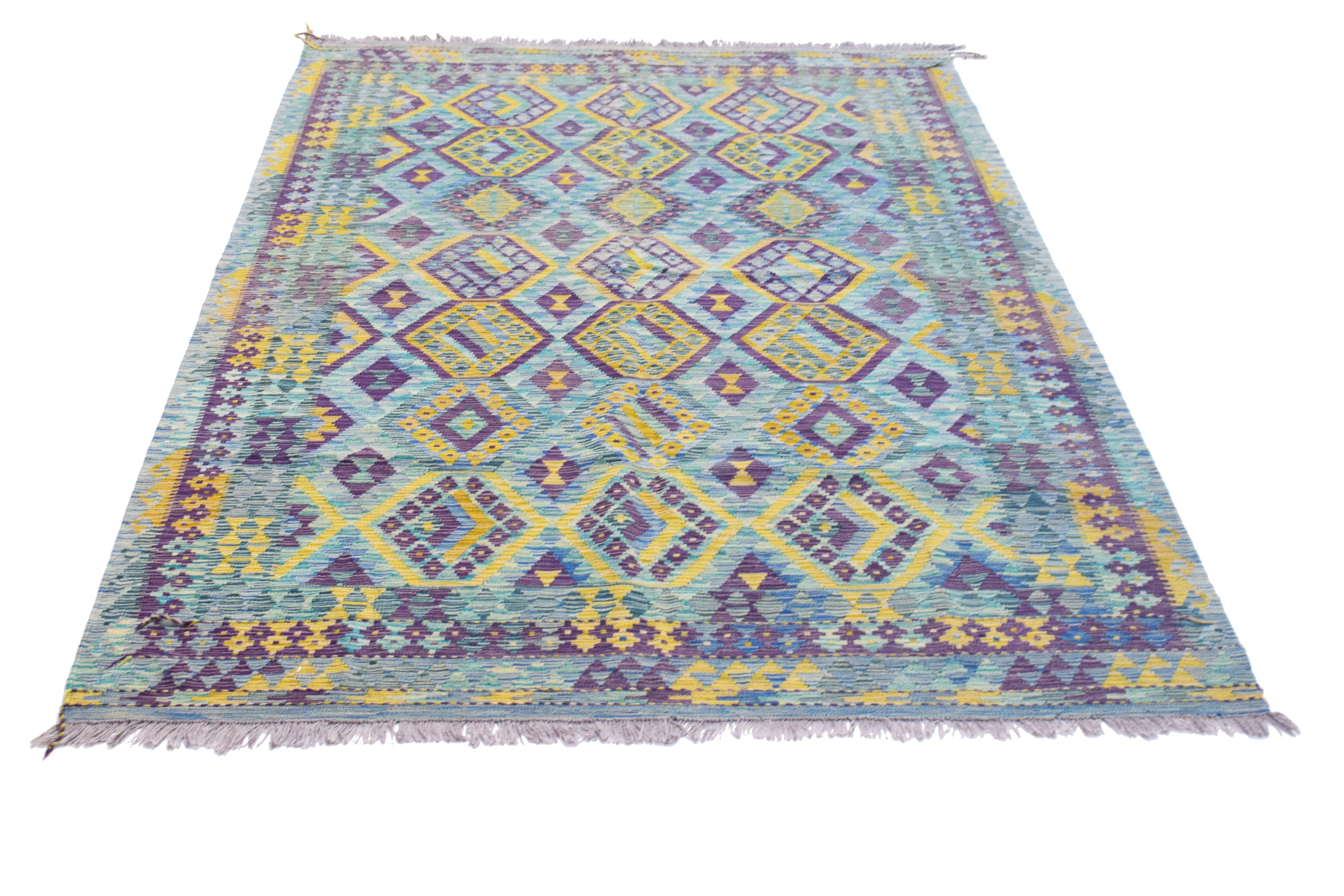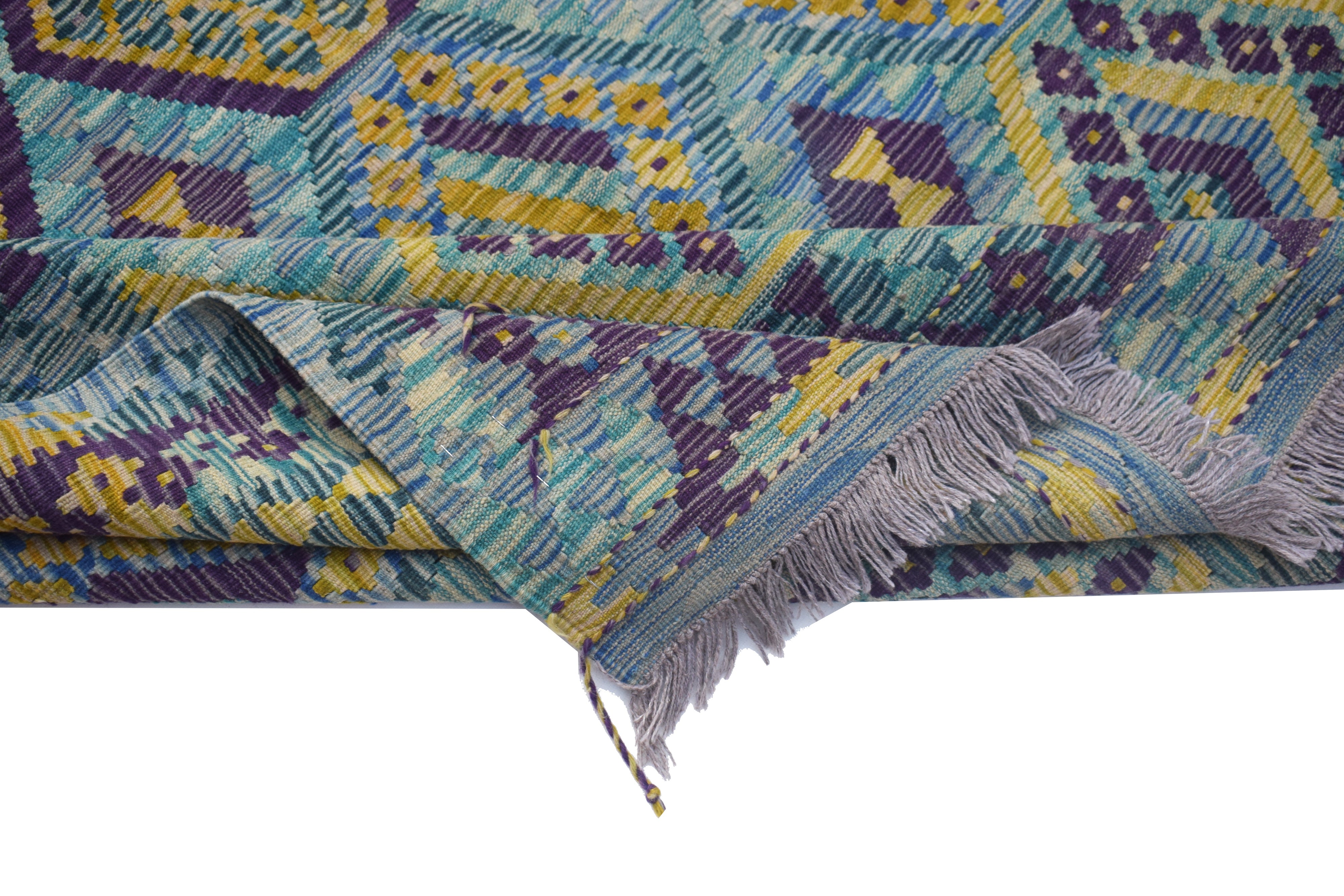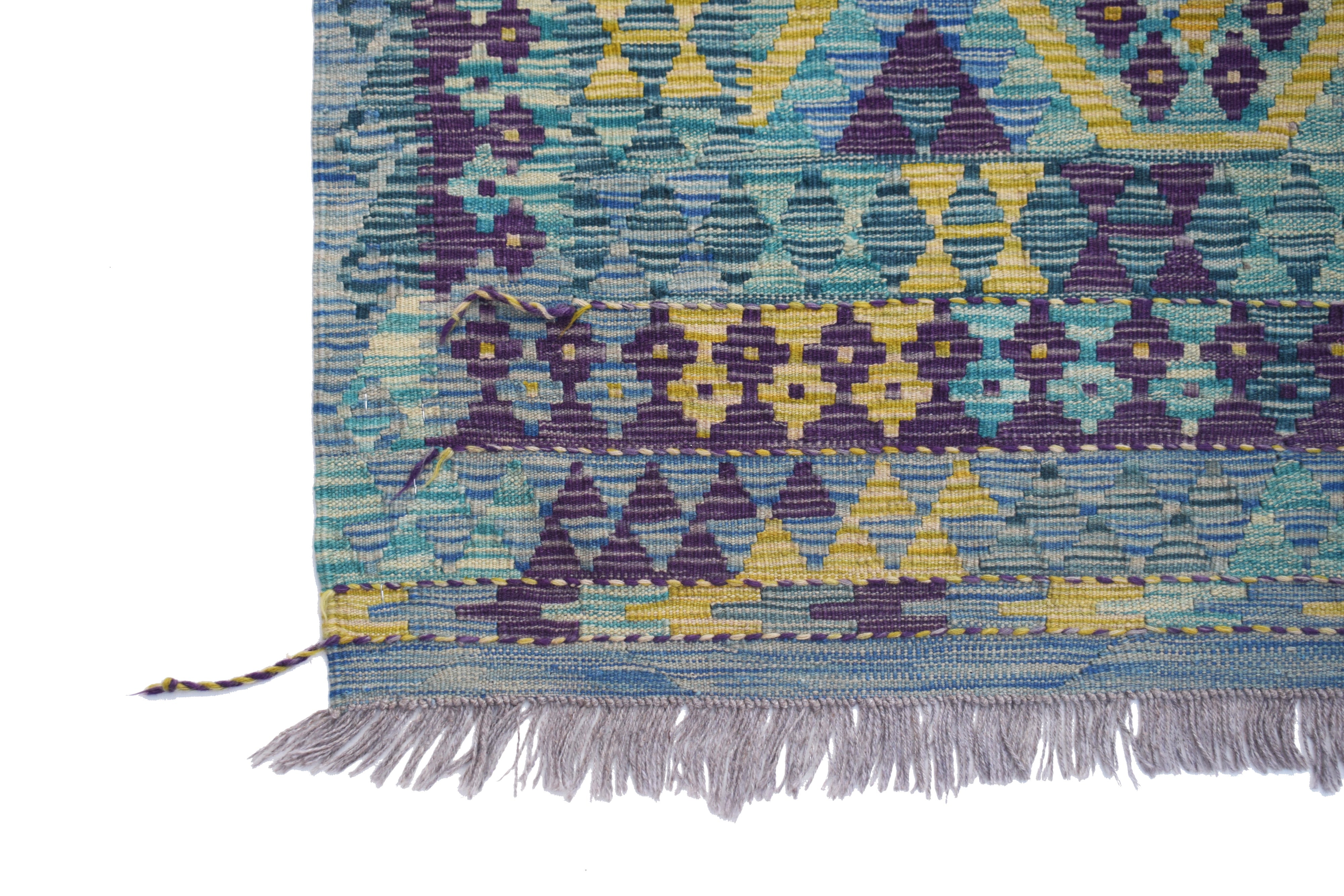 Maimana kilims are a proud product of the Frayab province in northern Afghanistan, with their name derived from the historic city of Maimana, a key trading hub along the ancient Silk Road. These kilims reflect centuries-old weaving traditions passed down through generations of tribal artisans. Their distinctive geometric patterns and bold designs are influenced by the nomadic lifestyle of the region, where practicality meets artistry in textile creation. The Maimana region is known for its semi-arid landscapes, where the weavers source high-quality wool from local sheep, spin it by hand, and dye it using natural substances, often inspired by the earthy hues of their surroundings. These kilims are flatwoven without a pile, a technique that makes them lightweight, reversible, and perfect for diverse applications, from floor coverings to wall hangings.