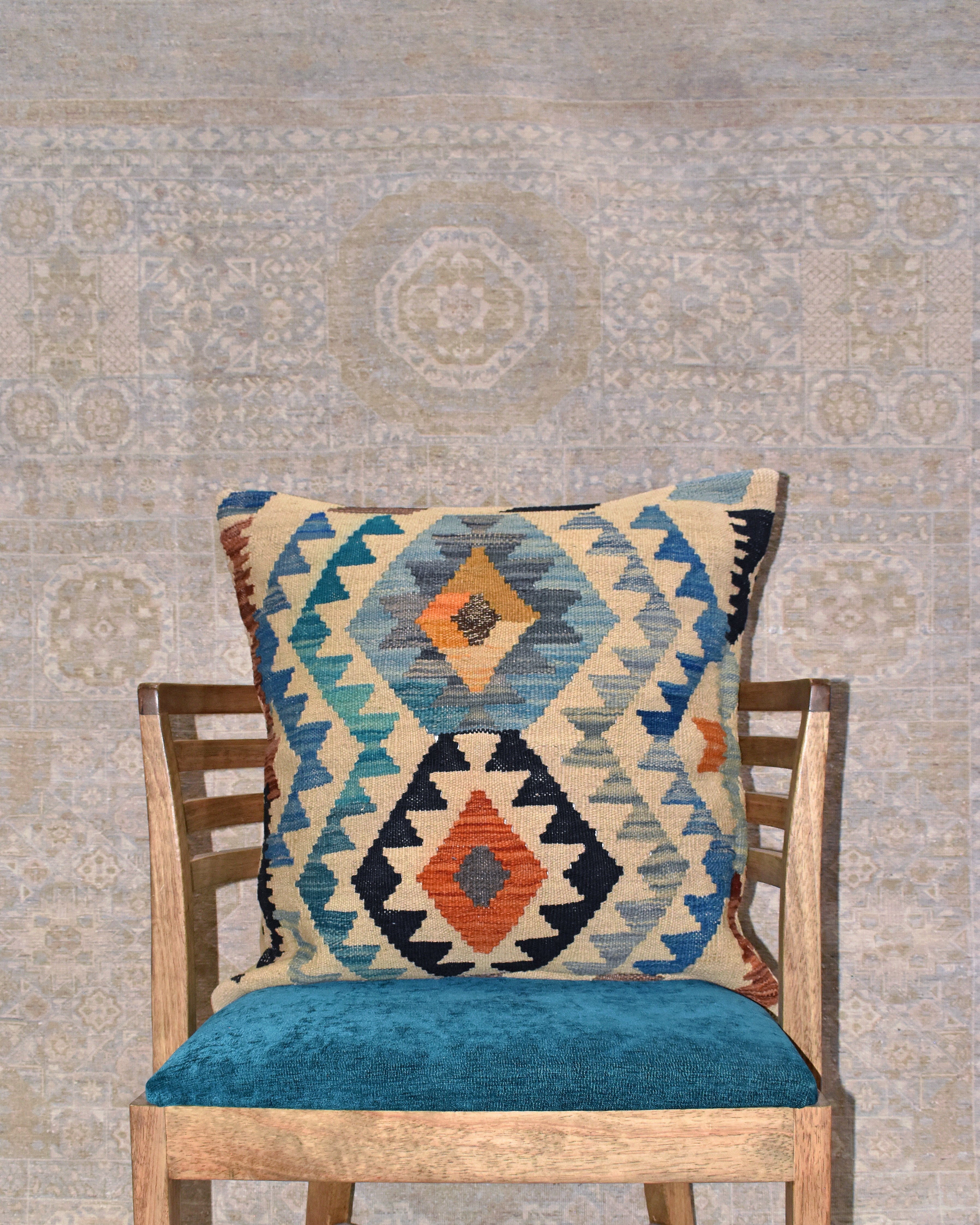 • 100% wool kilim with 100% cotton backing