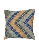 Afghan Maimana kilim cushions feature traditional flat-weave construction with bold geometric patterns in bright and earthy tones.