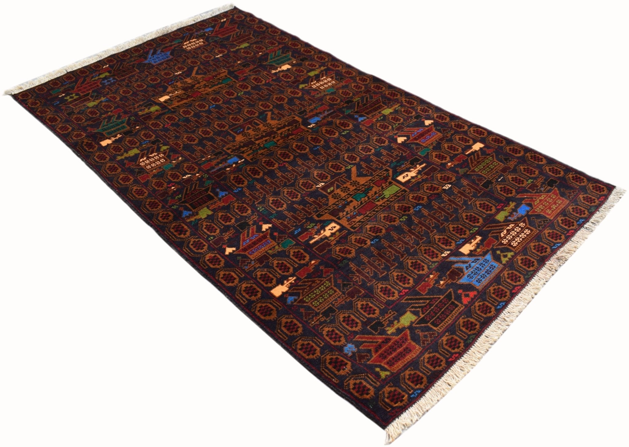 Style: War rugs originated from Afghanistan during the Soviet occupation of Afghanistan. Afghans would document the war, military, political and social conflicts on the rugs. These rugs are unique, hard to find and special.