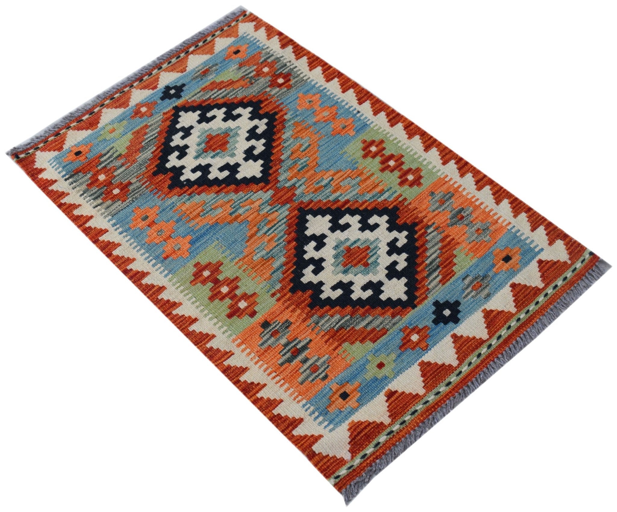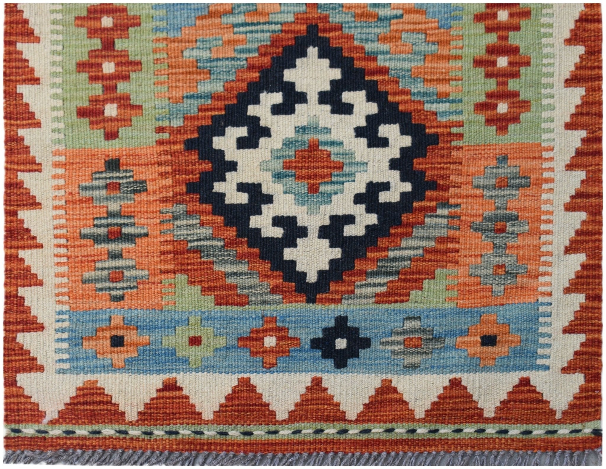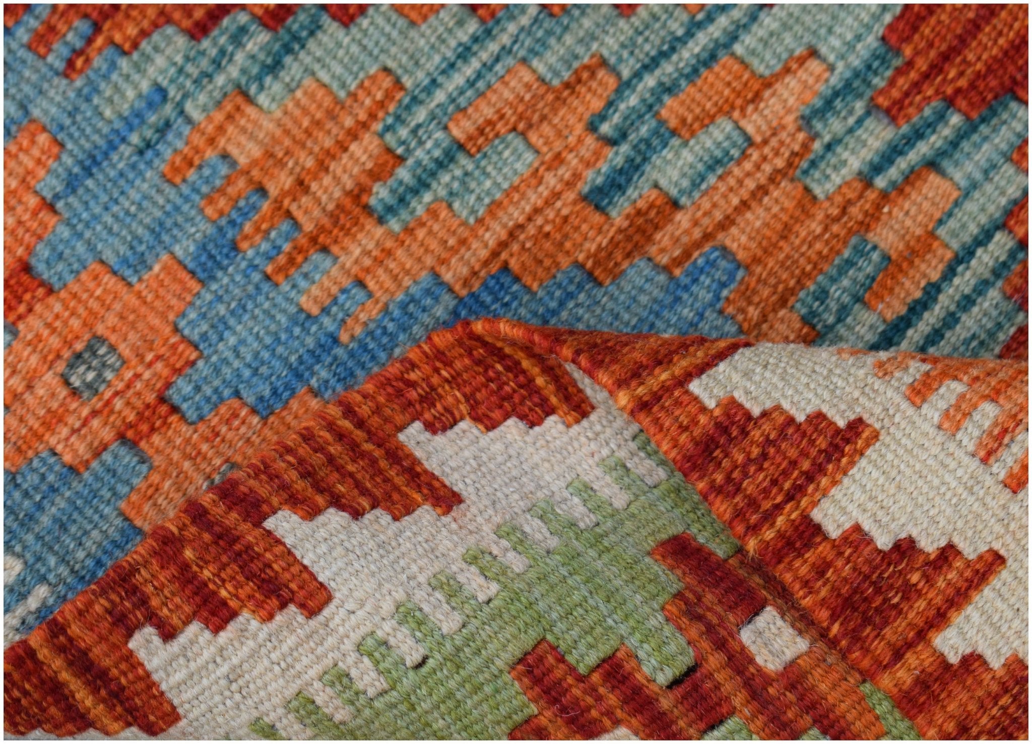Style: Kilims are woven with a different technique from rugs and are without a pile which allows you to use both sides, this versatility is functional and practical making you get the most out of your handmade item. Kilims are known for it's geometrical patterns, rich colours and flatware texture. This kilim has been handwoven in Maimana, Northern Afghanistan from 100% wool. Handmade to last, this kilim won't disappoint you!