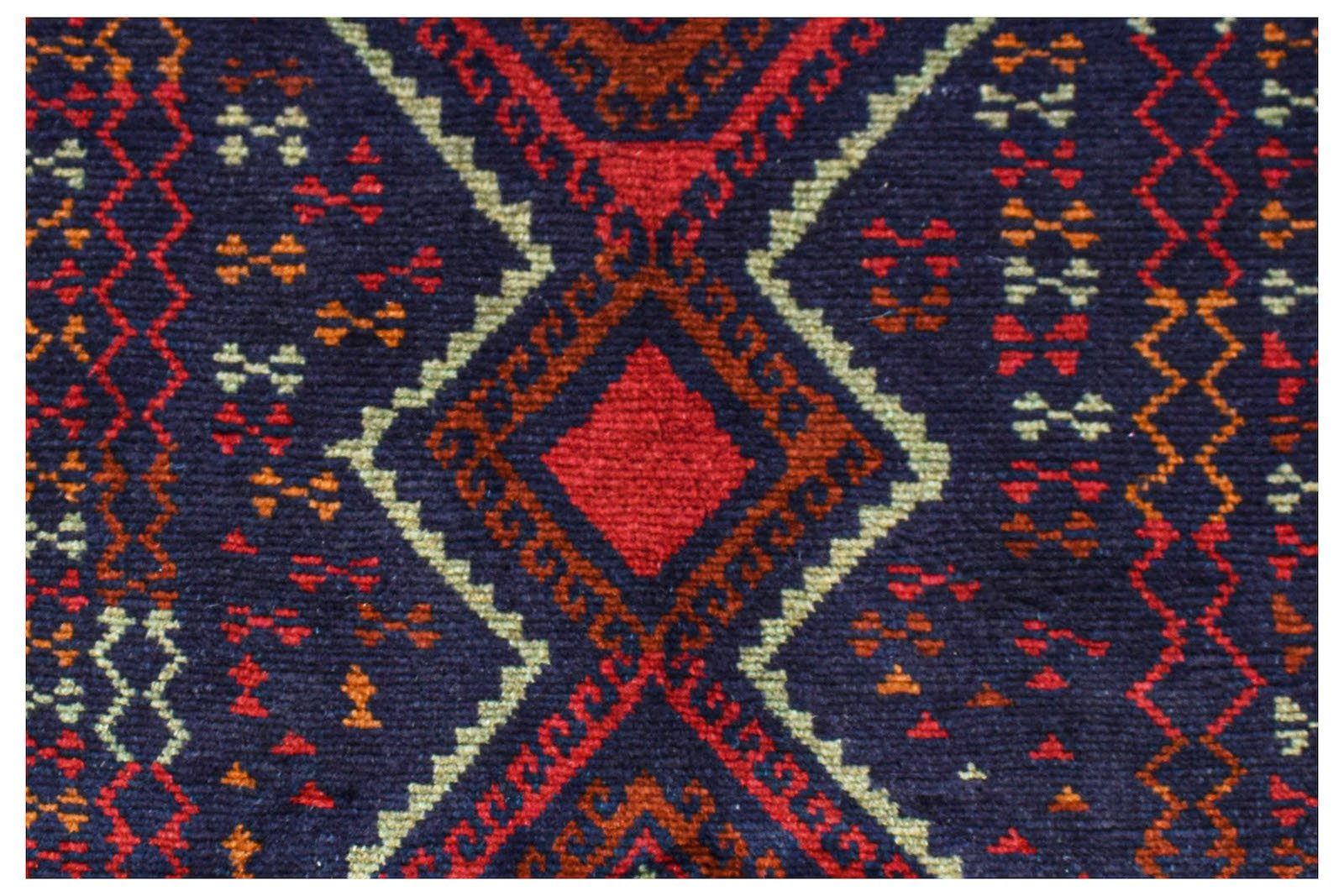 This tribal rug is from the Shindand town of the Herat Province in Afghanistan. Balouch rugs are world famous for dark reds, browns and blues with contrast of white or ivory