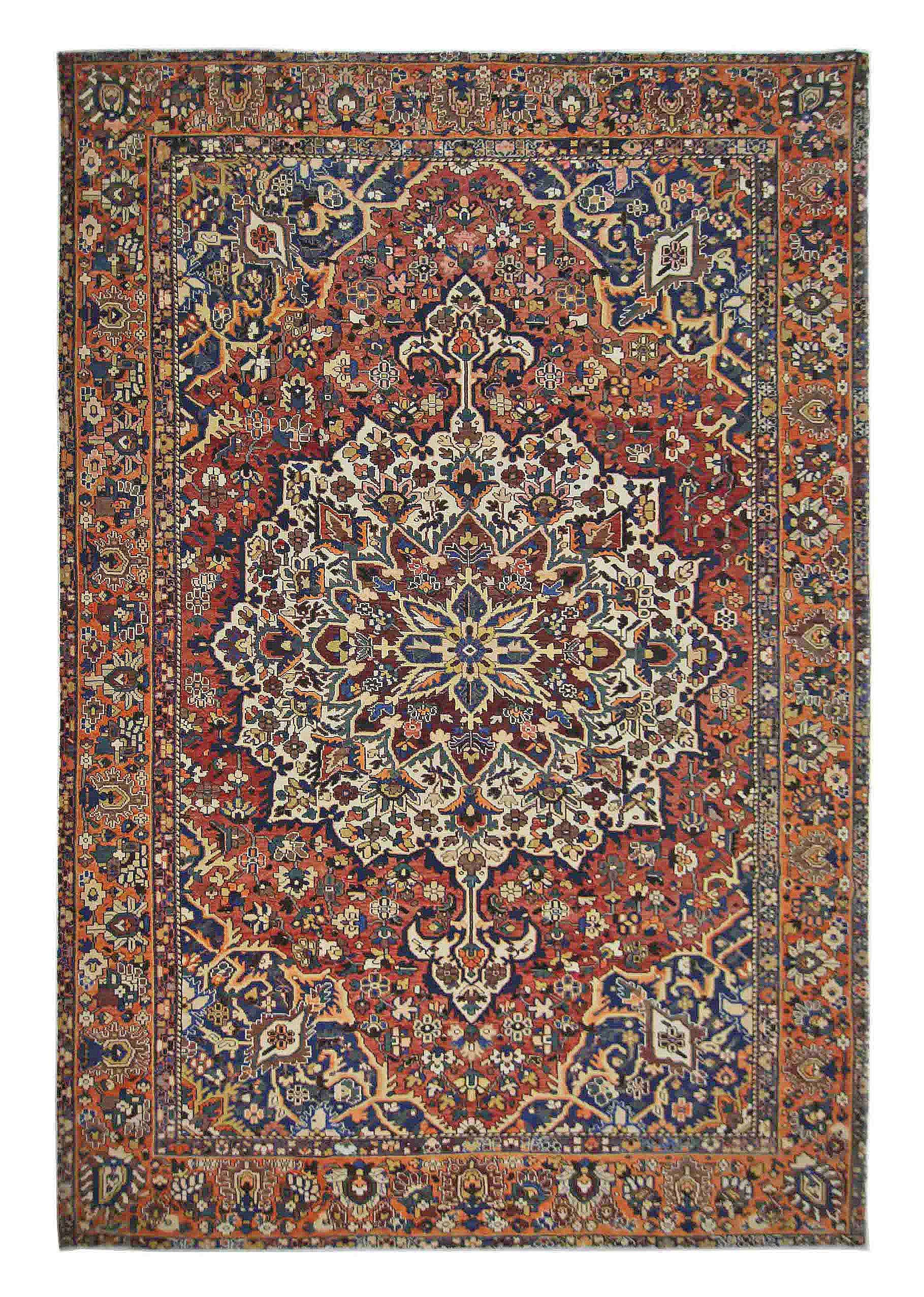 Vivid and beautiful vintage Persian Bakhtiar Rug, handmade in Iran.