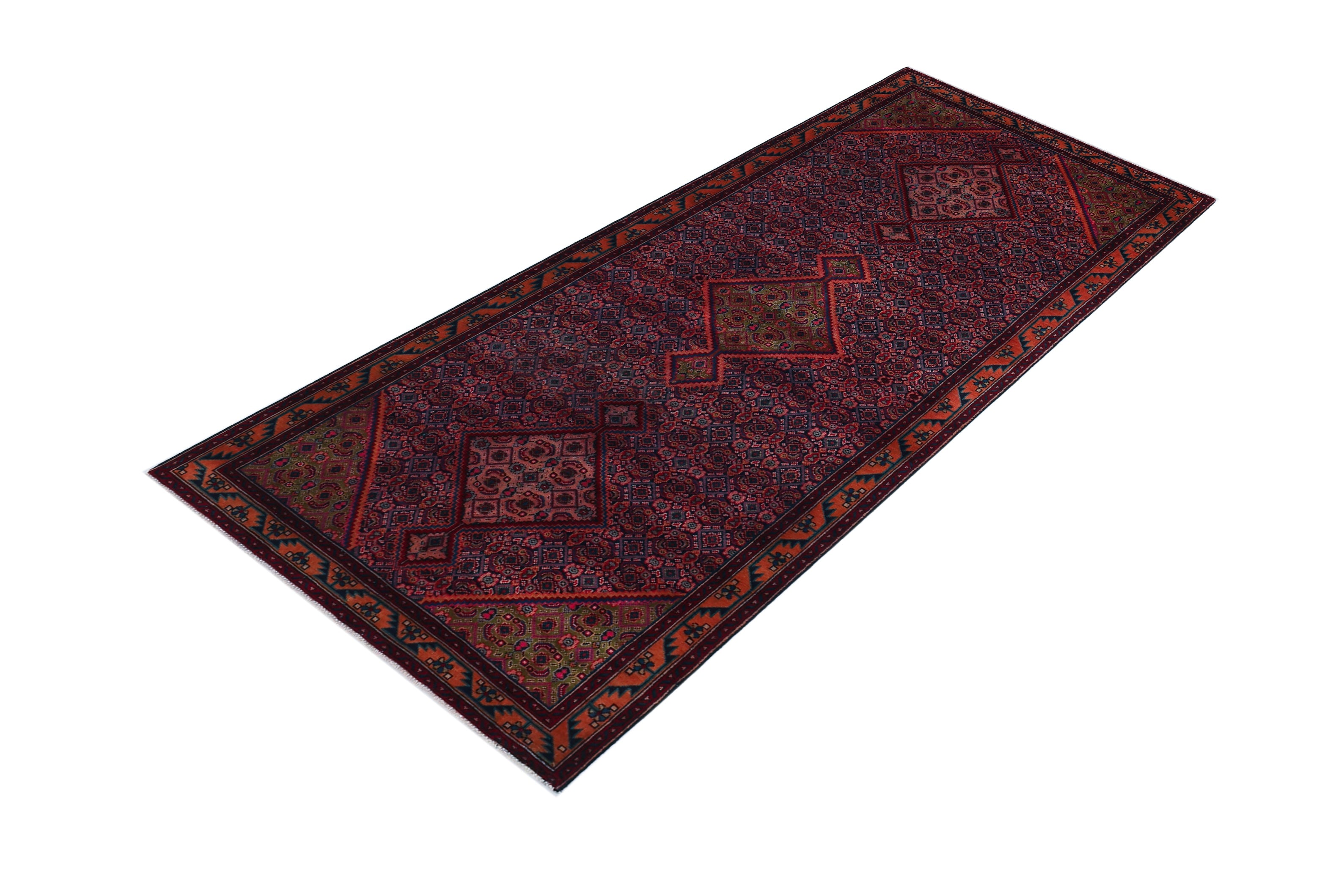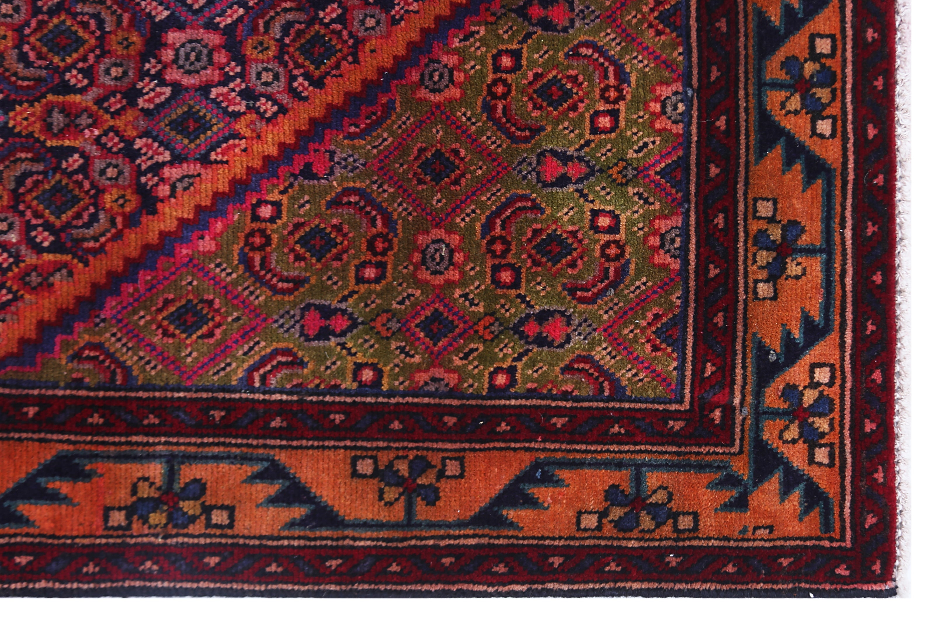 This vintage Ghashghai rug is a vibrant example of Persian tribal artistry, featuring bold geometric patterns and an array of rich, earthy colours. Known for their intricate designs and cultural significance, Ghashghai rugs often incorporate symbolic motifs that reflect the nomadic lifestyle of the Ghashghai people. Hand-knotted using high-quality wool, this rug offers exceptional durability and a plush texture. The dynamic design and rich tones, including deep reds, blues, and golden yellows, create a visually captivating piece.